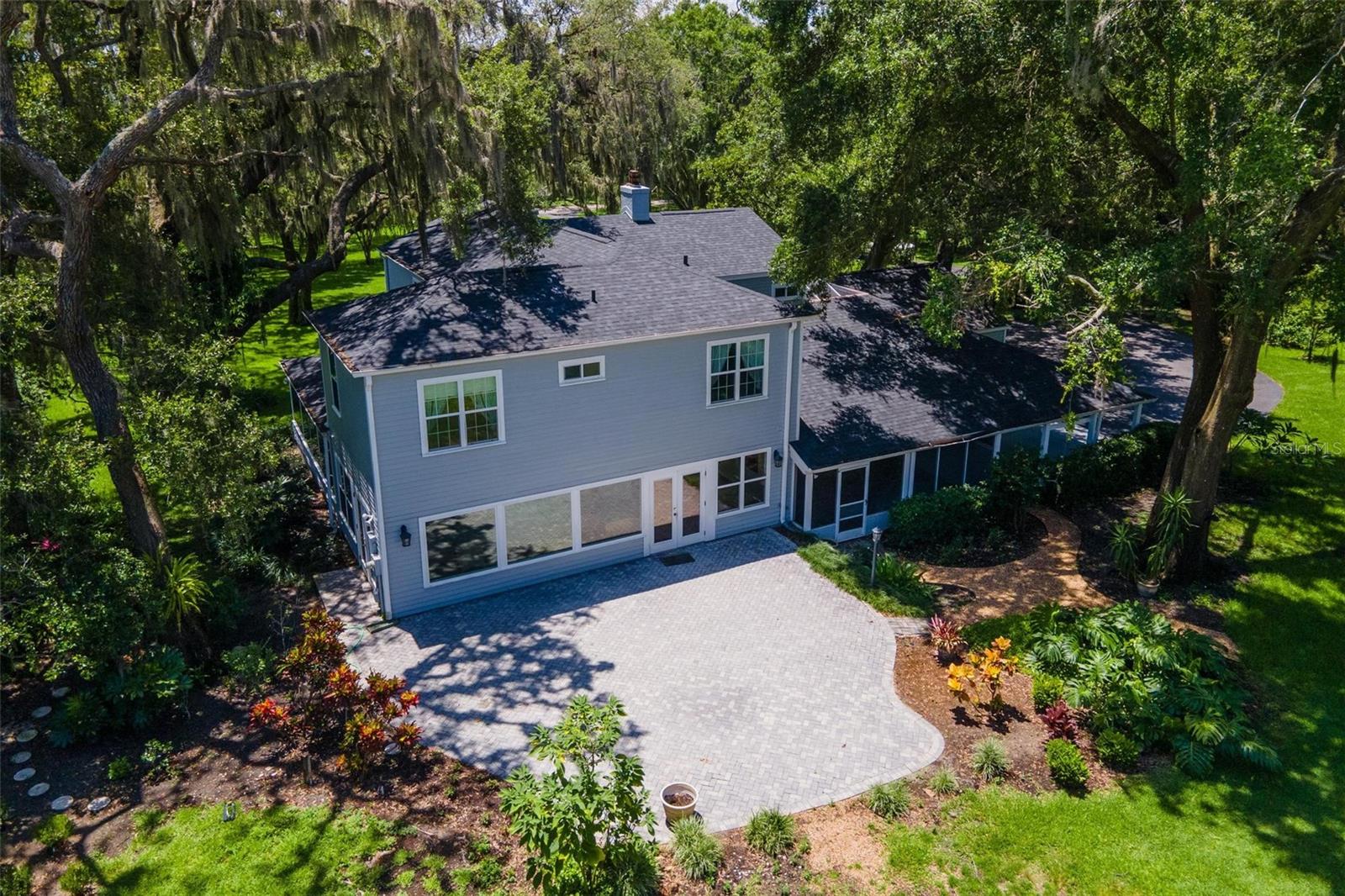 One or more photo(s) has been virtually staged. Silver Lake Waterfront Estate – First Time Ever Offered! This extraordinary Silver Lake waterfront estate is being offered for the first time and presents a rare opportunity to own a true legacy property. Nestled on 2.15 acres with 177 feet of pristine lake frontage, the property includes a spacious two-story main residence with over 4,985 square feet of living space, as well as a detached 700 sq ft guest house with multiple hobby and workshop rooms. The main home features 4 bedrooms and 3.5 baths, with elegant formal living and dining rooms showcasing hardwood floors, built-in shelving, and a wood-burning fireplace. At the heart of the home is a beautifully designed kitchen offering granite countertops, abundant cabinetry, a gas range, double ovens, pantry, and convenient pass-throughs to both the sunroom and family room. Adjacent to the kitchen is a large tiled breakfast area and family room with French doors leading to the side yard, along with a 33x11 sunroom filled with windows and French doors opening to the backyard paver patio. Also on the main level is an 11x9 den/office with rich wood accents, a spacious 20x19 game room with private entry from the carport, a welcoming foyer, and a powder room for guests. Upstairs features brand-new carpet installed in 2025 and two master suites. The primary suite boasts stunning lake views, 2 walk-in closets, a double vanity, and a tiled walk-in shower. The second master suite offers a wall-to-wall closet and private bath with walk-in shower. The third bedroom includes wall-to-wall closets and sliding doors, while the 3rd full bath features double vanities, a pocket door separating the water closet, and a tiled tub/shower combo. A large laundry room with built-in ironing board, cabinet storage, and folding counter completes the interior layout. Recent updates include a new roof in 2024, attic insulation added in 2023, new ductwork and under-house insulation in 2022, two HVAC units (replaced in 2007), two gas water heaters (one replaced in 2016), all new windows, new drainfield installed in 2012, new well in 2020, along with tank in 2017 and new sprinkler pump in 2020. Outdoor living is elevated by a 20x19 screened paver veranda with vaulted ceilings and an atrium water feature, a 19x19 covered carport with storage closets, and a 32x29 open brick paver patio in the backyard. The detached guest house offers 700 sq ft of living space with a full tiled bath and walk-in shower, a 13x10 hobby room with built-in desk and drawers, a 20x10 workshop with adjoining 13x9 darkroom perfect for hobbies or creative space, and a 13x9 well room housing the water softener. The guest house also features a new roof in 2024, HVAC from 2008, and was replumbed in 2022. The entire estate is beautifully landscaped with majestic oaks, and includes a full irrigation system with pump replaced in 2020. The living square footage includes the guest house. This Silver Lake estate is a rare find offering unparalleled space, comfort, and views—schedule your private tour today.