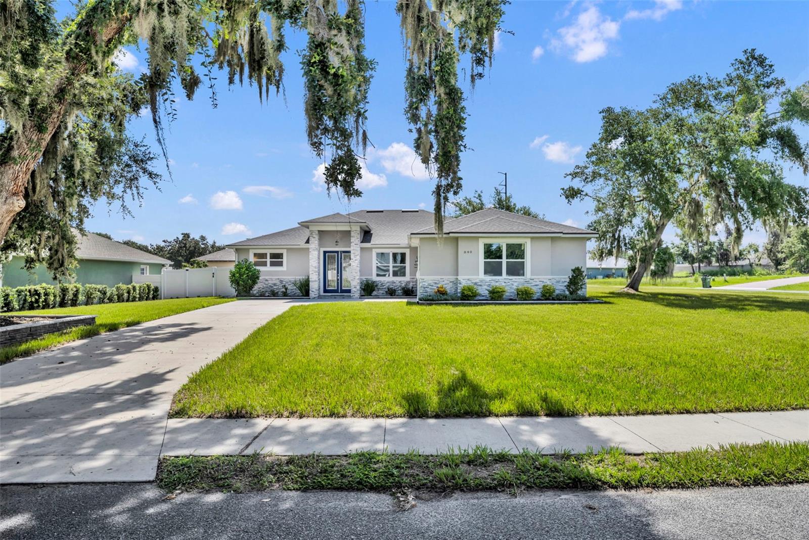 One or more photo(s) has been virtually staged. Discover this brand-new, modern home located in the exclusive gated lakefront community of Oak Shores in Leesburg. Thoughtfully designed with a clean, contemporary style, this spacious residence features high ceilings, open-concept living areas, and sleek, high-end finishes throughout. Enjoy peace of mind with a builder’s warranty and certificate of occupancy included, offering added security and value. The kitchen is equipped with modern cabinetry, quartz countertops, and stainless steel appliances—perfect for both everyday living and entertaining. Large windows fill the home with natural light, and the lanai provides a relaxing outdoor space surrounded by mature trees. The oversized lot offers privacy and ample space to appreciate the natural surroundings. Residents of Oak Shores enjoy private access to Lake Griffin, part of the scenic Harris Chain of Lakes—ideal for boating, fishing, or simply unwinding by the water. Just minutes from downtown Leesburg, The Villages, Mount Dora, and Tavares, you'll enjoy both tranquility and convenience, with nearby restaurants, shopping, golf courses, and medical facilities. Experience the best of modern Florida living in this elegant new construction—schedule your private showing today.
