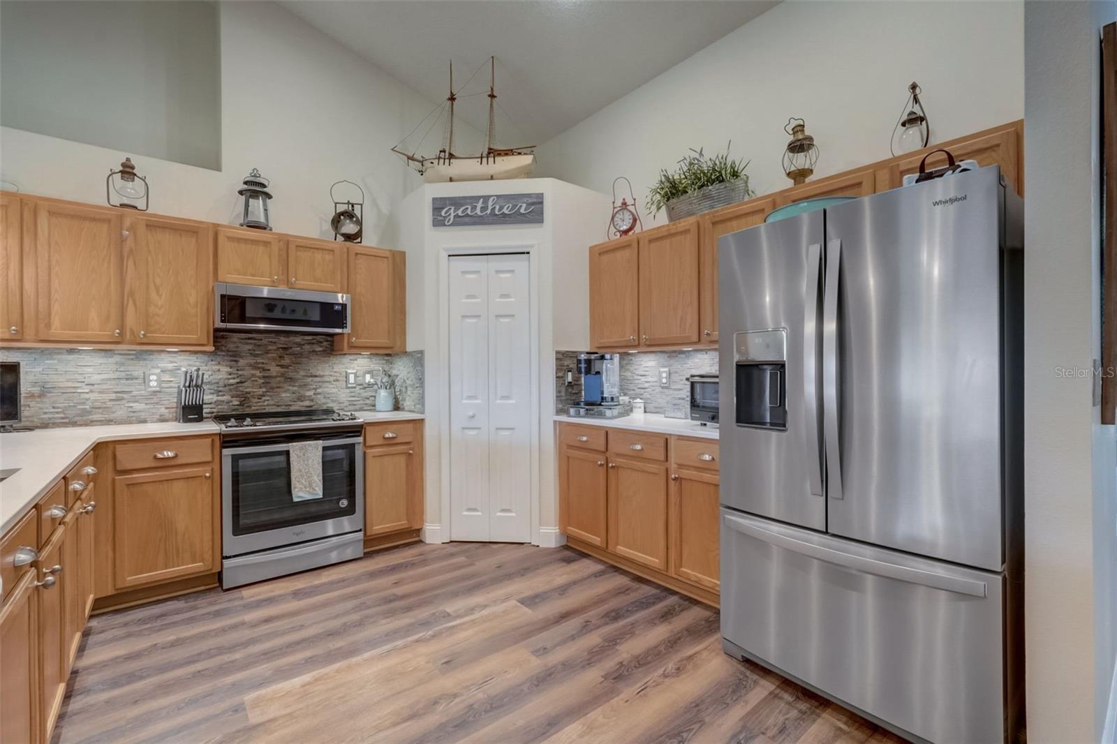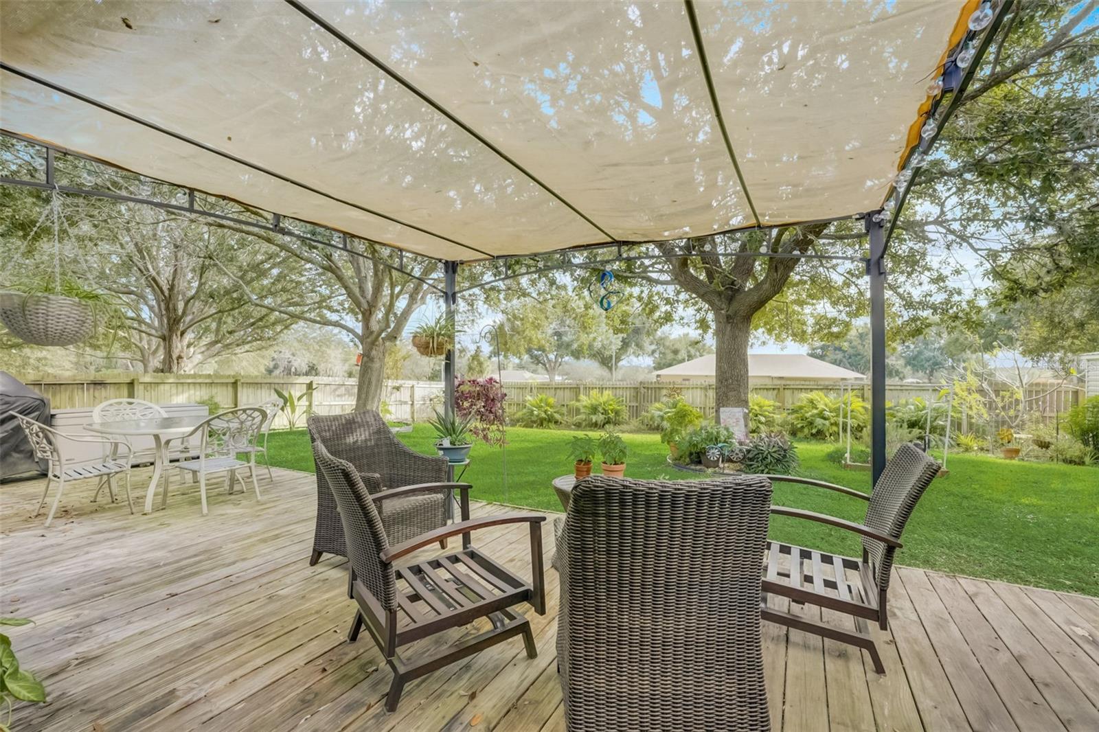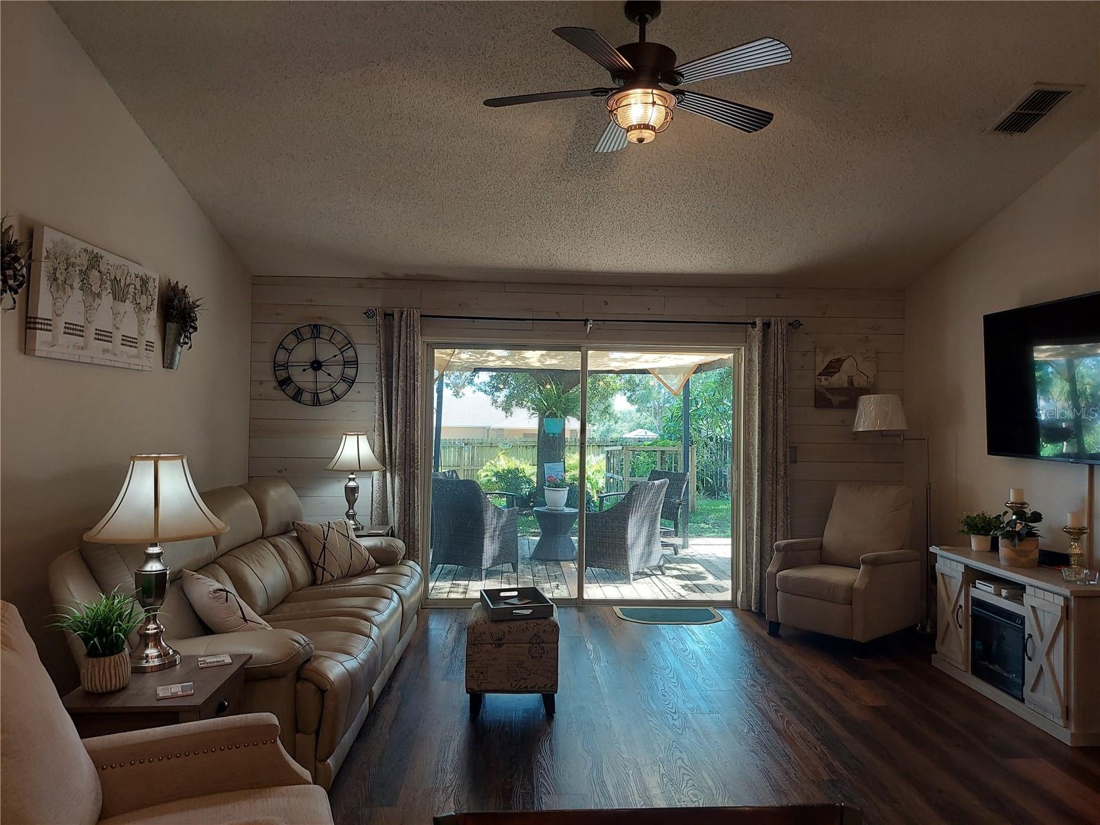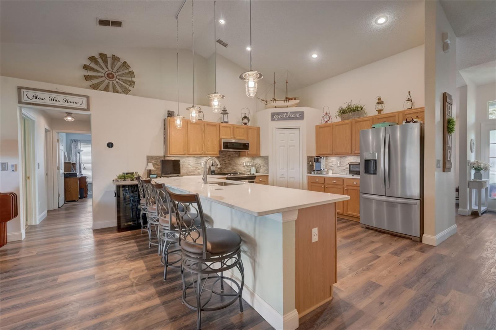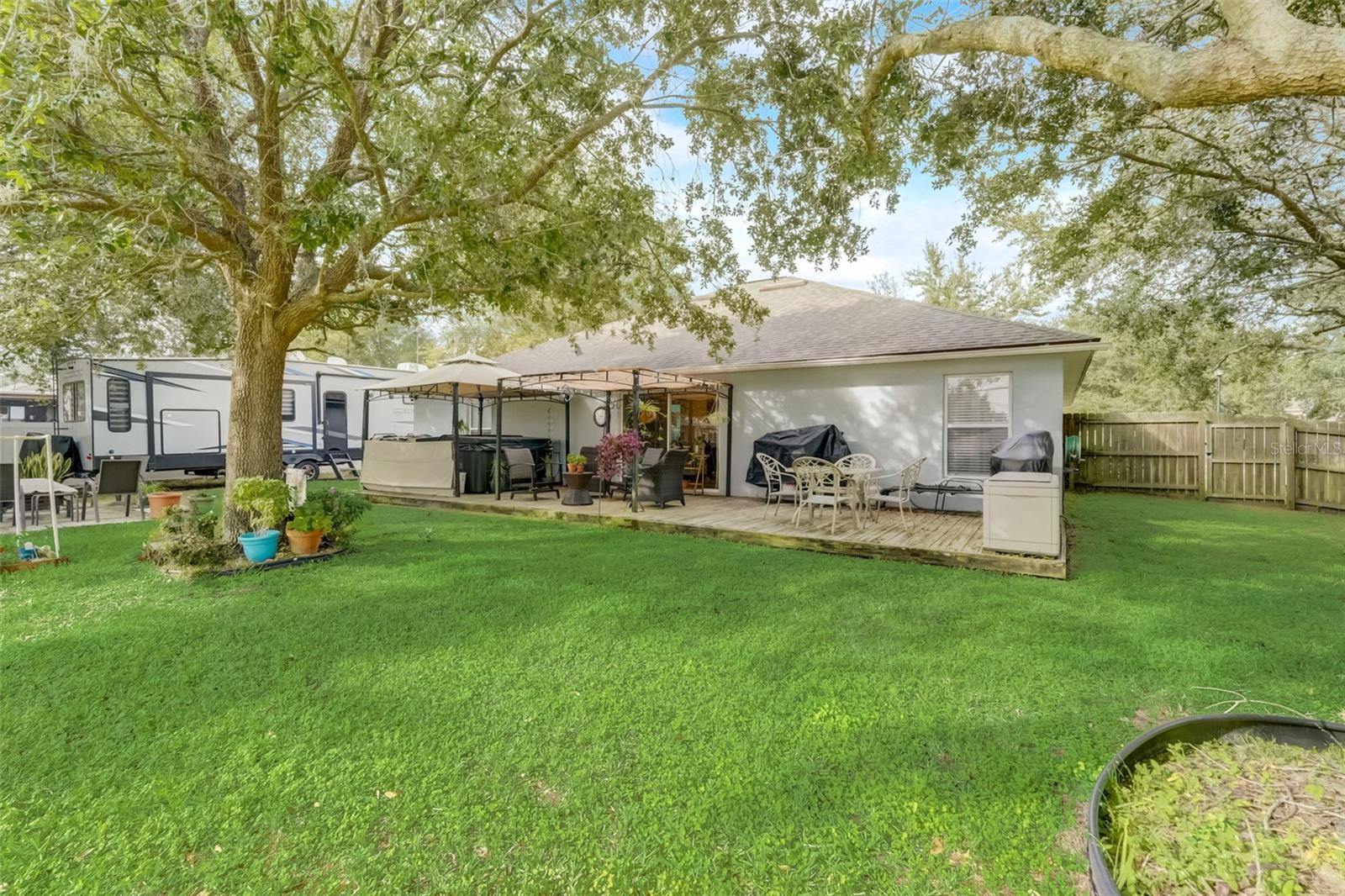 No Carpet! Low, Low HOA! This tastefully decorated 3/2 home plus a Den/Office has beauty inside and mature landscaping outside. As you step inside you get a feel of pride of ownership. The roomy kitchen is complete with Quartz countertops, seating bar for 4 and newer appliances. Luxury Vinyl Plank compliments the entire home, with tile in the bathrooms. A sliding glass door in the family room becomes the picture window to your beautifully landscaped yard, complete with a large deck to entertain on and lush tropical vegetation. The back yard is completely fenced for the safety and peace of mind for the young ones and your fur babies. And as an added bonus RV or boat is allowed to be parked in your yard, behind the house line. The yard also boasts a large 12x14 shed/workshop. A 5- Person Spa with waterfall and surround sound is available to purchase outside of the home purchase. Make an appointment to see this one today!