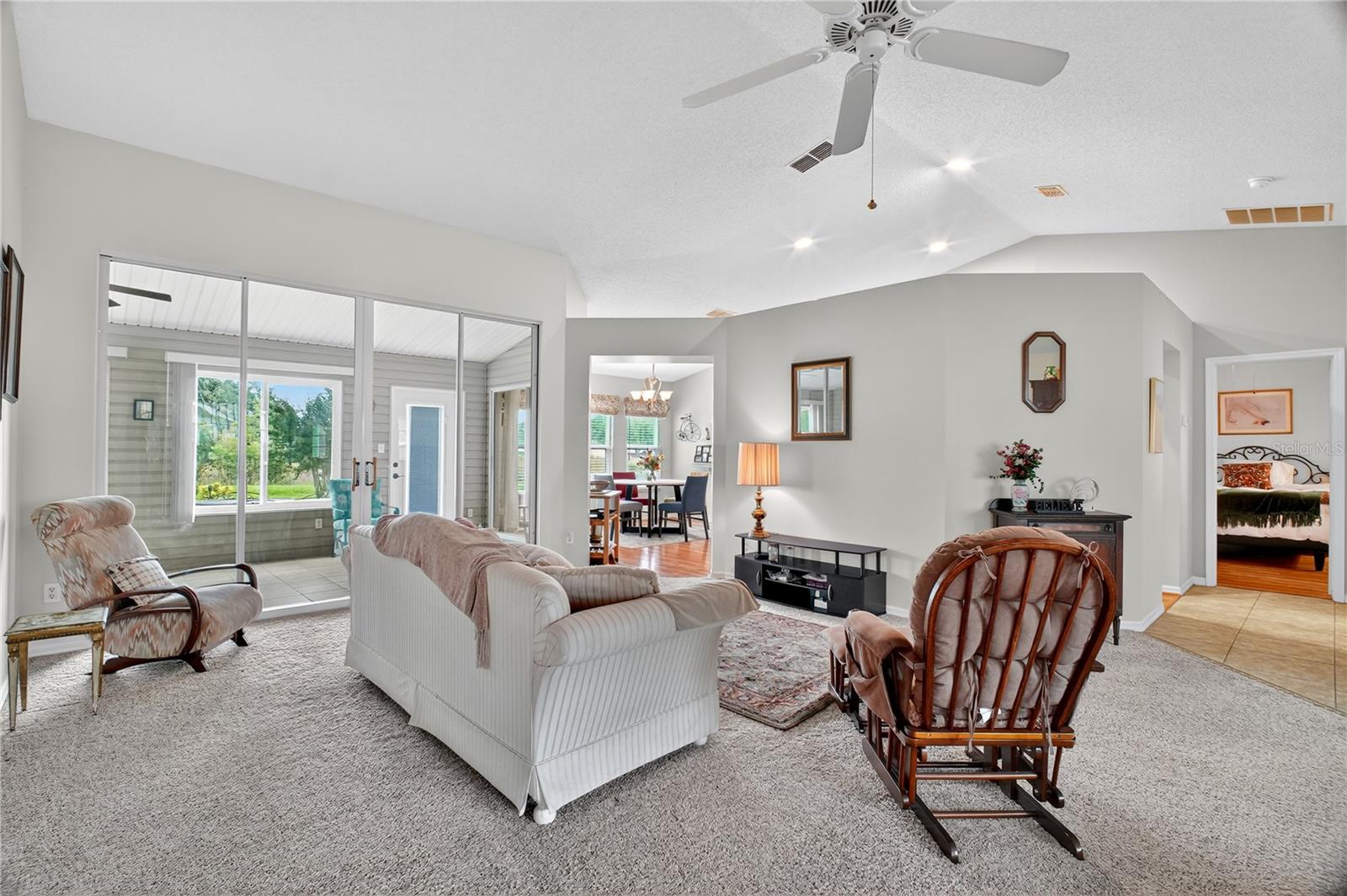 New Price for this very well maintained home. Welcome to this perfect 3-bedroom, 2-bathroom home located in the award-winning Plantation at Leesburg community. With an open floor plan, this home offers a spacious, light-filled kitchen featuring ample counter space, plenty of cabinets, and a cozy 13 x 10 dinette area — ideal for everyday meals or casual gatherings. The split floor plan provides privacy for the owner’s suite, which includes a walk-in closet and a private bathroom. The additional two bedrooms are well-sized and include generous closet space, perfect for guests or extra storage. The living and dining areas flow seamlessly, creating a comfortable and welcoming space for relaxing or entertaining. Step outside to your enclosed 27 x 10 lanai, where you can enjoy the peaceful view of your private backyard — a perfect spot for morning coffee or quiet evenings. Recent updates include double-pane windows, a newer hot water tank, a newer roof (2023), and a newer AC system (2023), offering peace of mind and efficiency for years to come. This gated, 55+ neighborhood offers a vibrant lifestyle with something for everyone: three swimming pools, two fitness centers, three clubhouses, a billiard room, a softball field, two golf courses, tennis courts, and popular pickleball courts. Take your golf cart to the on-site restaurant for lunch, dinner, or weekend live music and specials. With a low HOA fee and 24-hour manned security gates, this community combines comfort, convenience, and fun — all just minutes from shopping and everyday needs. This home is move-in ready and waiting for you to enjoy everything The Plantation has to offer.