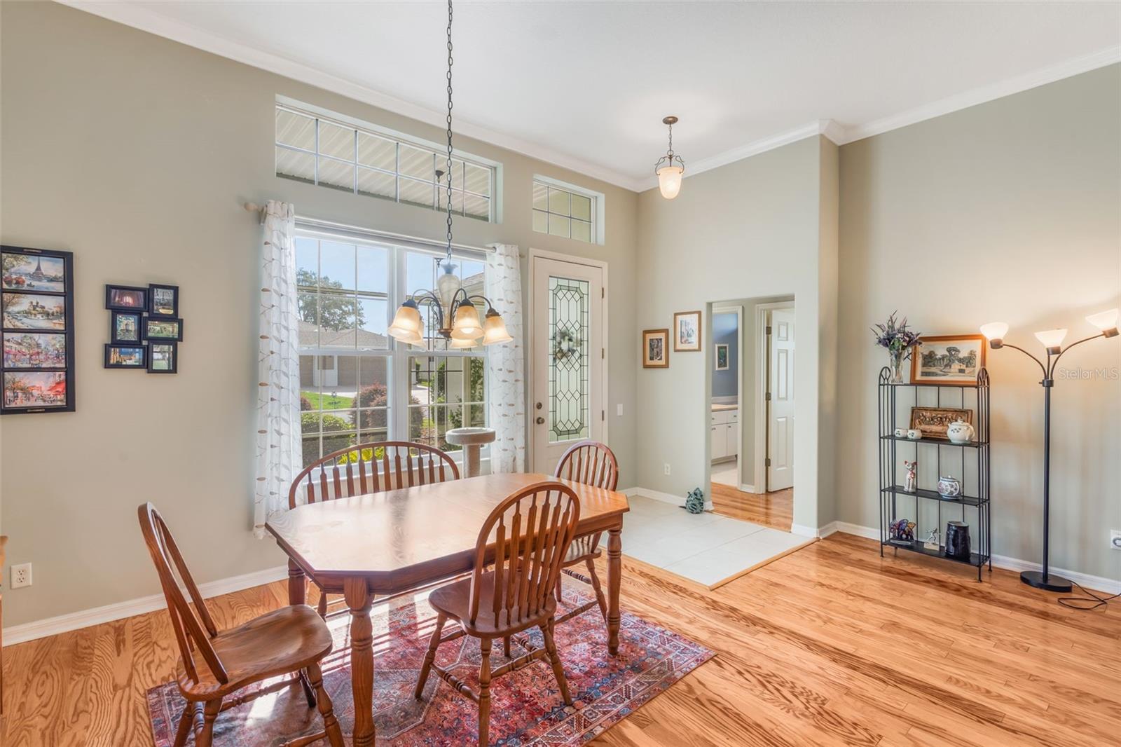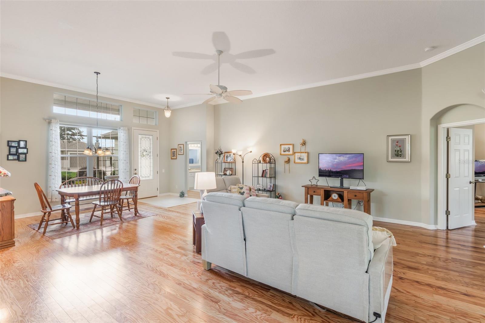 One or more photo(s) has been virtually staged. Welcome to Your Dream Home in Royal Highlands! Situated on a picturesque lot backing up to Caledonia Park, this stunning three-bedroom, two-bathroom Huntly Model block home offers the perfect blend of comfort and elegance. With an oversized garage, an enclosed Florida Room, and recent updates to the roof and HVAC in 2018, this home is move-in ready and waiting for you! As you approach the perfectly sized screened entry, you'll be greeted by lovely landscaping and a warm, inviting atmosphere. The wide-open Huntly floor plan boasts high ceilings, an abundance of natural light, and large entertaining areas, making it ideal for those who love to be at the heart of it all. Enjoy the luxury of plantation shutters, hardwood floors, granite countertops, and a transferable termite bond. The kitchen refrigerator and laundry room appliances were updated in 2024, and the gas water heater was updated in 2022. With ample storage and closet space, a pantry, as well as breathtaking views of the park and Florida's natural wildlife, this home truly has it all. Watch birds, cranes, turtles, and butterflies from your enclosed oasis. Additional features include thermal windows, designated dinette and formal dining areas, a garden tub, crown molding, pull-down attic stairs, and a generator transfer switch. Located in the gated, 55+ golf course community of Royal Highlands, you'll have access to an on-campus restaurant, two pools, a fitness center, courts, a Great Hall with a dance floor and theater stage. The community is golf cart and pet friendly, not to mention conveniently close to amusements, MCO, The Villages, and medical facilities. Plus, shopping, restaurants, and over 1500 named lakes are just outside the community gate! Don't miss the opportunity to make this exceptional property your new home. Schedule a viewing today and experience the best of Florida living!