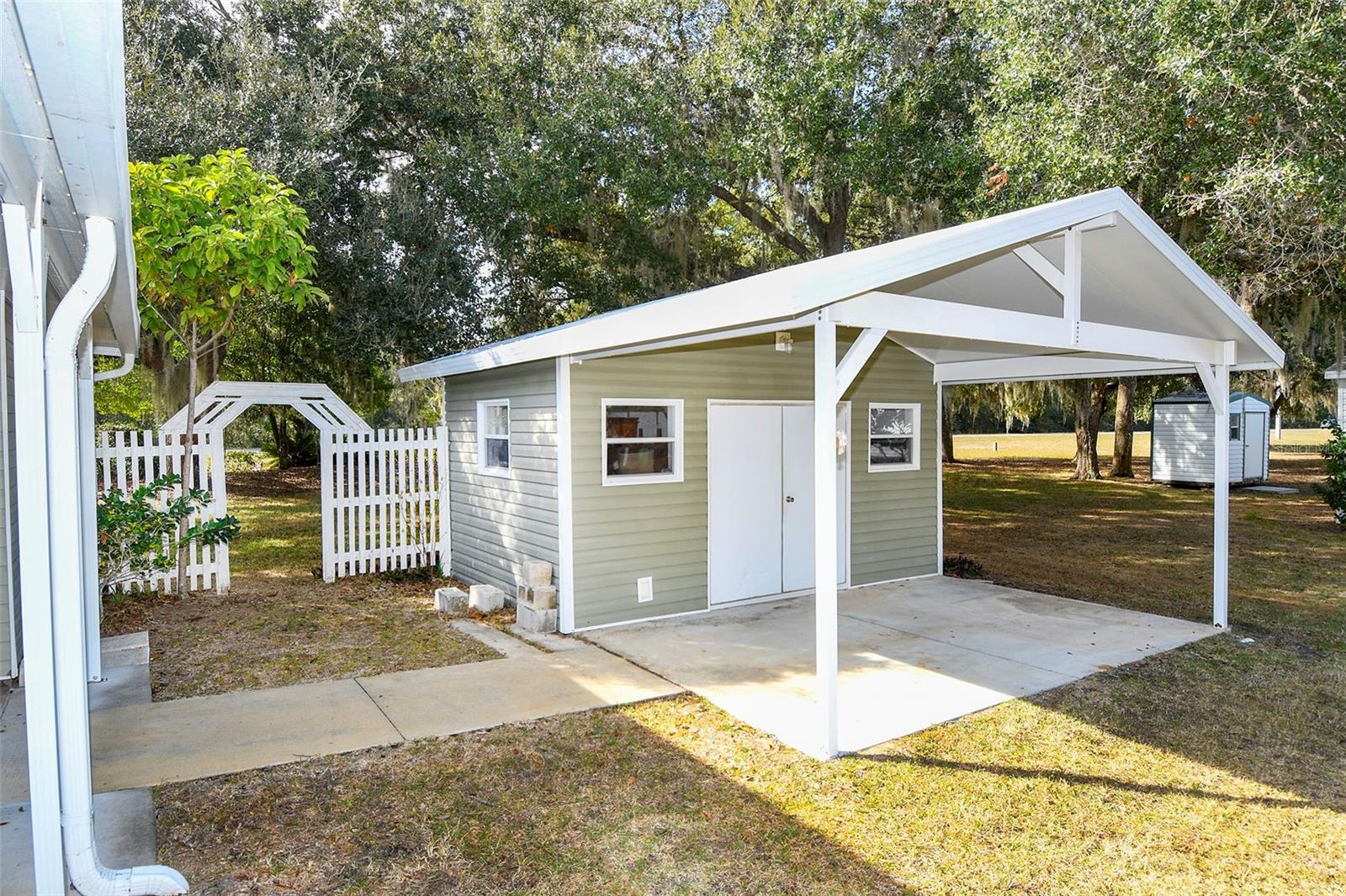 An opportunity to purchase a home with options. The home sits on two lots. There is a storage unit at the end of the carport. The lot beside the home has a good shed of almost 200 ft. A large garage can be built on the lot if so desired. If not required, the lot can be sold. You own your ground. At present the homeowners fee is $324 for both lots each month. ($162 each). The homeowners fee covers grass cutting and pays for the upkeep of the clubhouse. There is a meeting room, kitchen, library with pool table and outside a swimming pool with Spa. There is a dock on Lake Yale from which you can fish and there are also boat docks. Lake Yale Estates is a lively community and there are various activities organized. The majority of the residence are permanent, but there are a number of snowbirds. It is a perfect place to retire or have as a winter home.
