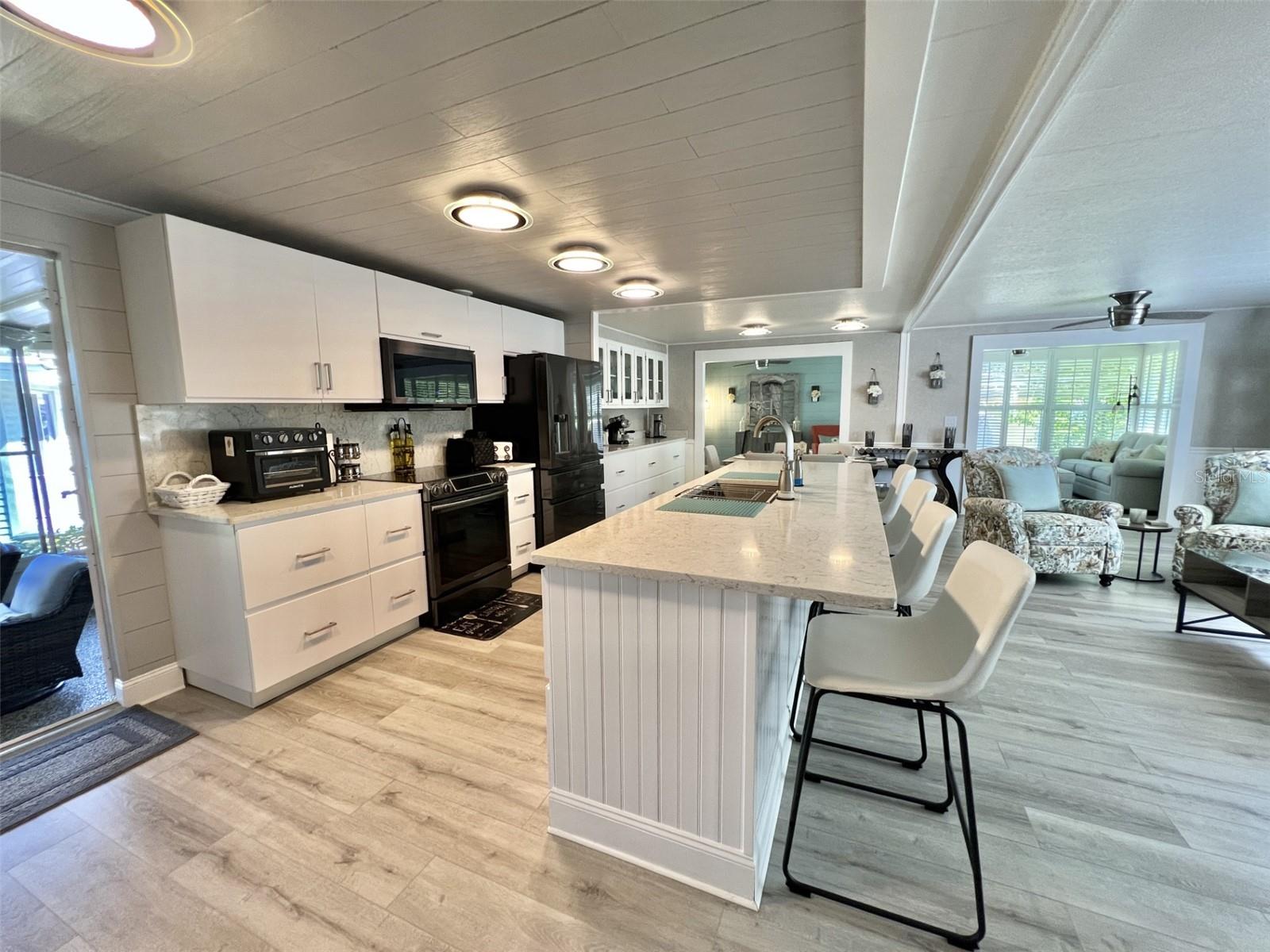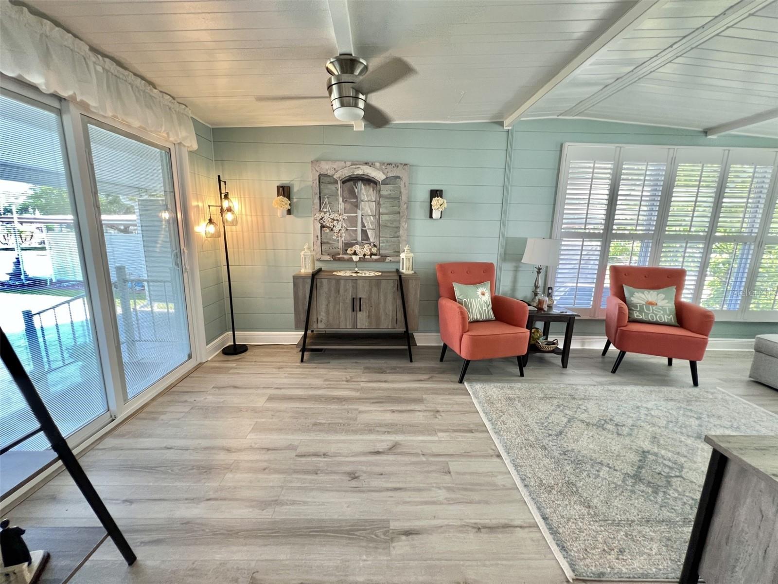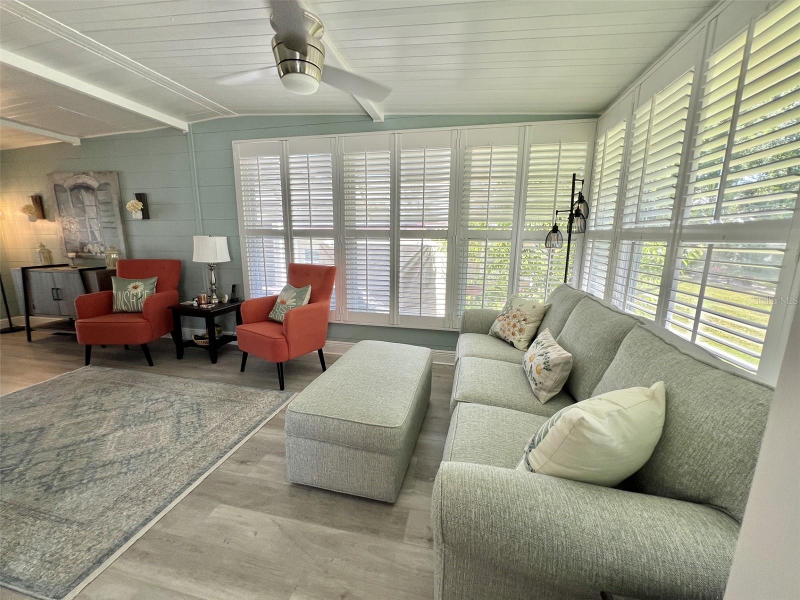 Welcome to your dream retreat! This impeccably renovated home blends modern sophistication with timeless charm for an idyllic setting for those seeking a peaceful yet stylish lifestyle. Boasts brand-new roofing, siding, and a state-of-the-art air conditioning system featuring a high-grade filtration system for optimal air quality. Enjoy completely updated electrical and plumbing systems, a stunning new kitchen with sleek quartz countertops, high-end cabinetry, luxurious vinyl flooring throughout, stylish floating vanities, and bespoke interior doors that elevate every space. Includes a certified safe room in the master bedroom walk-in closet designed to accommodate a king-size mattress for safety and security against natural hazards. Detailed plans and specifications are available upon request for your convenience. Successfully passed a comprehensive 4-point inspection, ensuring quality and reliability. Features a heated and air-conditioned summer kitchen, a versatile utility room, ample storage, and a dedicated space perfect for a workshop or hobby area, catering to all your lifestyle needs. Showcases a newly constructed Florida room, complete with custom window treatments throughout, adding a touch of elegance and functionality...........Hawthorne at Leesburg is an active, resident owned, 55+ cooperative, waterfront, gated community, with beautifully landscaped grounds, lakes with illuminated fountains and a relaxing and comfortable gazebo. The affordable monthly maintenance fee of $346 includes water, sewer, lawn mowing, private emergency services and storage space for recreational vehicles, boats, trailers and much more! The beautiful clubhouse is complete with a full-time program coordinator, more than 100 different activities and seating for 550. It has a hospitality lounge, card rooms, craft rooms, billiard room, fitness center, library, fine arts room and many more. There is excellent fishing, outdoor geo-thermally heated pool and two enclosed therapeutic pools. Hawthorne boasts a private marina monitored by an electronic security system with over 120 boat slips and access to the Harris Chain of Lakes and beyond.