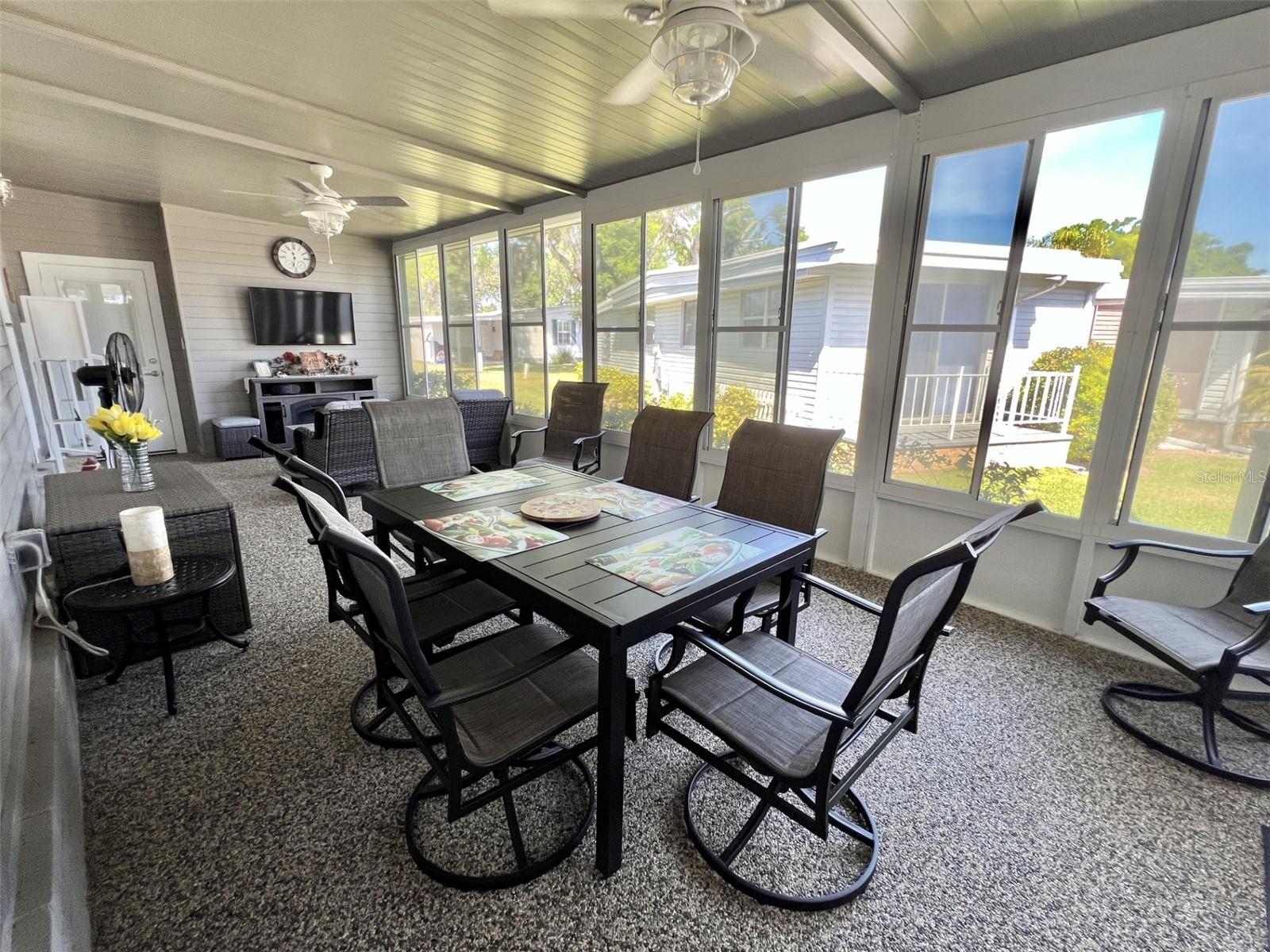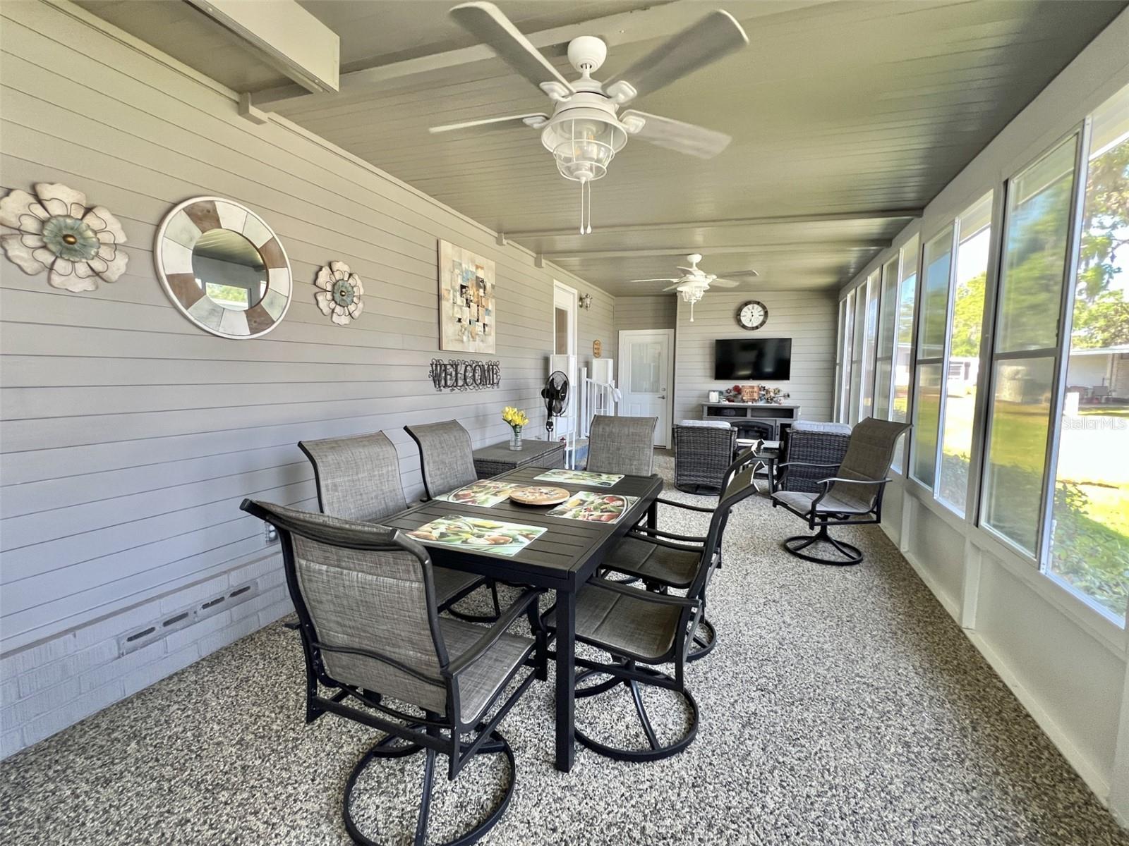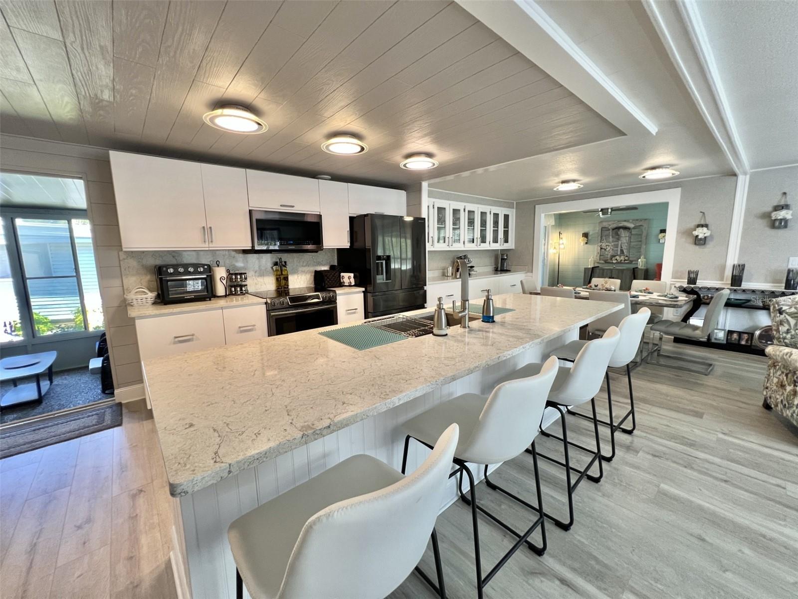 Welcome to your dream retreat! This impeccably renovated home blends modern sophistication with timeless charm for an idyllic setting for those seeking a peaceful yet stylish lifestyle. Boasts brand-new roofing, siding, and a state-of-the-art air conditioning system featuring a high-grade filtration system for optimal air quality. Enjoy completely updated electrical and plumbing systems, a stunning new kitchen with sleek quartz countertops, high-end cabinetry, luxurious vinyl flooring throughout, stylish floating vanities, and bespoke interior doors that elevate every space. Includes a certified safe room in the master bedroom walk-in closet designed to accommodate a king-size mattress for safety and security against natural hazards. Detailed plans and specifications are available upon request for your convenience. Successfully passed a comprehensive 4-point inspection, ensuring quality and reliability. Features a heated and air-conditioned summer kitchen, a versatile utility room, ample storage, and a dedicated space perfect for a workshop or hobby area, catering to all your lifestyle needs. Showcases a newly constructed Florida room, complete with custom window treatments throughout, adding a touch of elegance and functionality...........Hawthorne at Leesburg is an active, resident owned, 55+ cooperative, waterfront, gated community, with beautifully landscaped grounds, lakes with illuminated fountains and a relaxing and comfortable gazebo. The affordable monthly maintenance fee of $346 includes water, sewer, lawn mowing, private emergency services and storage space for recreational vehicles, boats, trailers and much more! The beautiful clubhouse is complete with a full-time program coordinator, more than 100 different activities and seating for 550. It has a hospitality lounge, card rooms, craft rooms, billiard room, fitness center, library, fine arts room and many more. There is excellent fishing, outdoor geo-thermally heated pool and two enclosed therapeutic pools. Hawthorne boasts a private marina monitored by an electronic security system with over 120 boat slips and access to the Harris Chain of Lakes and beyond.