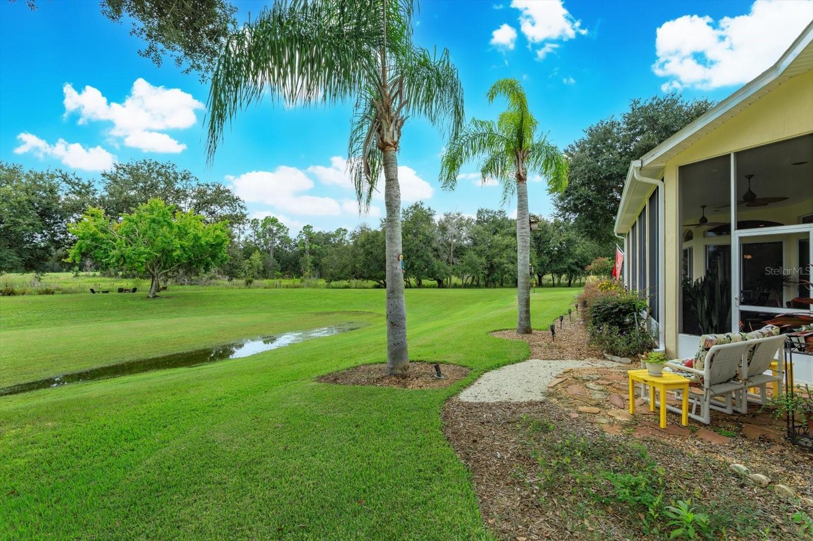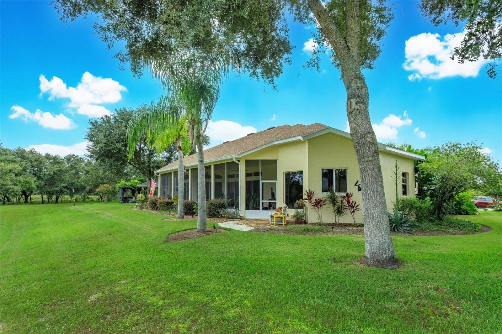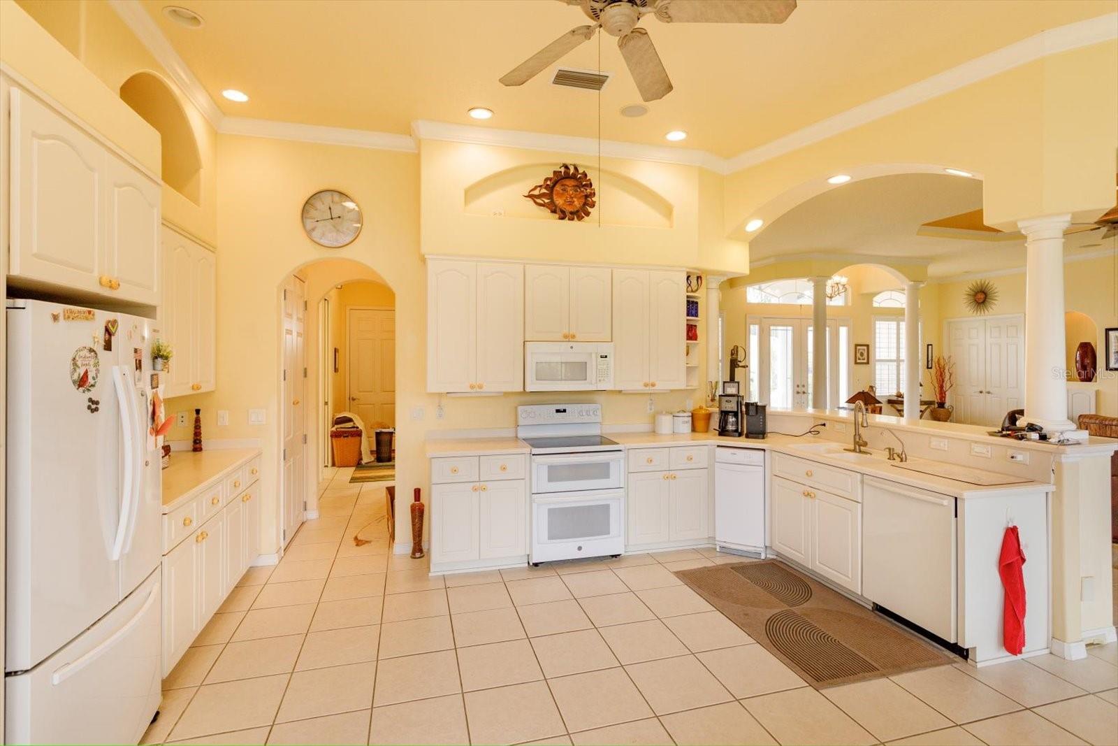 Gorgeous home is situated on a conservation lot with panoramic views of fields, trees and nature. The Palatlakaha River borders the common land, behind the property, The house is the sterling model with 3034 sq. ft of living space and a grand total of 4,490 sq ft. Greek columns, 2 bedrooms, 2 baths plus a huge den/family room, and floor to ceiling sliding doors covering the entire back of the house. go through the double glass doors to enter the home to go into the high indented ceiling which has hidden lighting, in-ceiling multi speaker/multi room surround sound and crown molding. Over the gas fireplace with room to mount any flush mount TV. a formal dining area and a spacious open eat-in kitchen with a large seat bar. it has 42" cabinets, pull out drawers, Corian countertop, large walk in pantry, built in wine rack, water filter, trash compactor and a ledge for display items lit by subtle lighting. The split bedroom design includes a luxurious master suite with cathedral coffered ceiling, subtle lighting, a huge walk-in his and hers closet, instant hot water and a shower with dual shower heads. Home is wire for home theater & surround sound. Full house generator in 2022, new roof 2021, new A/C 2024.