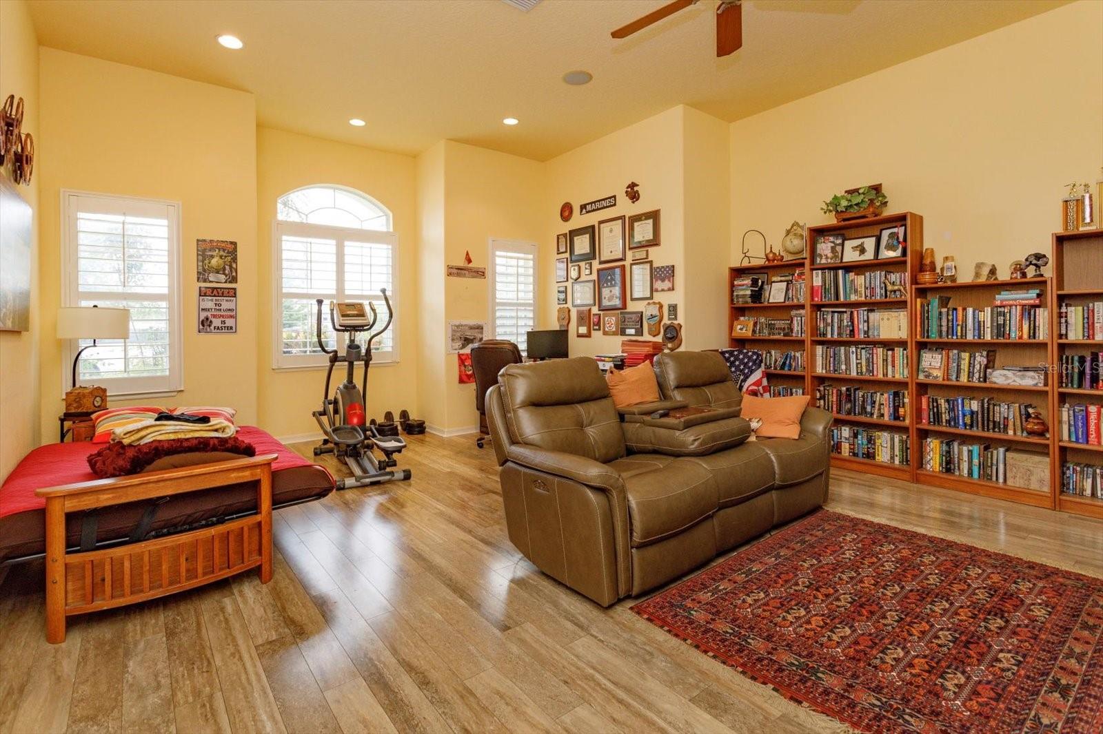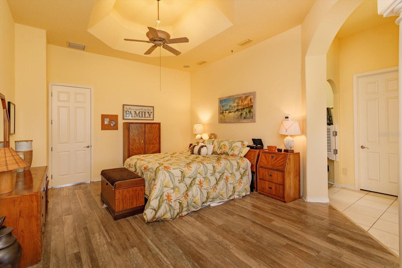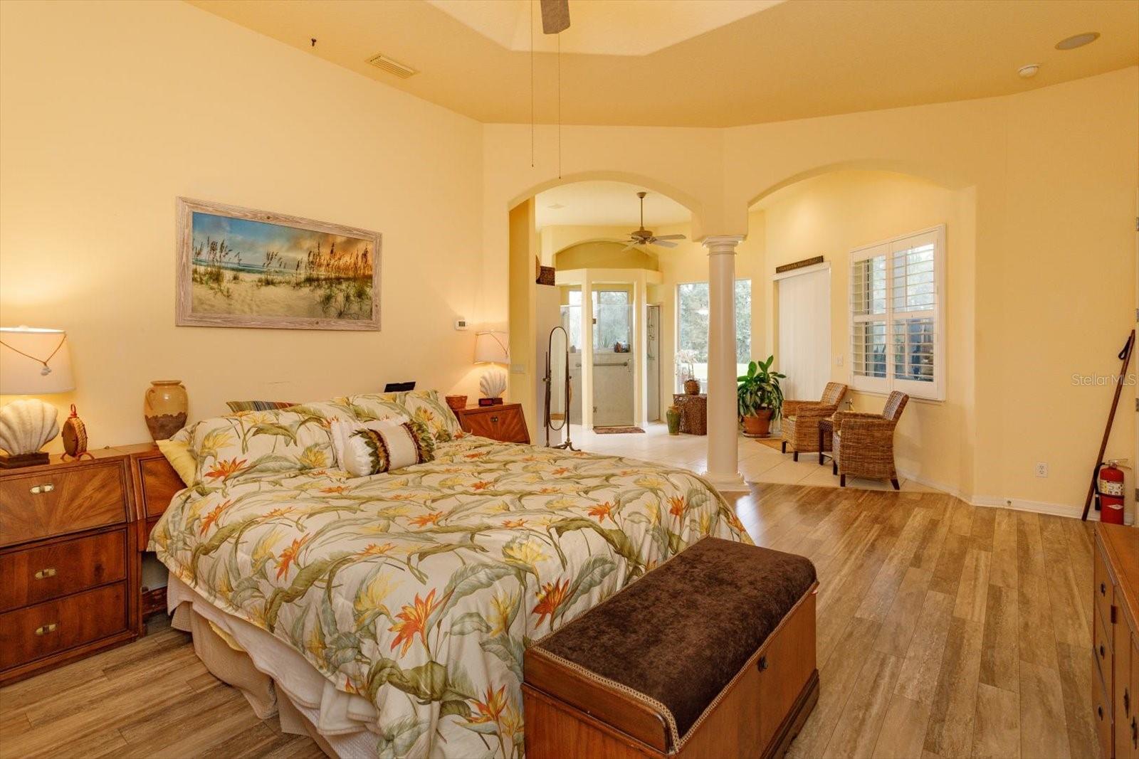 Gorgeous home is situated on a conservation lot with panoramic views of fields, trees and nature. The Palatlakaha River borders the common land, behind the property, The house is the sterling model with 3034 sq. ft of living space and a grand total of 4,490 sq ft. Greek columns, 2 bedrooms, 2 baths plus a huge den/family room, and floor to ceiling sliding doors covering the entire back of the house. go through the double glass doors to enter the home to go into the high indented ceiling which has hidden lighting, in-ceiling multi speaker/multi room surround sound and crown molding. Over the gas fireplace with room to mount any flush mount TV. a formal dining area and a spacious open eat-in kitchen with a large seat bar. it has 42" cabinets, pull out drawers, Corian countertop, large walk in pantry, built in wine rack, water filter, trash compactor and a ledge for display items lit by subtle lighting. The split bedroom design includes a luxurious master suite with cathedral coffered ceiling, subtle lighting, a huge walk-in his and hers closet, instant hot water and a shower with dual shower heads. Home is wire for home theater & surround sound. Full house generator in 2022, new roof 2021, new A/C 2024.