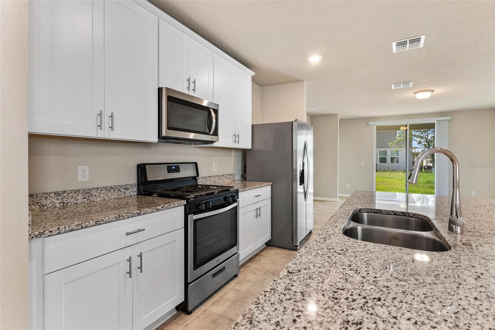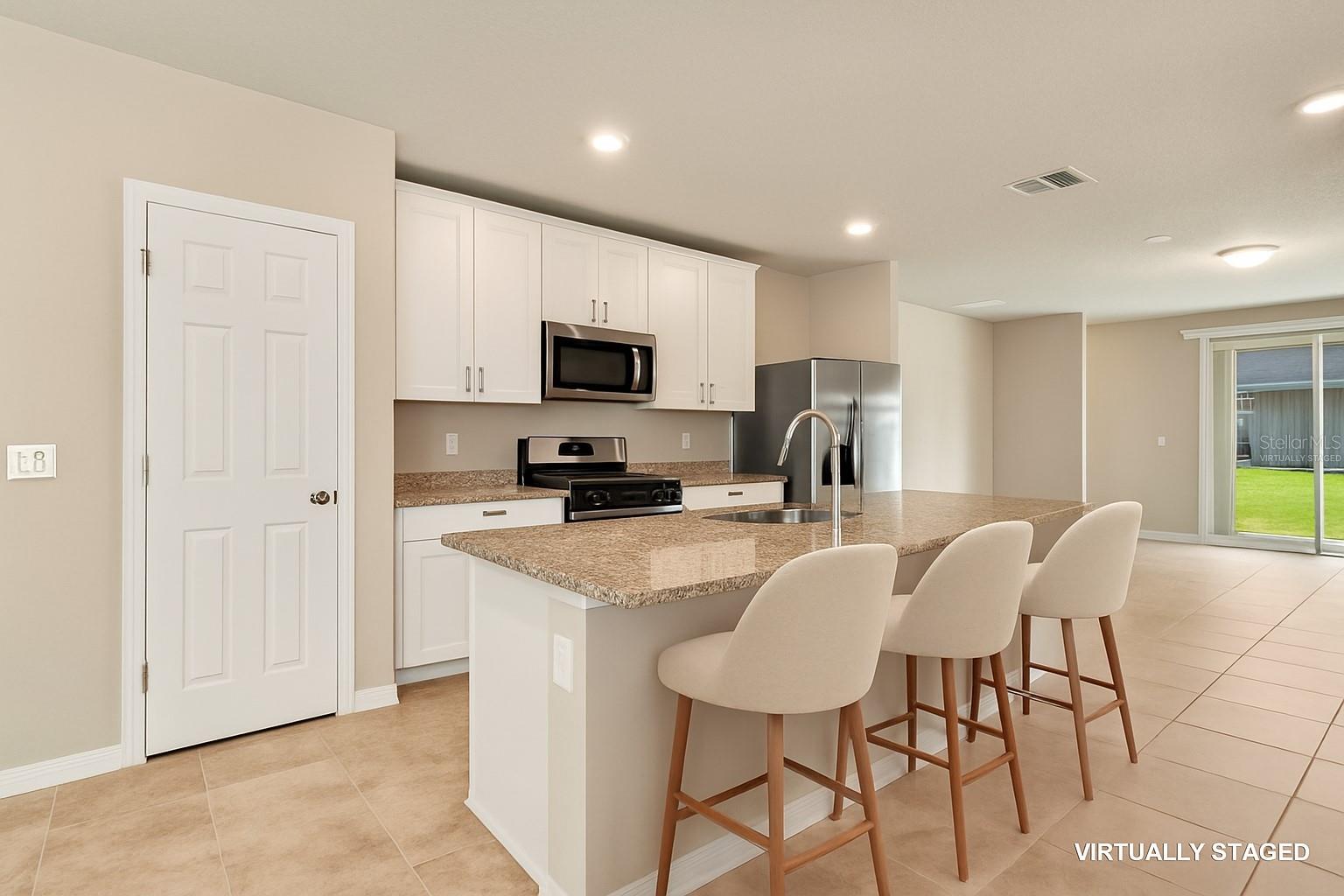 One or more photo(s) has been virtually staged. Priced to Sell! Immaculate & Move-In Ready in Lake Denham Estates. This like-new 3-bedroom, 2-bath home is being offered for the first time! A bright, open floor plan creates effortless flow between the kitchen, dining, and living areas. The chef’s kitchen is highlighted by a granite island breakfast bar, stainless steel appliances, and a convenient pantry, while the dining space opens to the living room and covered lanai for seamless indoor/outdoor living. The private primary suite features a walk-in closet, dual granite vanities, a tiled walk-in shower, and a separate water closet. Two additional bedrooms each with ceiling fans share a stylish tiled bath with a tub/shower combo. An 8' x 5' laundry room, double garage with electric opener, and tasteful finishes throughout add to the home’s appeal. Lake Denham Estates offers residents a community pool, playground, and park, all just minutes from downtown Leesburg, shopping, dining, and easy access to the Florida Turnpike for a quick commute across Central Florida.