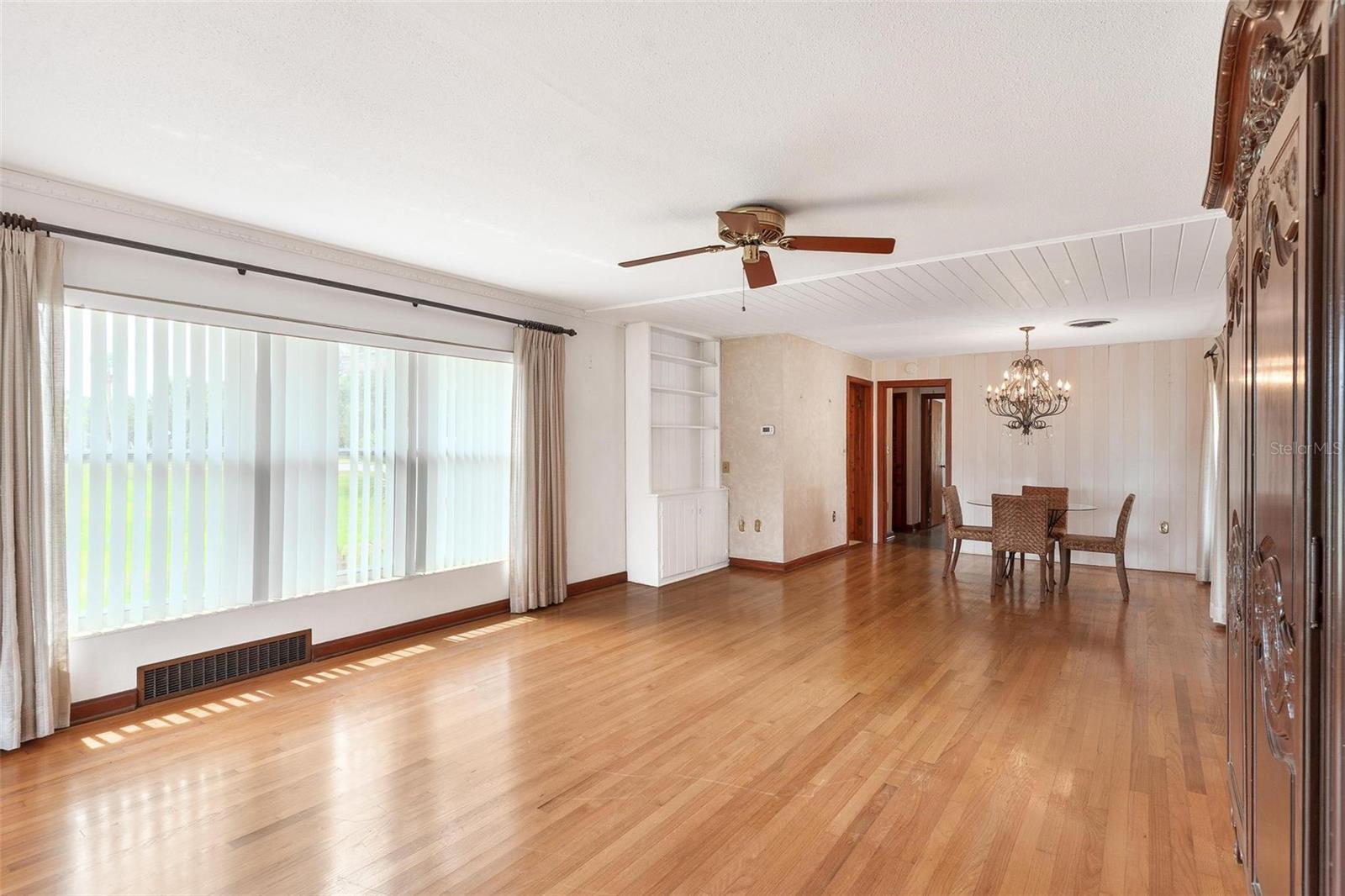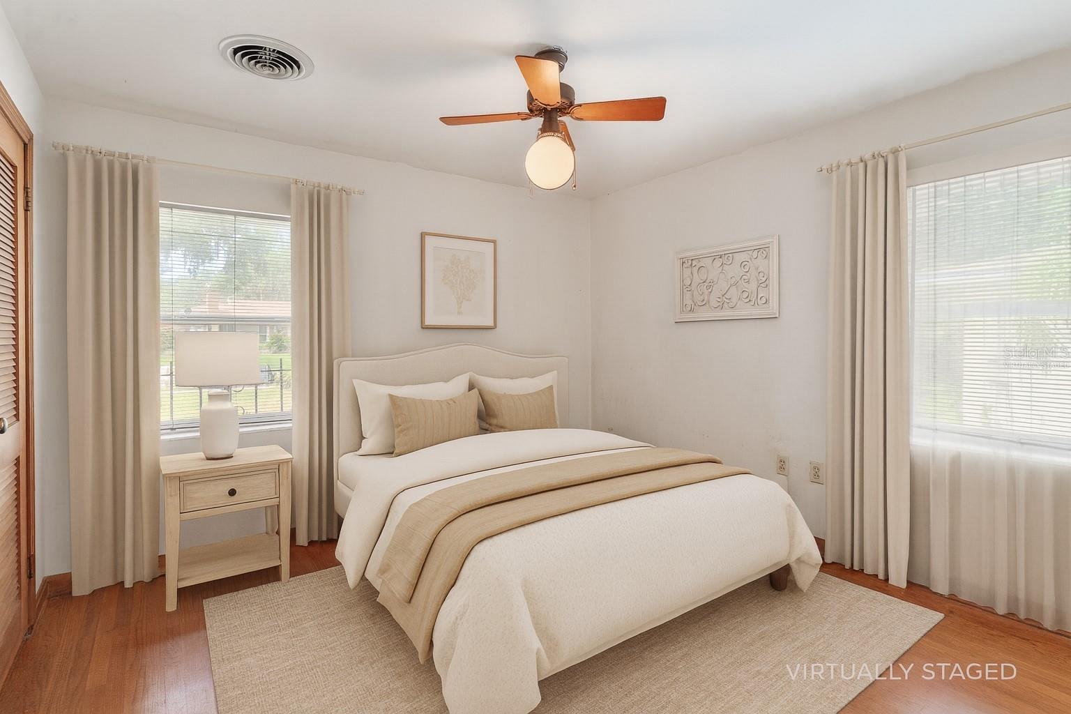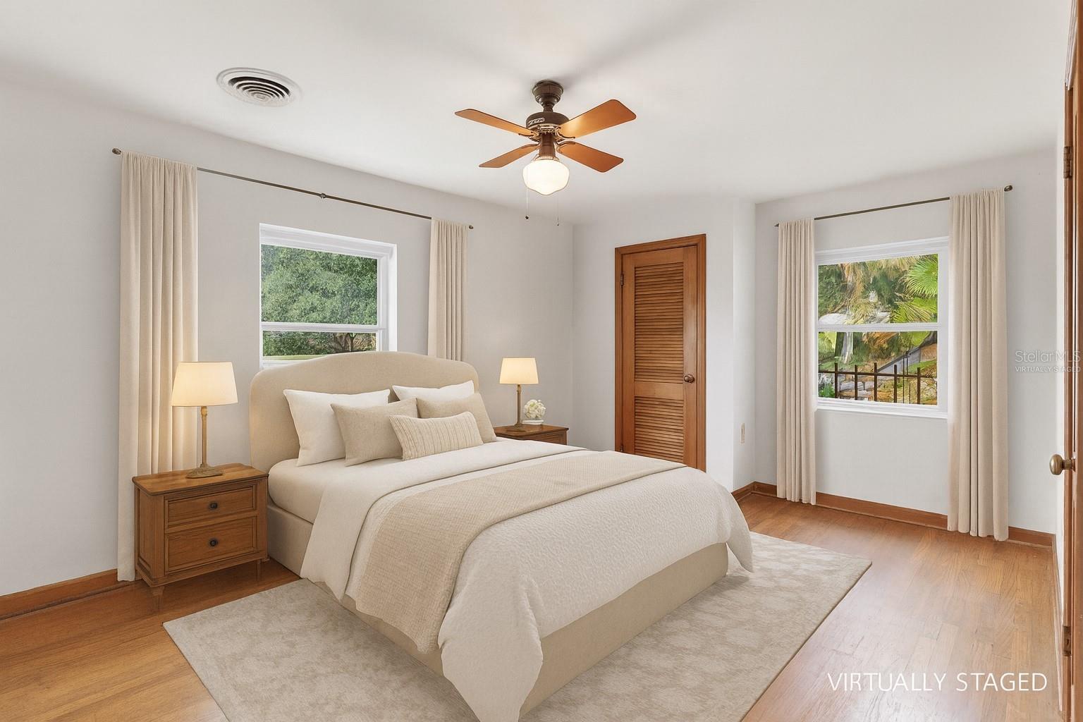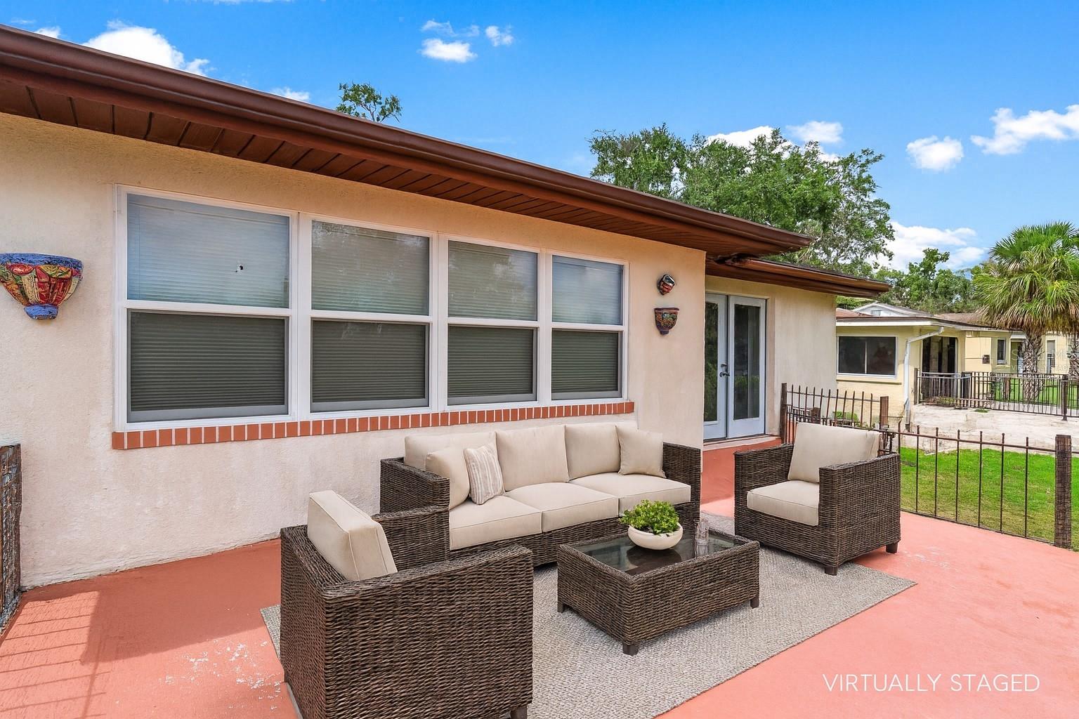 One or more photo(s) has been virtually staged. Prime Palmora Park Setting with Lake Harris Views. Discover the charm of Palmora Park, one of Leesburg’s most sought-after neighborhoods. This 3-bedroom, 2.5-bath home enjoys sweeping views of Venetian Gardens on Lake Harris, combining timeless character with thoughtful updates including a new roof (2022) and HVAC (2017). The interior welcomes you with sunlit living and dining areas accented by gleaming hardwood floors, while a 16' x 8' tiled family room provides extra space for gatherings or a cozy retreat. The kitchen blends style and function with granite countertops, rich wood cabinetry, a breakfast nook, and a convenient laundry closet. The primary suite offers comfort and privacy with a walk-in shower, while two additional bedrooms both featuring hardwood floors share a beautifully tiled second bath. A half bath and built-in storage add everyday convenience. Relax on the 18' x 10' covered porch, where tranquil park and water views create the perfect backdrop for morning coffee or evening sunsets. An attached garage with overhead storage completes this inviting home.