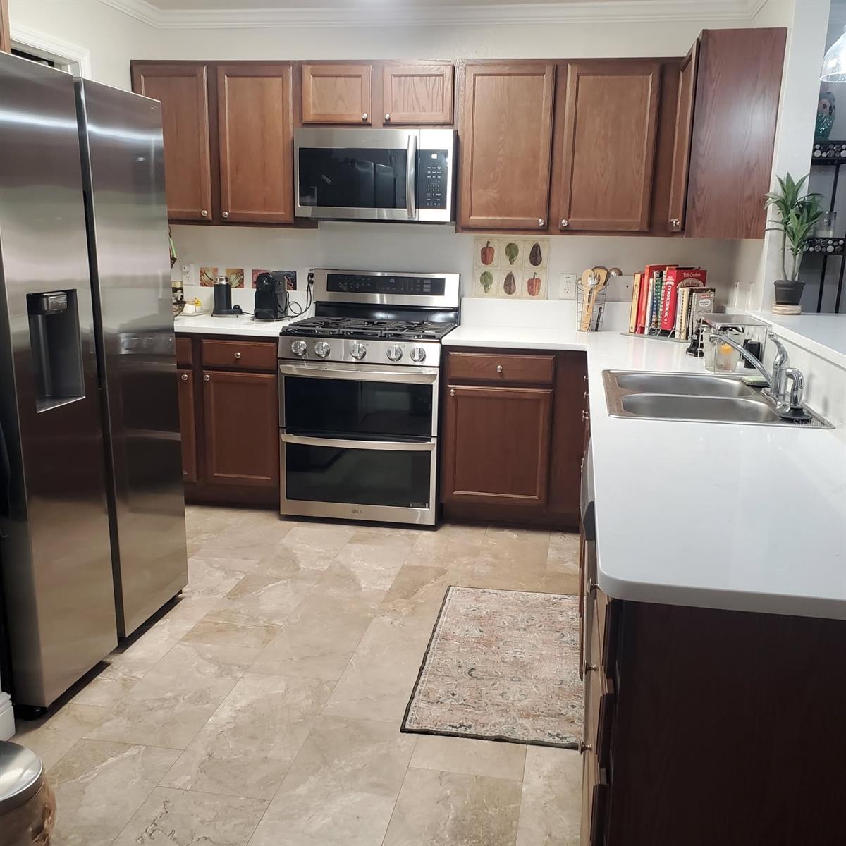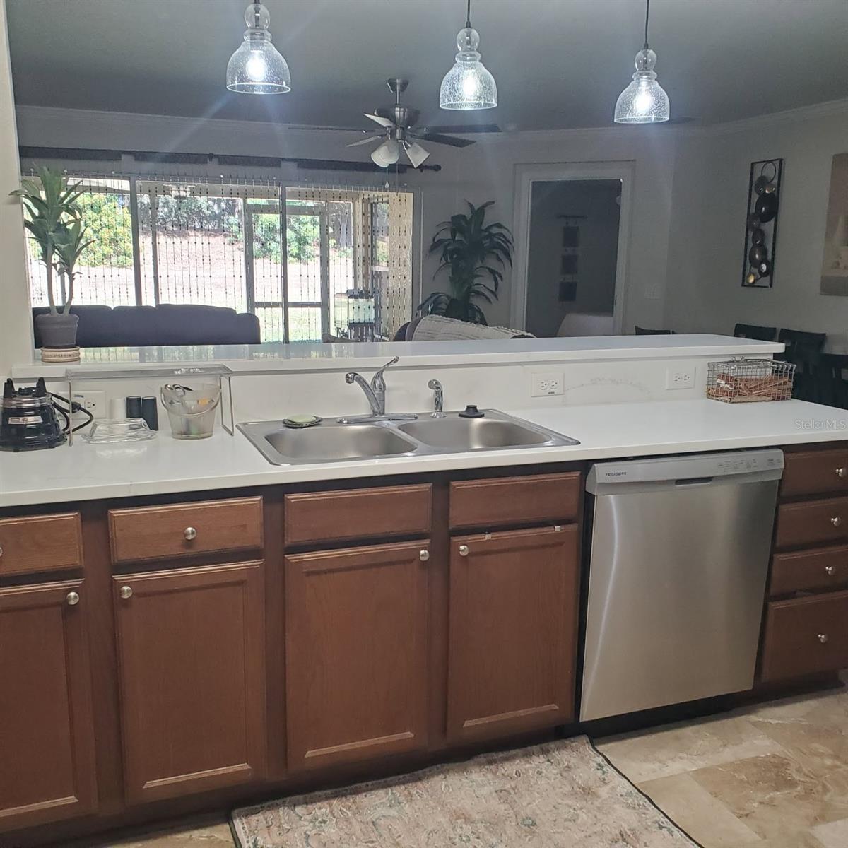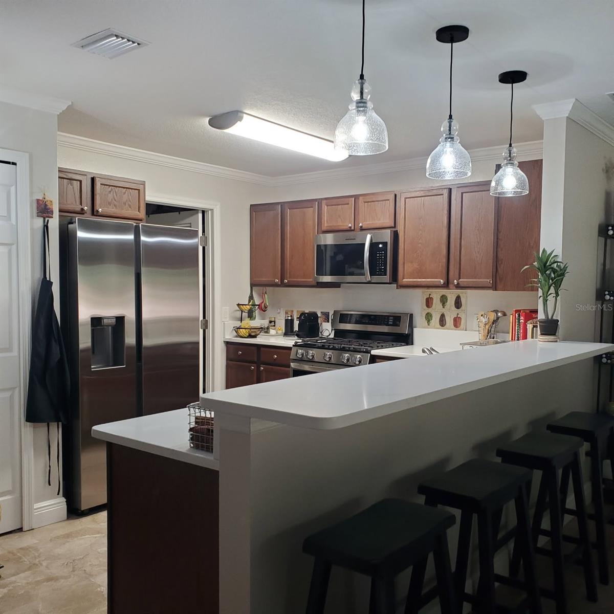 AFFORDABLE MAINTENANCE-FREE LIVING. Recently Major Updates, (Quartz in Kitchen & Baths Jan 2026) MAJOR UPDATES: New Roof in 2023, New central heat & air (2024), new stainless-steel appliances, including a double oven gas range, dishwasher and French door refrigerator with 4 years remaining on the warranty, ALL NEW 100% waterproof, deluxe vinyl plank flooring throughout—NO CARPET! Located in Highly Sought-After, Guard-Gated Arlington Ridge – An Active Adult, Golf Community! Discover low-maintenance living in this beautifully updated 2-bedroom, 2-bathroom villa with 1,254 sq. ft. of thoughtfully designed space. Located in the guard-gated, this charming block & stucco home is packed with recent upgrades, great amenities, and unbeatable value. Key Features: No-maintenance landscaping and exterior fully maintained by HOA – from the roof to the lawn allowing you more time to do what you want. What will you do in your spare time? Spacious 19x16 living room, crown molding, and a screened, covered lanai overlooking a private, shaded backyard. Oversized 1-car garage + room for golf cart private driveway for guest parking. Indoor laundry room (11x9) with washer & dryer included. Master suite includes dual closets, ensuite bath with walk-in shower, dual vanities, private toilet, and linen closet. Split plan Guest bedroom with adjacent full bath offers comfort and privacy for visitors. Low HOA – Just $297/month! Includes: Roof & exterior painting as needed Lawn mowing, trimming, of blowing off of sidewalk & driveway 200+ cable TV channels 250 Mbps high-speed internet Wi-Fi router for full-home coverage Resort-Style Amenities Just 2 Blocks Away, Mailbox 1/4 Block away 18-hole golf course, driving range, & putting greens 2 heated pools, hot tub & sauna Lighted tennis & pickleball courts Fitness center, billiards, restaurant, tavern, & free movie theater No required golf or social membership to enjoy amenities! Golf cart-friendly with sidewalks and underground utilities for a polished community feel. Perfect for snowbirds or full-time residents who want peace of mind with no exterior upkeep. Home is built to high wind code standards in a low-wind zone—offering significant insurance savings and flood protection due to high elevation. Currently Paying Only $1,085/Year Ideal Location: 1 minute to back gate to avoid stoplights & traffic when leaving the community 5 minutes to grocery stores, pharmacies, and restaurants 10 minutes to emergency services and free public boat ramp & fishing pier on 15,000-acre lake Harris a major bass tournament fishing destination 20 minutes to major shopping and entertainment 45 minutes to Orlando, theme parks, and airport 90 minutes to both the Atlantic Coast and Gulf Coast