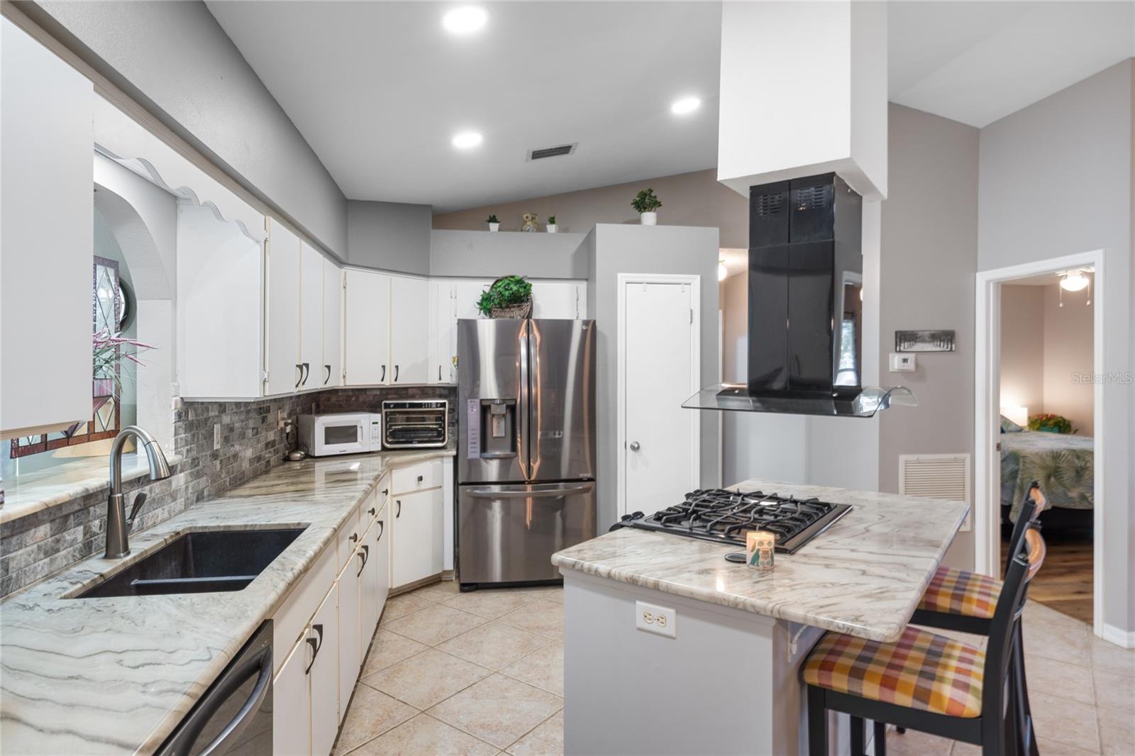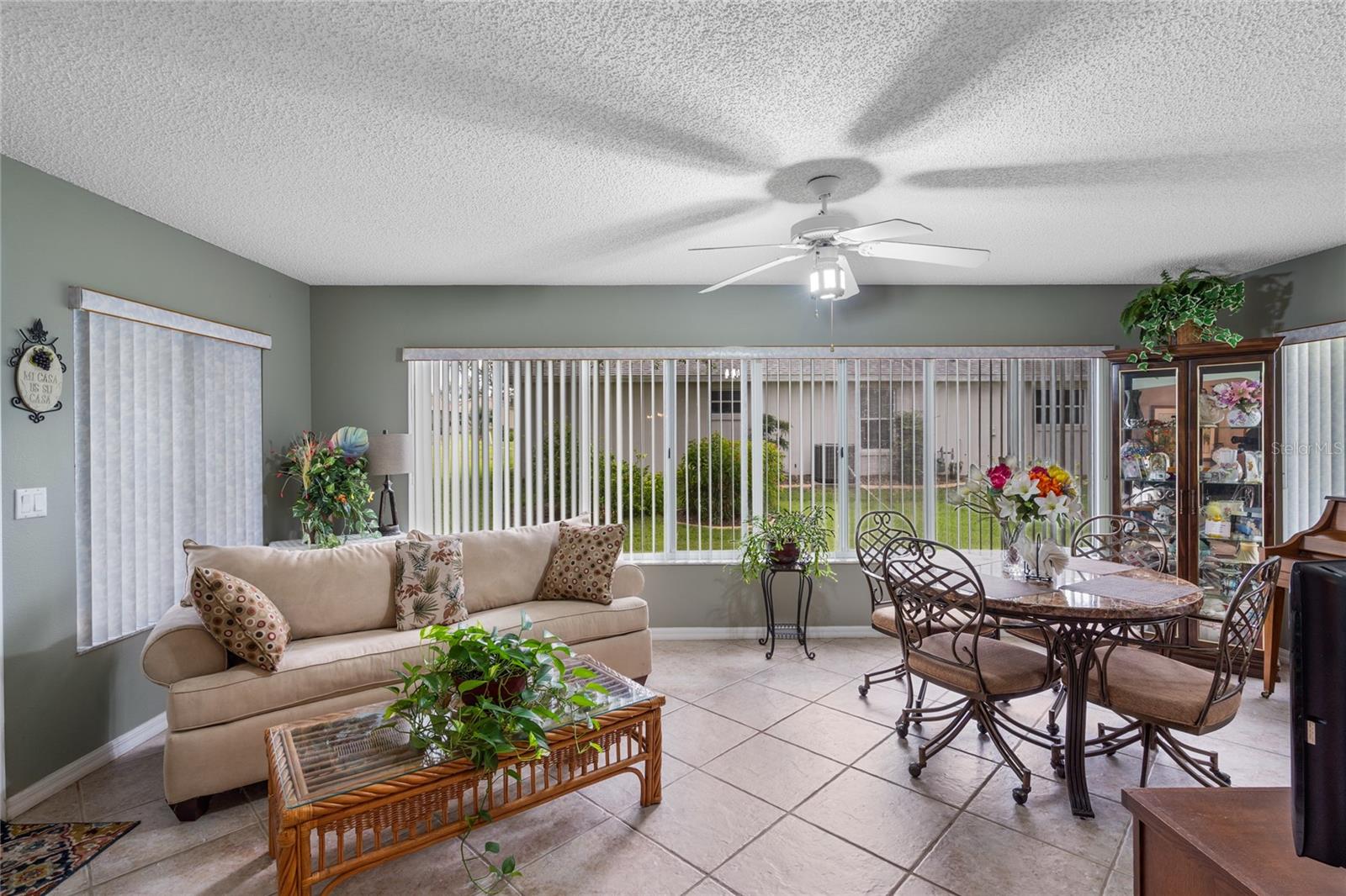 *BIG CORNER LOT* UPDATED KITCHEN*YOU MIGHT BE ABLE TO ASSUME A LOW INTEREST VA LOAN* Enjoy relaxing on your front porch and watching the world go by. Enter the front door and you'll appreciate the nice open floor plan. The living room is a great size and features 2 solar tubes for good light. Pretty, updated kitchen features an island with a gas range, modern hood and seating. Counter tops and backsplash are stone and updated appliances are stainless steel. There is also a pantry. The cute dining room is at one end of the kitchen. As you go through the dining room, you'll come to the Florida room. It is a wonderful, light-filled space with windows on 3 sides to enjoy green space. From the Florida room, you enter the birdcage-screened porch area. What a great space for grilling, reading etc. All floors in the central part of the home are tile. Bedrooms are laminate. No carpet here! On one side of the home you have a bedroom with bath just across the hall. Bath has tub/shower combo and tall commode. On the other side of the home is the primary bedroom suite. You'll love the large walk-in closet. The vanity area and shower/commode area are separate, so it's convenient for 2 to use at a time. Pegboard lines the walls of the over-sized garage. Roof is 4 years old. The panel box and water heater have been replaced. All of this in the wonderful, friendly, 55+, gated community of Highland Lakes. The community is financially sound and has a low monthly fee. There is a beautiful clubhouse with a library, billiard room, craft room, card rooms, fitness room and a large arena with a walking track. Many events, dinners, concerts etc. are held in the arena. You can enjoy indoor swimming, pickleball and tennis, as well as outdoors. Other sports available are horseshoes, shuffleboard, bocce, softball. There is a great craftsman shop and free boat and RV storage. Location is convenient to shopping, banks, groceries and major highways and attractions.