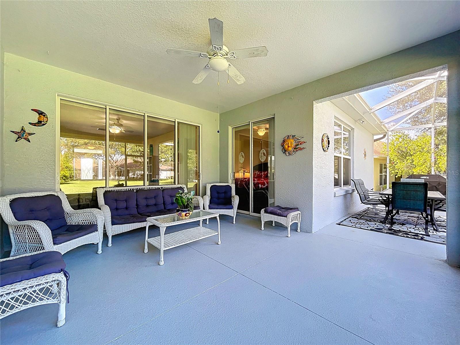 Fantastic Gated Golf Community for Active 55+ Living! This home offers a unique and versatile layout, featuring 4 bedrooms, or 3 bedrooms plus an office/study, an uncommon find in a 55+ community! Enjoy the flexibility to create the perfect space for guests, hobbies, or a quiet workspace, all within a premier golf community known for its beautiful surroundings and resort-style amenities. This gorgeous home features a WHOLE HOUSE GENERATOR, thermal pane windows, a beveled glass front door, epoxy garage floor, extra closet space throughout, and beautiful, easy-care landscaping designed for stress-free living. Open and bright kitchen featuring 42-inch cabinets, granite countertops, a convenient breakfast bar, soft-close drawers, pull-out shelves, recessed lighting, and a spacious breakfast nook, perfect for casual dining and morning coffee. Wonderful space throughout this home! There’s plenty of room to accommodate family and friends when they come to visit. The primary suite is extra spacious, featuring a huge walk-in closet and a beautifully designed bath with a large tiled walk-in shower with a built-in seat, an extended vanity with a makeup area, a generous linen closet, and a private water closet for added comfort and privacy. Lastly, enjoy evening cookouts or gatherings on the large covered patio and open screened areas, ideal for hosting friends and family during Florida’s perfect weather months. The backyard offers wonderful privacy, with neighbors set back at a distance, a spacious grassy area, and mature trees that create a peaceful, secluded atmosphere. So much to offer! This wonderful community offers an exceptional lifestyle! Enjoy a Championship golf course surrounded by a winding river and majestic old oaks that frame all 18 holes. Take advantage of the resort-style pool, perfect for cooling off on warm Florida days, or stay active in the spacious fitness center. Additional amenities include tennis courts, a full-service restaurant and bar, numerous clubs and activities, and so much more! With two convenient gated entrances and plenty of sidewalks throughout, this is truly a premier Central Florida location. Just 10–15 minutes to the Florida Turnpike, 45 minutes to Disney World and major theme parks, and 30 minutes to historic downtown Mount Dora. The Villages are only a short drive away, and everyday conveniences like an emergency care hospital, dog park, restaurants, grocery stores, and pharmacies are just minutes from your doorstep. Come discover the perfect blend of relaxation, recreation, and community. Make this gorgeous home and lifestyle yours today!