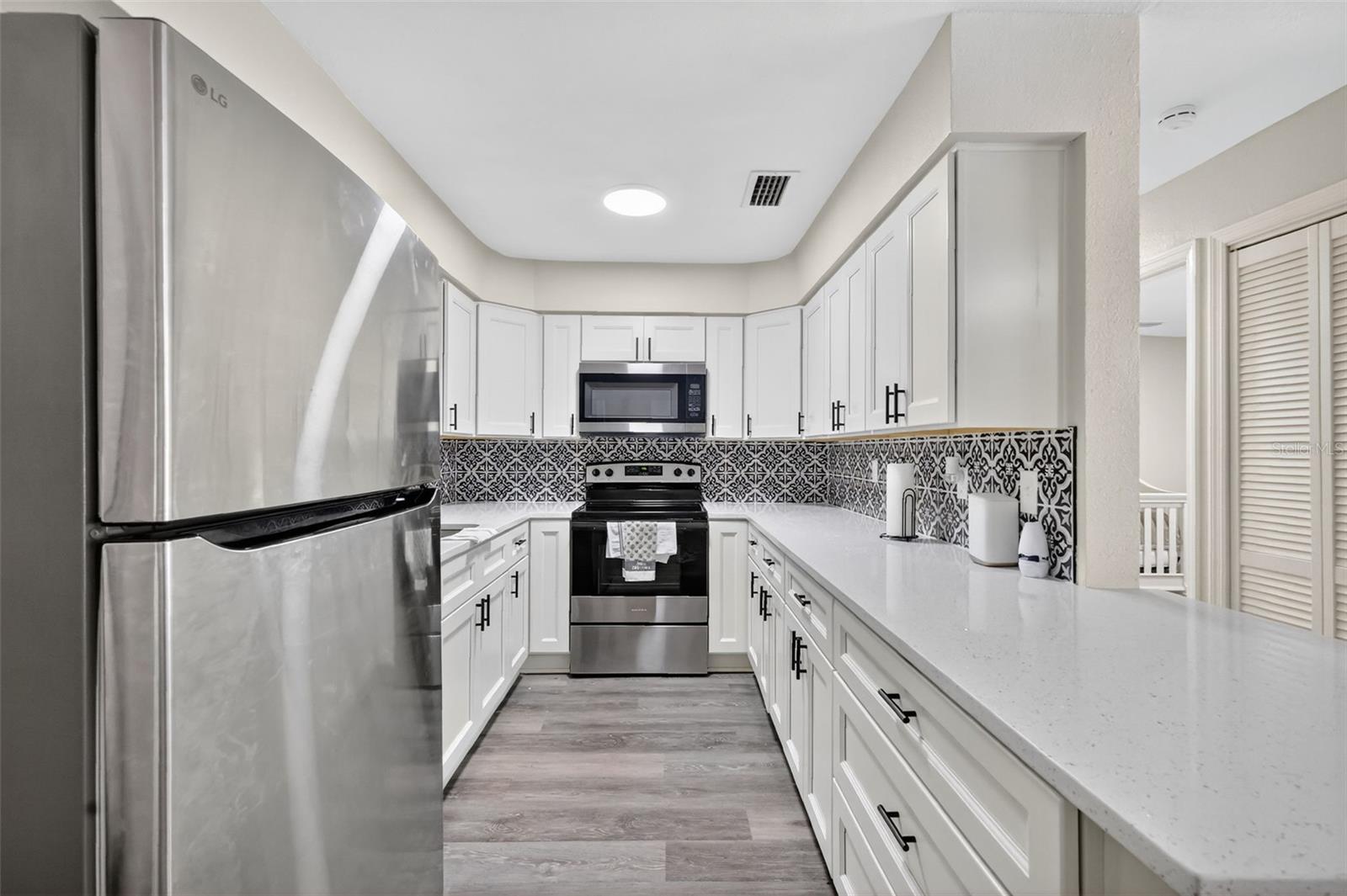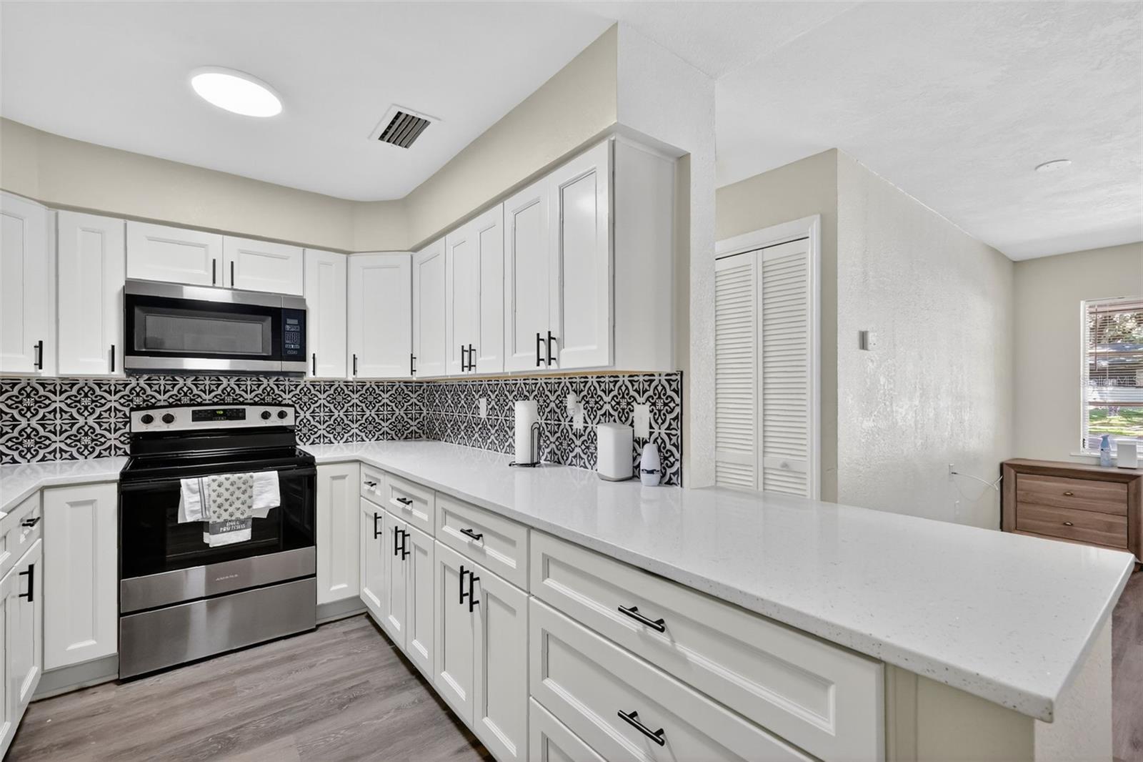 Enjoy modern living in this completely renovated 2-bedroom, 2-bathroom home, free from HOA fees and rear neighbors. The property has been updated with beautiful quartz countertops, stainless steel appliances, new kitchen cabinets and new vinyl flooring throughout. Both bathrooms have also been updated with attractive new vanities, fixtures, and step-in tile showers. The interior and exterior have been freshly painted, and the roof and HVAC system were replaced in 2025. The backyard has a huge, covered patio that let you enjoy your outdoor space in any weather, additional covered parking, and a convenient storage shed. Located just minutes from schools and historic downtown Leesburg, you will have easy access to local restaurants, shops, and recreational areas like Ski Beach/Venetian Park on Lake Harris. Schedule your tour today!
