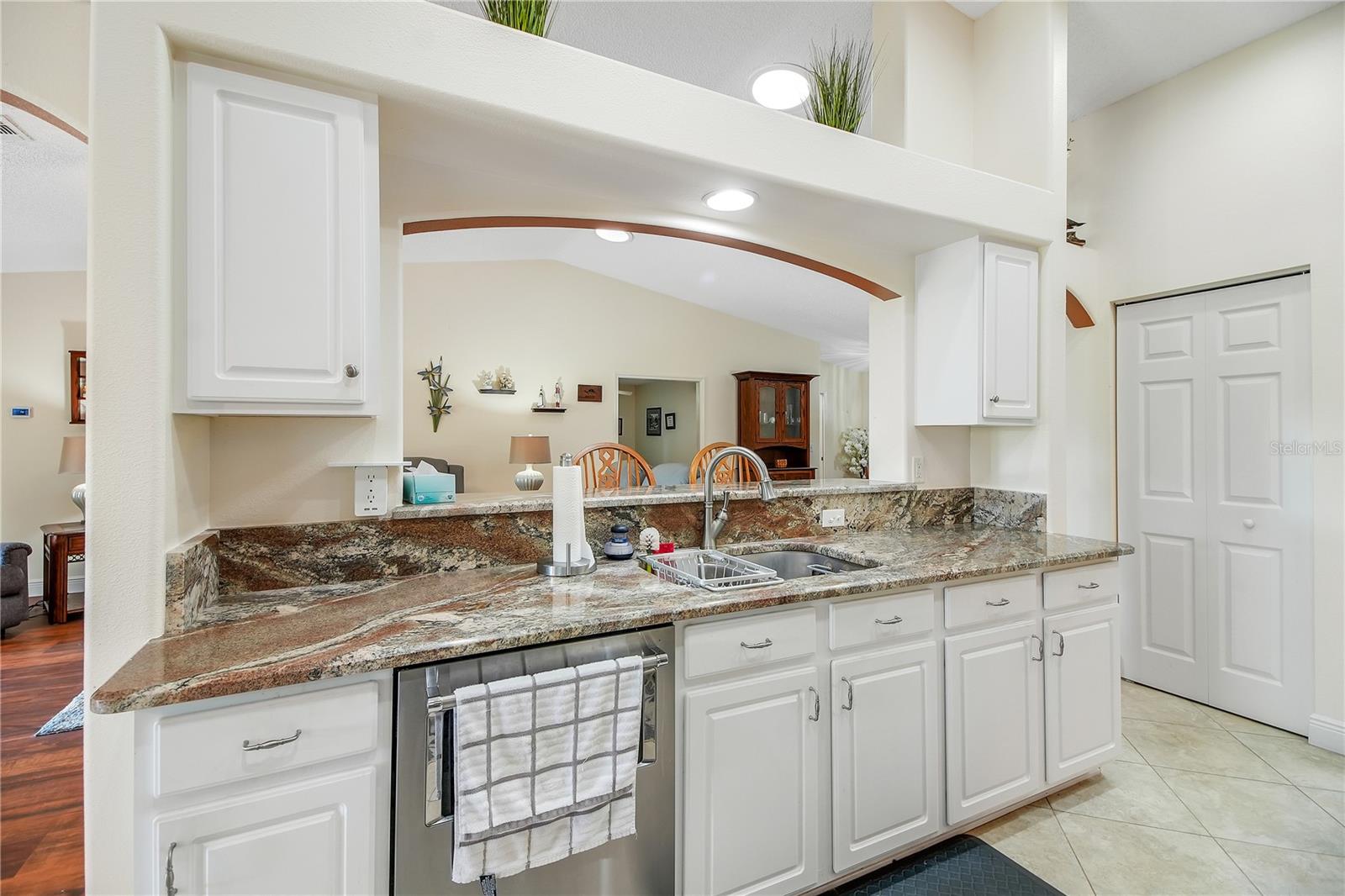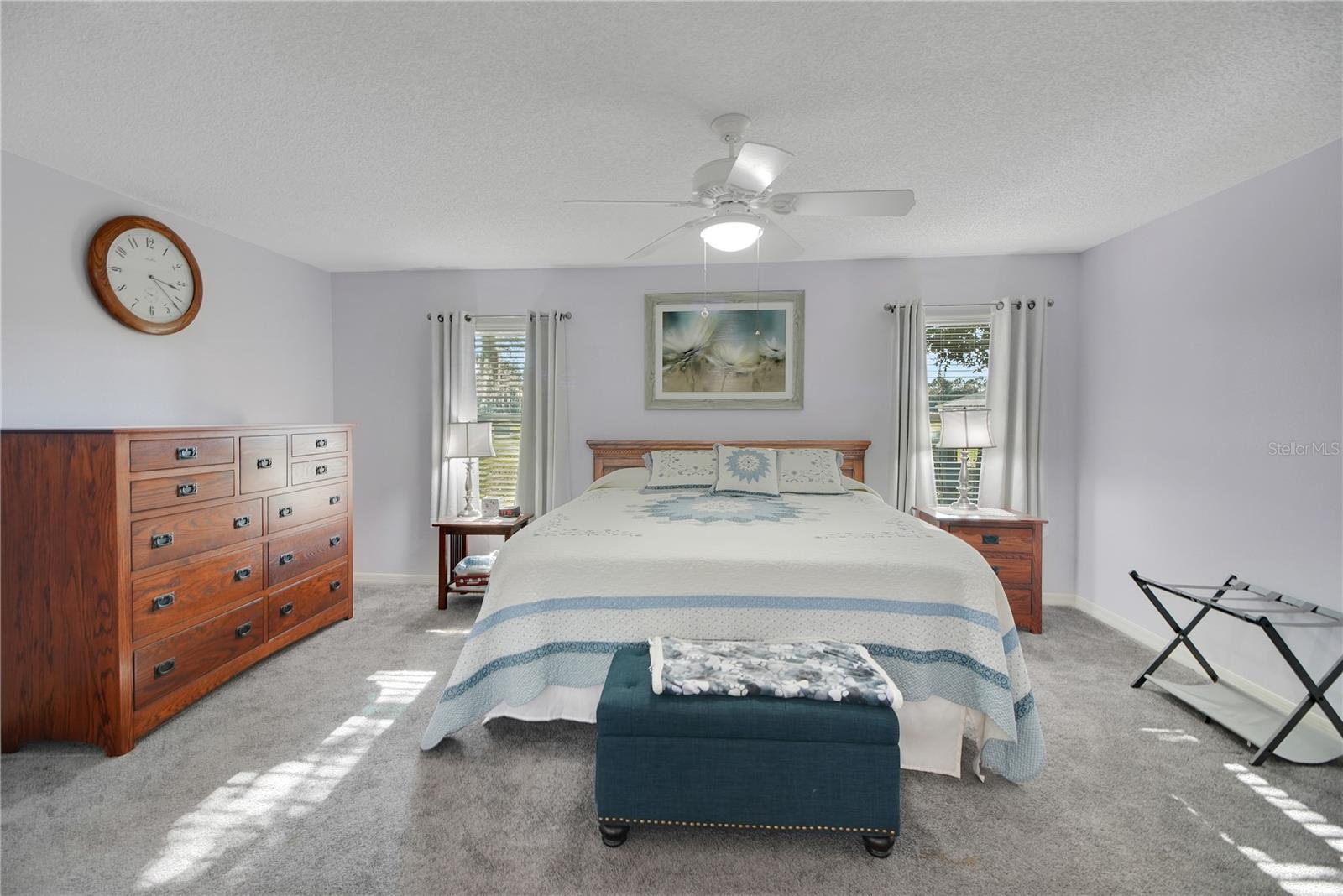 One of a Kind GOLF Frontage Home with WATER VIEWS PLUS a large 2 car garage with a BONUS Room in the desirable 55+ Pennbrooke Fairways! This 3 Bedroom 2 bath is 1999 square feet of Living space. The primary bedroom is 17 x 13 and features a large walk-in closet and an ensuite with a water closet, 2 separate vanities, dual sinks and a large walk-in shower. The 2 guest bedrooms are spacious in size (one of the bedrooms does not have a closet) and share a bathroom nearby. The Inside laundry room is oversized and has lots of storage space and a utility sink. This home showcases lots of natural light in addition to the 4 solar tubes. Lovely finished glass enclosed Lanai has wood like ceramic tile flooring and breathtaking Water & Golf Course views! New roof in 2020,New HVAC in 2021 and water heater in 2015. Kitchen & bathrooms feature granite countertops. Also the kitchen has newer stainless steel appliances, white cabinets, a desk area as well as eat-in space overlooking the water and golf course views. Living room and Dining room combo has Luxury Vinyl plank floors. Between the inside Laundry room and garage is a 20x10 workshop that is heated and cooled (not included in the living sq ft) which could be a great Man Cave, Craft Room or storage! The low $265 Monthly HOA fee includes grass cutting, Hi-speed internet, cable and amenities. Pennbrooke Fairways is a lovely Gated Golf community. 27 holes of golf, pro shop and restaurant. Two recreation Centers, 2 pools and Fitness Center, Shuffleboard, pickleball, tennis, softball, horse shoes, water volleyball and cornhole. If you like inside activities, there are darts, billiards, Line dancing, Quilting, Art room and over 100 Clubs. Pennbrooke is convenient to Shopping and dining and 6 miles East of The Villages Brownwood Paddock Town Square.