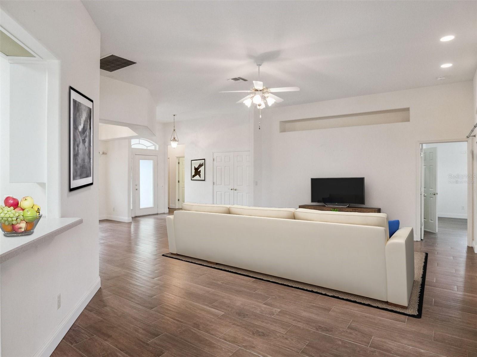 One or more photo(s) has been virtually staged. An incredible opportunity to own nearly 2300sf. Duchess Model home with a rare golf cart garage addition! Roof & HVAC have been updated in 2019! Situated on a generous corner lot, with large rooms, high ceilings, lots of natural light and TONS of STORAGE areas! This is the perfect home for folks with lots of crafts, seasonal decor, entertaining supplies, or for those who still work from home! Stainless appliances in the kitchen, pull-outs in the lower cabinets, adjacent dinette area PLUS formal dining room! Inside laundry with washer/dryer, storage cabinets and a walk-in pantry/closet! Primary suite has a large bath with soaker tub, private water closet, step-in shower, and dual vanity! This home will be FUN for the new owner to make their own! There is so much space to consider and a natural flow from room to room! Royal Highlands is a gated, golf community with on-campus restaurant, pro shop, driving range and putting green. The recreation center offers a fitness center, two pools, craft room with kiln, library, billiards, and courts! The Great Hall has a large dance floor, theater stage, and industrial kitchen. The low monthly HOA includes cable, internet, amentities and guardhouse. Call for your tour today! Great central location, close to MCO, amusement parks, shopping and medical facilities. Easy to show and ready for your offer!