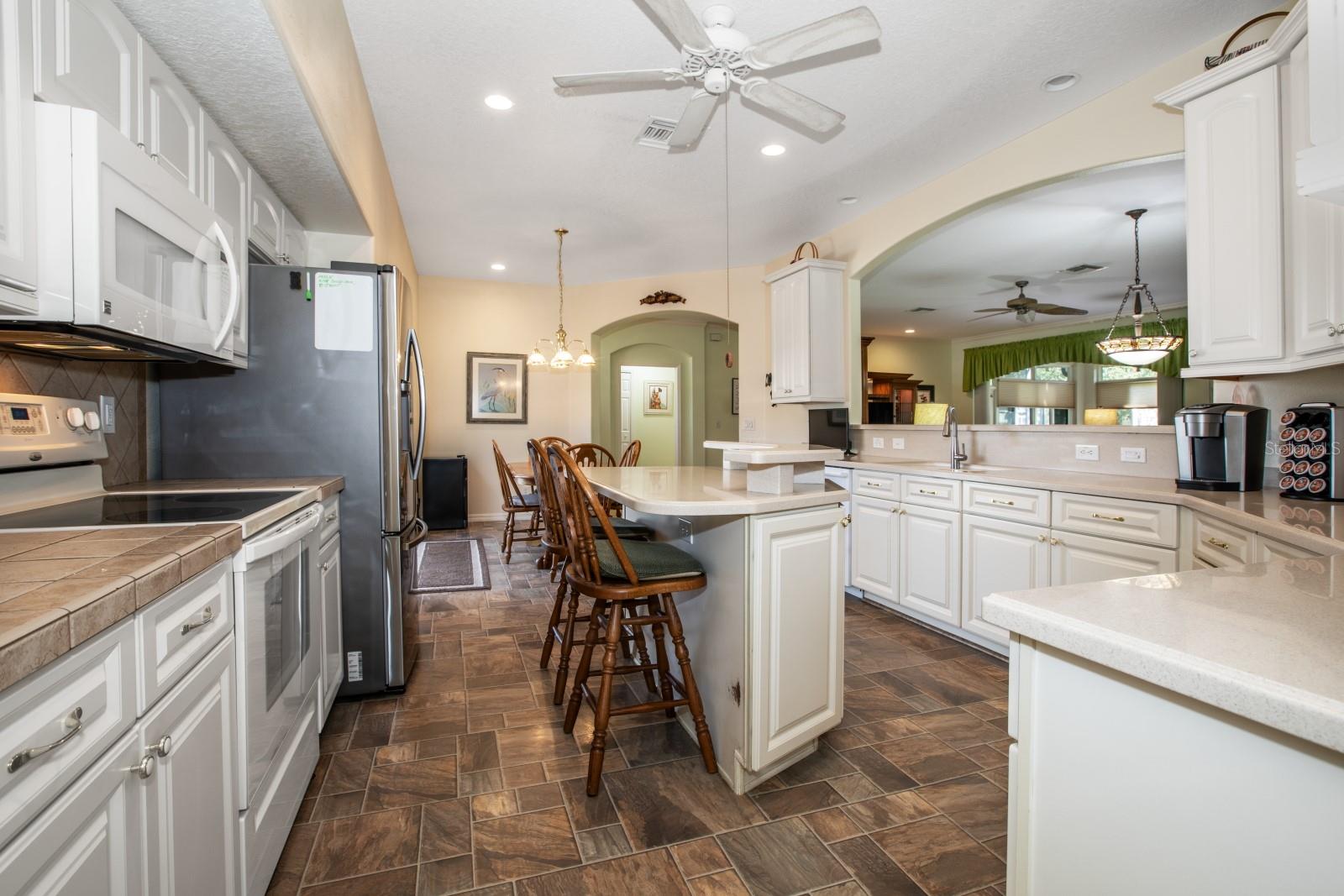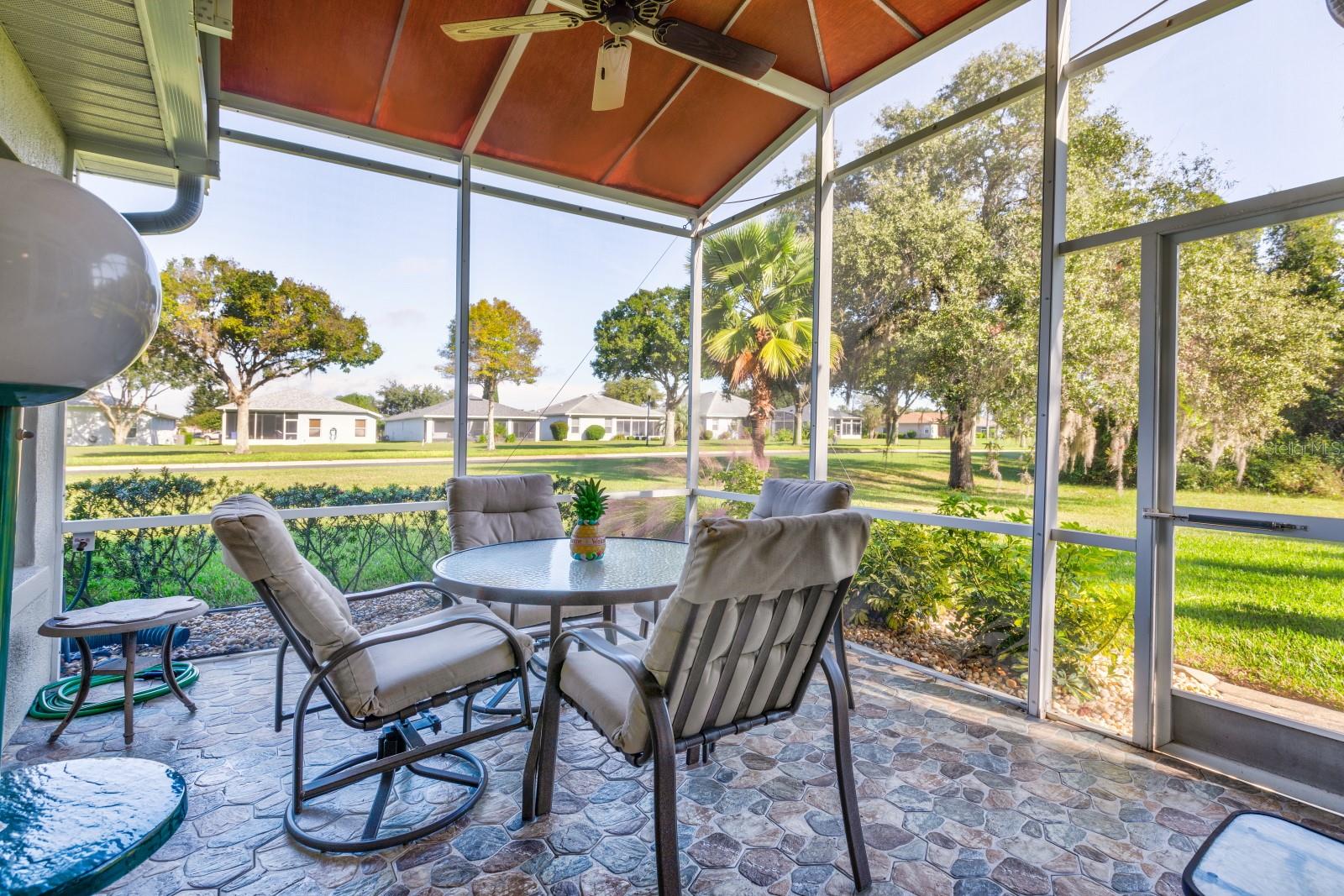 COURTYARD MODEL YORK ON A CORNER LOT. THIS HOUSE HAS IT ALL AT A PRICE YOU CAN'T SAY NO TO. IT WON'T TAKE LONG TO FALL IN LOVE WITH THE OVERSIZED KITCHEN WITH AN ABUNDANCE OF CABINETS, PULL OUTS IN THE CABINETS THERE IS A DESIGNATED BREAKFAST AREA THAT OPENS OUT TO THE COURTYARD THRU FRENCH DOORS. THE HOME HAS BEEN EXPANDED SO CHECK OUT HOW LARGE THE ROOMS ARE. LIVING ROOM OPENS OUT TO AN ENCLOSED UNDER ROOF AREA WITH GREAT VIEWS. CROWN MOLDING. PRIMARY BEDROOM HAS 2 WALK IN CLOSETS AND THE PRIMARY BATH, A WALK IN SHOWER AND LINEN. PLANTATION SHUTTERS IN ALL THE BEDROOMS.WANT A BIRDCAGE? THERE IS ONE OF THOSE TOO. DO YOU WANT ROOM FOR A GOLF CART? WE HAVE THAT TOO. CENTRAL VAC SYSTEM,FULL REMOTE SCREEN ON THE GARAGE.ROOF 2019 WATER HEATER 2022 HVAC 2015 ALL OF THIS IN LEGACY OF LEESBURG, A NATURE THEMED COMMUNITY WITH MILES OF WALKING TRAILS AND ACRES OF CONSERVATION AREA. THERE IS PICKLEBALL, TENNIS, SHUFFLEBOARD, BOCCE, BASEBALL FIELD, WE HAVE SOME REALLY TALENTED PLAYERS. AND TO RELAX, THERE IS A RESORT STYLE POOL. OUR NEWLY RENOVATED COMMON AREAS WILL BE OPENING IN NOVEMBER, WHAT A GREAT JOB THEY DID. COME SEE WHY SO MANY CALL LEGACY HOME.