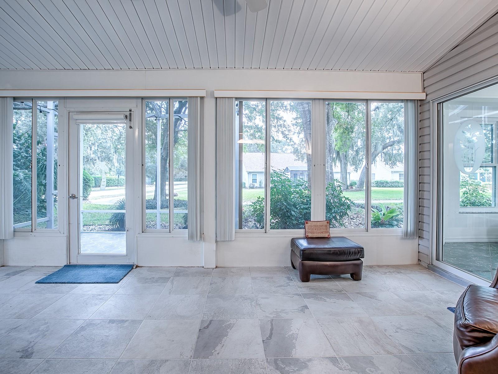 Welcome to The Plantation at Leesburg, a premier gated golf community offering resort-style living and exceptional amenities. This well-maintained home sits on a beautiful golf course lot and features both a closed-in lanai and an additional screen room, perfect for enjoying peaceful views and Florida breezes. Inside, the spacious kitchen shines with upgraded appliances, abundant cabinetry, and a charming extended bay-window dining area that fills the space with natural light. The open living and dining layout is ideal for everyday comfort and entertaining. The expanded owner’s suite offers wonderful extra space, dual walk-in closets, a walk-in shower, and tall dual vanities. Two generous guest rooms each provide large closets. Additional upgrades include 14 new windows, solar tubes, plantation shutters, and a roll-down screen for the garage. The oversized 2-car garage plus golf cart garage is bumped out 6 feet for extra storage. Major systems are in great shape: A/C 2013, roof 2020, hot water tank 2025. Enjoy an active lifestyle with access to 2 golf courses, pickleball, tennis, walking trails, softball, 2 fitness centers, sauna, hot tubs, and 3 sparkling pools. Take your golf cart to the on-site restaurant for great food, a cold drink, and fun entertainment—including karaoke nights. This community truly offers everything you’ve been looking for in a thoughtfully planned, amenity-rich neighborhood.