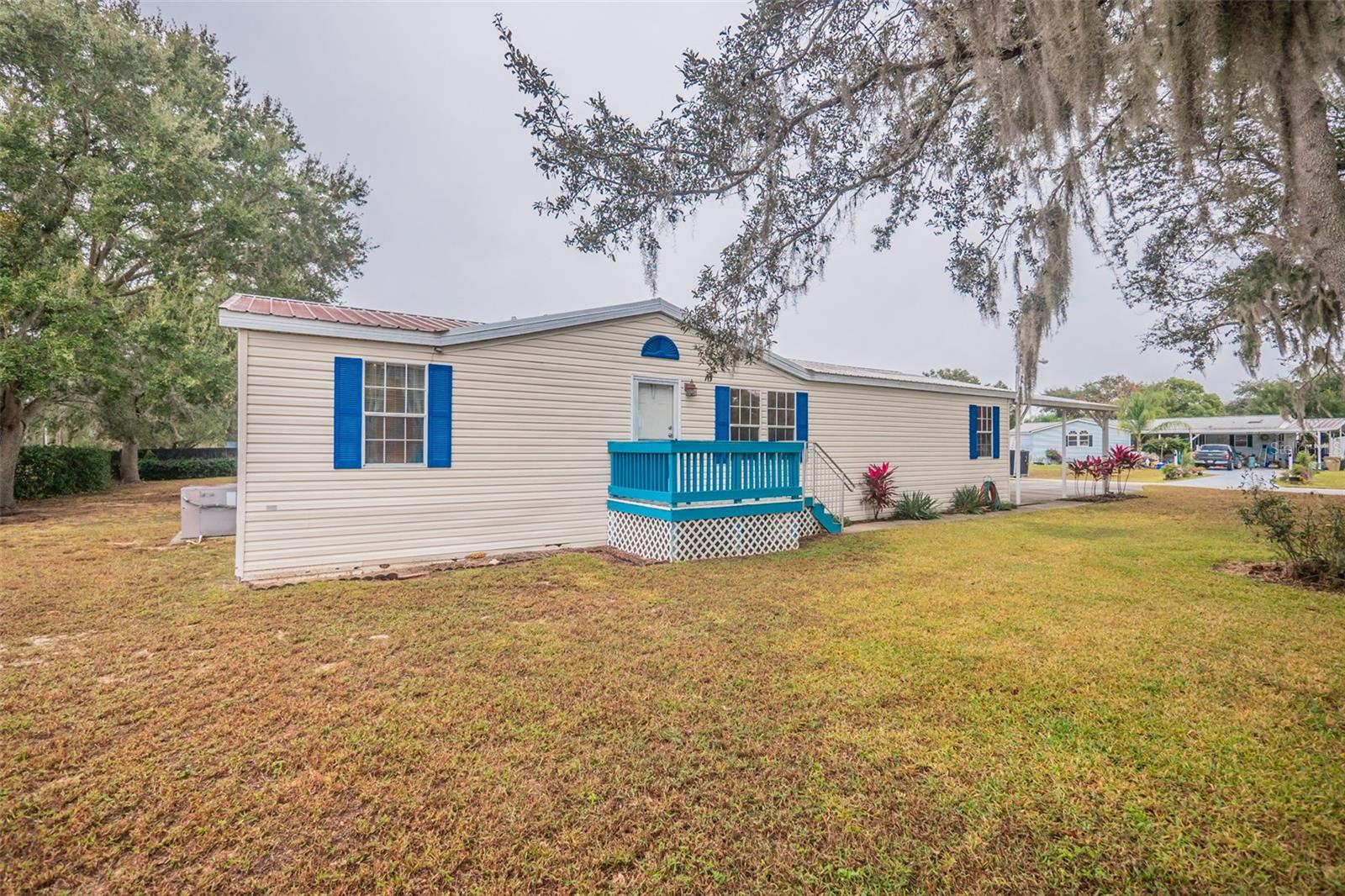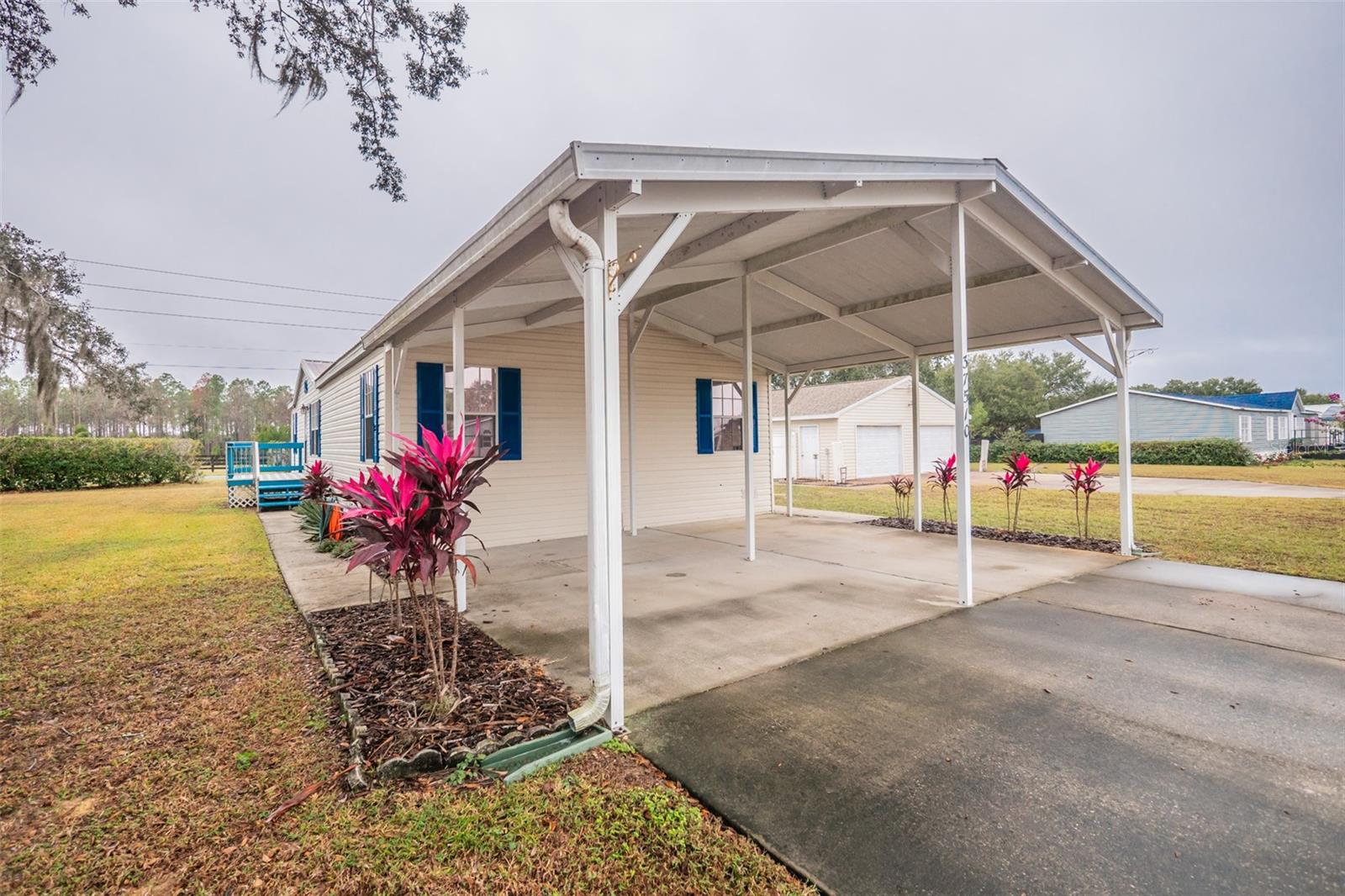 Spacious 3BR/2BA Home on Over Half an Acre with Oversized 4-Car Garage & Workshop — Corner Double Lot! Welcome to this well-maintained 3 bedroom, 2 bathroom manufactured home situated on a desirable double corner lot totaling over half an acre. Offering exceptional space both inside and out, this property is perfect for anyone needing room to spread out, work on projects, or store vehicles, equipment, and toys. Inside, the home features a split floor plan for added privacy, newly installed carpet, and comfortable living spaces throughout. The primary suite includes its own bathroom, while the additional bedrooms are ideal for guests, office use, or hobbies. A covered deck provides the perfect outdoor spot for relaxing, entertaining, or enjoying the peaceful surroundings. Car enthusiasts and hobbyists will appreciate the impressive oversized 4-car garage with dedicated workshop space—a rare find. In addition, there is an attached carport and extensive uncovered parking, offering plenty of room for vehicles, RVs, trailers, or equipment. Major improvements include: • Lifetime metal roof on home (2010) • Shingle roof on garage replaced (2025) • 3 Ton Carrier AC (2010) • Water heater (2013) • Septic pumped (2019) This unique property provides the freedom of space, storage, and functionality while offering comfortable living inside. With a huge corner lot, multiple parking options, and a massive garage/workshop, this home is perfect for those who value room to grow and the flexibility to live, work, and play all on one property. Home is also hurricane ready, in the garage you will also find the easy install plywood sections labeled for each window. Don’t miss this opportunity—homes with this much land and garage space are rarely available! SELLER MOTIVATED! SCHEDULE YOUR SHOWING TODAY!