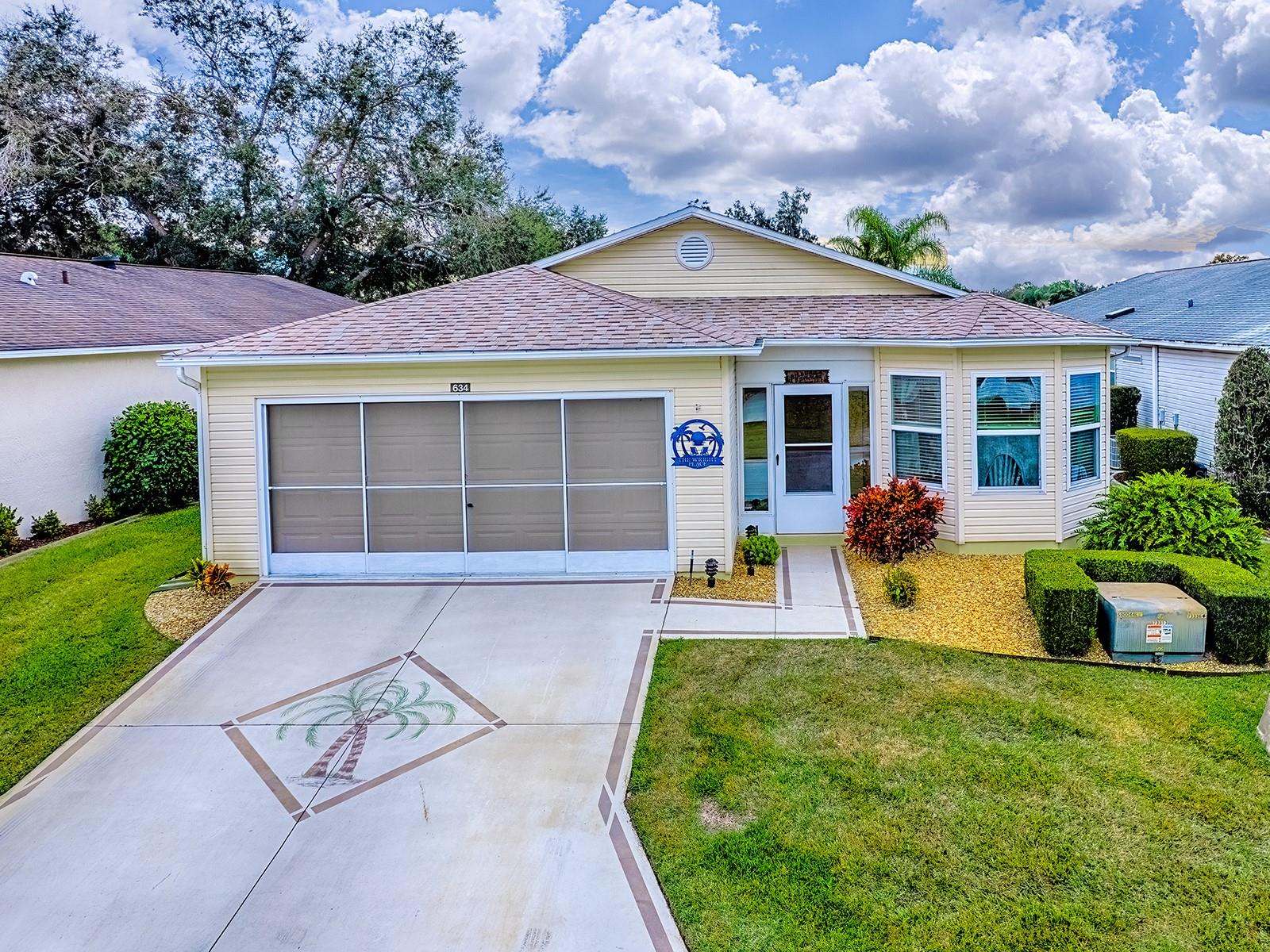 PRIVACY VIEW AND A GOLF FRONT PROPERTY VIEW! Gorgeous 2 BDRM / 2 BTH home in Pennbrooke Fairways with tons of upgrades!! Breathtaking views from the ENCLOSED LANAI, what is not to LOVE! Best of all...... NEW ROOF (2022) and NEWER HVAC (2019). HOT WATER HEATER 2021. New Stainless Steel appliances in 2024, with new washer and dryer in 2025. Artistic Design Tile Flooring was placed in 2025. All new ceiling fixtures PLUS a Cedar ceiling in the main living area. You have a solid kitchen countertop in 2025. Both vanity tops and fixtures were replaced in 2025 AND when you turn on the faucet, it lights up! A shower and bath refinish was done in 2025. Plus, the interior has been repainted. READY FOR YOU TO MOVE IN!! And the GOLF VIEW is beautiful! Welcome to Pennbrooke Fairways! This hidden gem of a community is located just 5 minutes south of The Villages, less than an hour to Orlando, Tampa and Daytona Beach within 90 minutes... just a perfect location for day trips! Pennbrooke Fairways golf course offers golfers two executive nines and one regulation nine. Golfing packages are available for community residents and open to the public. Pennbrooke offers RV and Boat Storage with Dump and Wash Stations & 24-hour Gated Security. The community center offers a Restaurant, Hair Salon, Library and Real Estate Community Office onsite. Your HOA includes cable, internet and lawn cutting services. Guarded, gated community with pools, club recreational centers and more. Loads of fun activities are planned throughout the year! Conveniently located within minutes from The Villages and Brownwood Town Square... enjoy all the shopping and dining the Villages has to offer and just minutes to Downtown Leesburg. Central Florida living at its best! 55+ Plus community. THIS VIEW HOME IS A MUST SEE! COME TOUR PENNBROOKE, YOU WILL BE GLAD YOU DID!