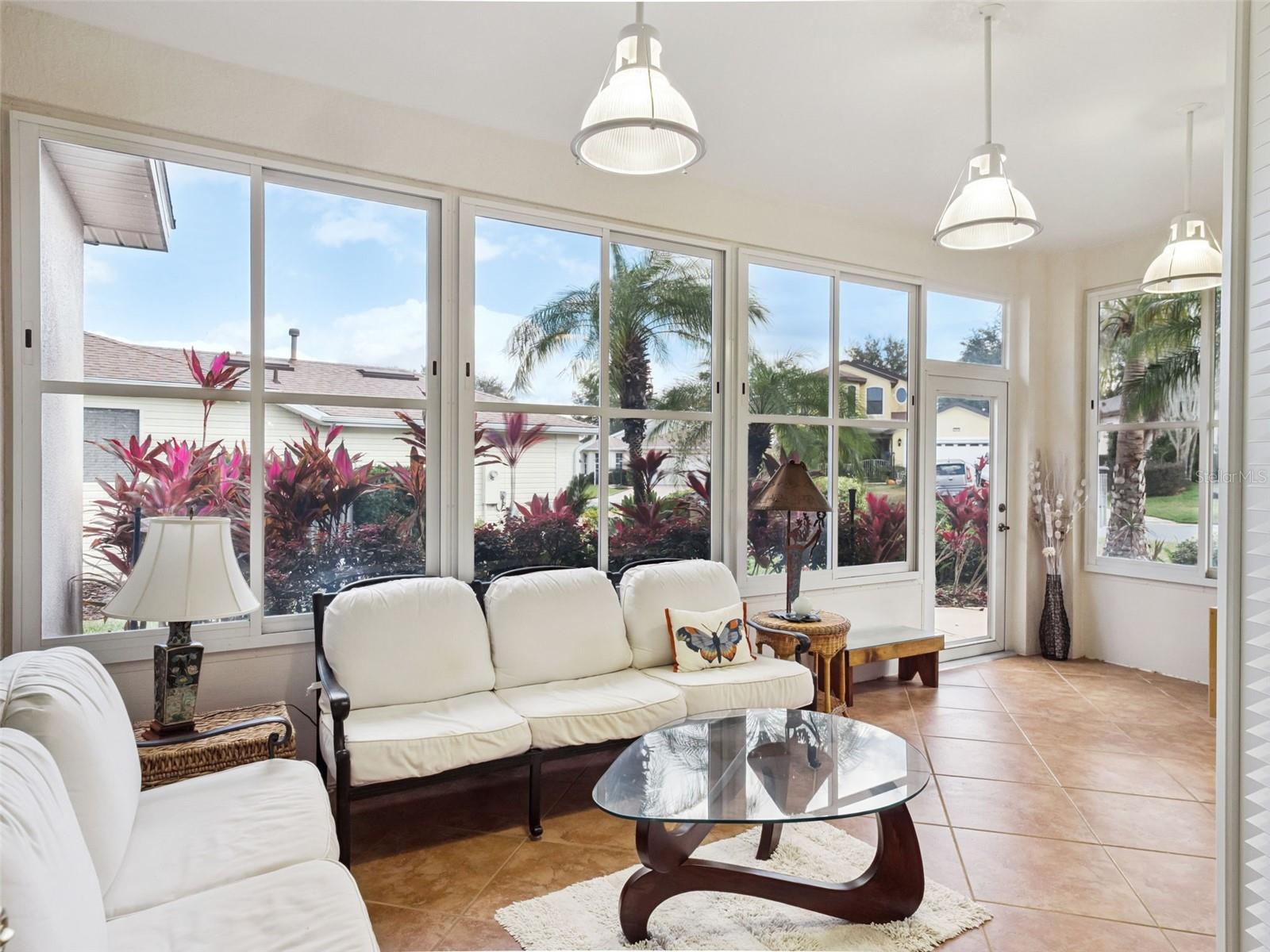 One or more photo(s) has been virtually staged. Welcome to this light & bright Tantallon Model with three solar skylights nestled in the heart of Royal Highlands! This meticulously maintained home boasts three spacious bedrooms and two elegant bathrooms, offering 1,813 square feet of comfortable living under heat and air. Vast ceramic tile floors flow seamlessly throughout common areas, enhancing an inviting open floor plan with soaring ceilings, a sun-filled breakfast nook, and a convenient inside laundry room. Enjoy the flexibility of a welcoming guest suite and a versatile third bedroom that easily transforms into a cozy den, hobby room, or home office to fit your needs. French doors lead into the flex space that overlooks the vibrant common areas, perfect for relaxing or entertaining. The adorable Florida Room features tiled floors, expansive windows that usher in natural light, serene garden views, and direct access to a patio with a built-in gas line for your BBQ grill—ideal for enjoying Florida’s outdoor lifestyle. The kitchen is a chef's delight with granite counters, a stainless appliance package, gas range, 42” upper cabinets, lower pull-outs, and an open concept design that seamlessly connects to the living areas, making it perfect for gatherings and everyday living. The owner’s suite provides a tranquil retreat, complete with dual vanities, a dedicated make-up area, a luxurious soaker tub, and a step-in shower. Architectural design elements, abundant closet space, and a screened entry add style and practicality. As soon as you enter the welcoming foyer of this home, you’ll feel you have found “the one”—this showstopper is ready to be yours. Enjoy peace of mind with a transferable termite bond, a 2022 roof, and a 2018 water heater. Experience the best of 55+ living in Royal Highlands, a premier gated golf community. Residents enjoy a low monthly HOA fee that includes cable and internet, access to a wealth of amenities—dances, theater productions, a fitness center, two sparkling pools, sport courts, a softball field, crafts, billiards, a library room, walking paths, and hundreds of clubs and activities to suit every interest. Savor meals at the on-campus restaurant after you practice your swing at the driving range. Come discover what Central Florida active adult living can offer you!