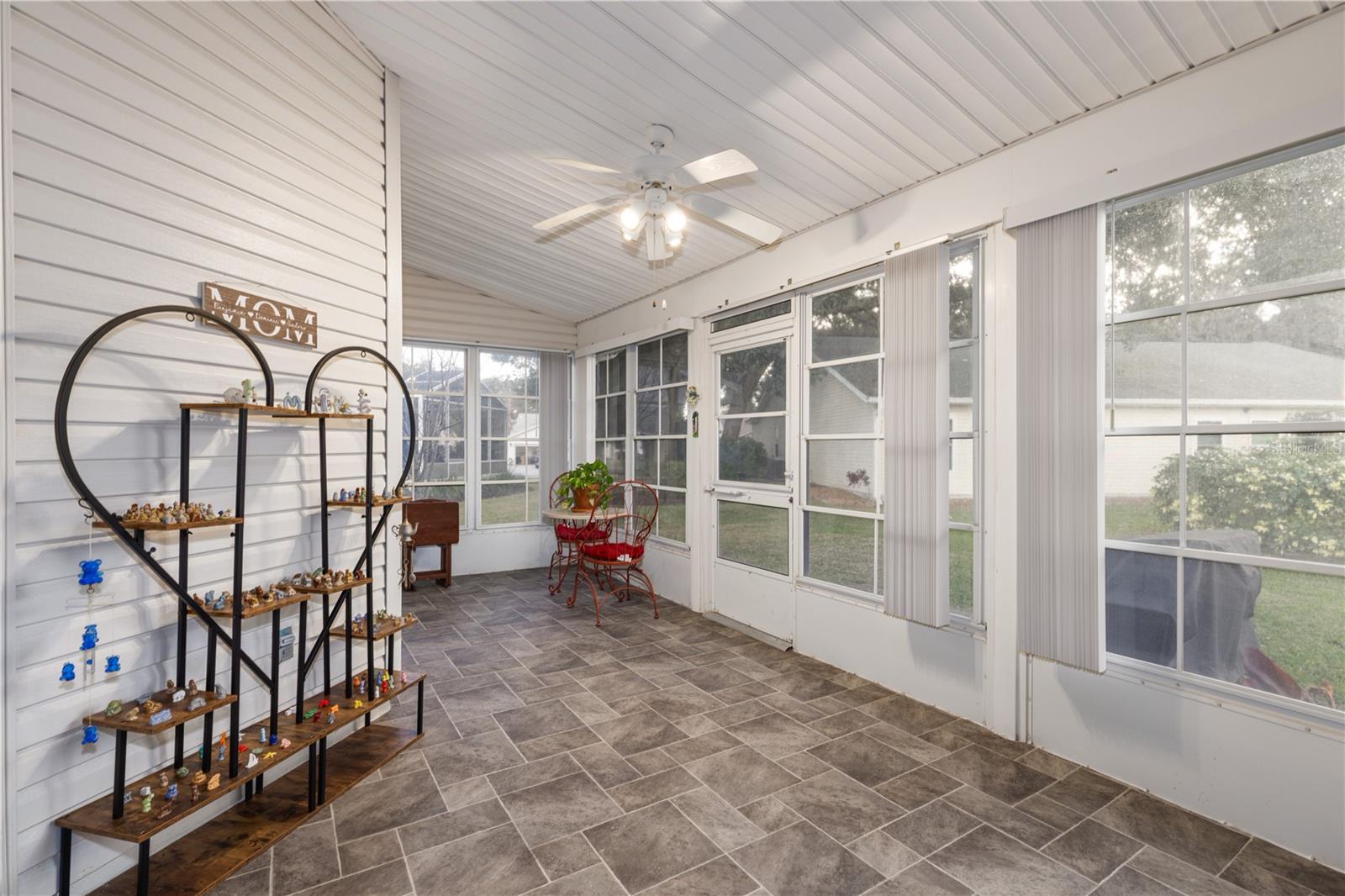 Welcome home to The Plantation at Leesburg, where comfort, style, and an active lifestyle come together. This beautifully updated 3-bedroom, 2-bath home welcomes you with high ceilings, fresh neutral paint throughout, and updated lighting, creating a bright and inviting atmosphere from the moment you step inside. Attractive laminate flooring flows through the main living areas, complemented by ceramic tile in the wet spaces. Recent improvements add tremendous value and peace of mind, including Low-E Thermopane windows throughout (2023), a newer roof (2017), HVAC replaced (2021), water heater (2021). Outside, you’ll appreciate the freshly painted front door and garage door, a new front storm door, a water softener, updated landscaping with a fully functioning irrigation system and a clear-sealed concrete driveway to maintain its clean appearance. The spacious kitchen is designed for both everyday living and entertaining, featuring newly painted white cabinetry with updated hardware, quartz countertops, and stainless-steel appliances, including a newer refrigerator with ice maker (2024). Open to the dining area, this space is perfect for gathering with family and friends. Sliding doors lead to the Florida room, where you can open the windows and enjoy the breeze and Florida Sunshine, and unwind with your morning coffee or a glass of wine in the evenings. The primary suite is a peaceful retreat, offering a generous walk-in closet and a private ensuite bath with a freshly painted white vanity and new hardware. Every room in the home is equipped with a ceiling fan with light. The Plantation at Leesburg is a guard-gated 55+ community offering 24-hour security and exceptional amenities, including three clubhouses, three community pools, an on-site restaurant, and two 18-hole golf courses, along with tennis, fishing, clubs, and classes for every interest. An added bonus—the HOA includes boat and RV storage, a rare find. Centrally located in Lake County close to shopping, restaurants, medical facilities and major highways. Also, conveniently located near public boat ramps to The Famous Harris Chain of Lakes for those that love boating and fishing. Call today for a Private Tour! All information recorded in the MLS is intended to be accurate however, it should be independently verified by buyer and their agent.