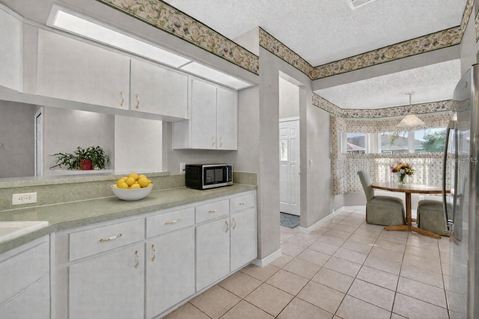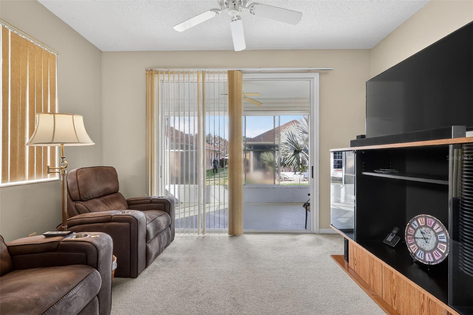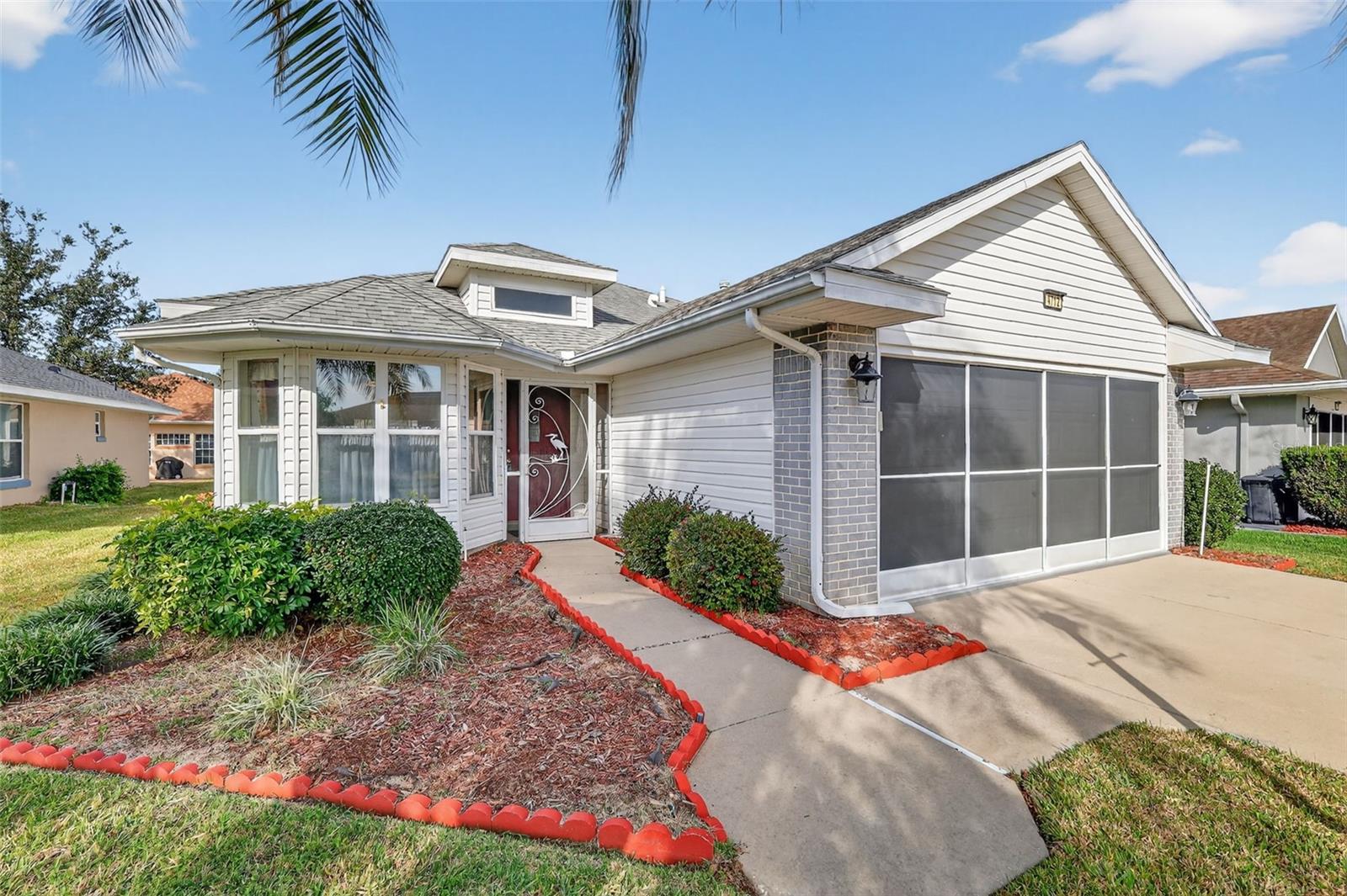 One or more photo(s) has been virtually staged. Welcome to this charming Expanded Opal model in the desirable 55+ golf community of Royal Highlands! This lovely 3-bedroom, 2-bath home offers 1,615 sq ft of comfortable living with an inviting brick and vinyl exterior and well-maintained landscaping. Step inside to tile floors that flow from the entry to the kitchen, featuring new stainless steel appliances, laminate counters, ample cabinetry, a breakfast bar, and a cozy nook framed by a beautiful bow window. The living and dining areas are carpeted and open through French doors into the Florida room, then out to a screened lanai with vinyl windows- perfect for relaxing or entertaining. The spacious primary suite is a true retreat featuring a walk-in closet, ceiling fan, and an ensuite bath with dual sinks, tile floors, and a walk-in shower. Two additional bedrooms offer carpet, ceiling fans, and built-in closets. The guest bathroom features dual sinks and a tub/shower combination. Additional features include a laundry room, a 2-car garage with a screen, and a conveying freezer. Roof 2017, HVAC 2014. and the seller is offering a NEW WATER HEATER OR CREDIT AT CLOSING. Enjoy resort-style living with two pools, a fitness center, courts, clubs, and easy access to the Turnpike, I-75, and MCO Airport! Schedule your private showing today and experience the best of Florida living!