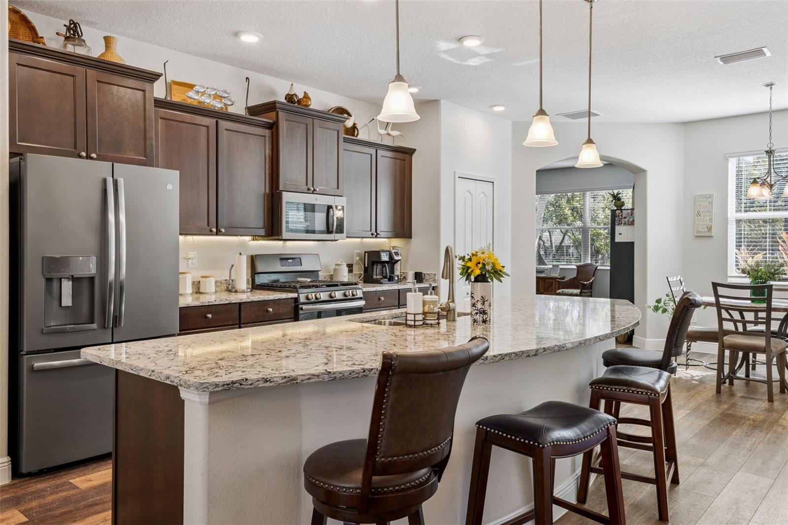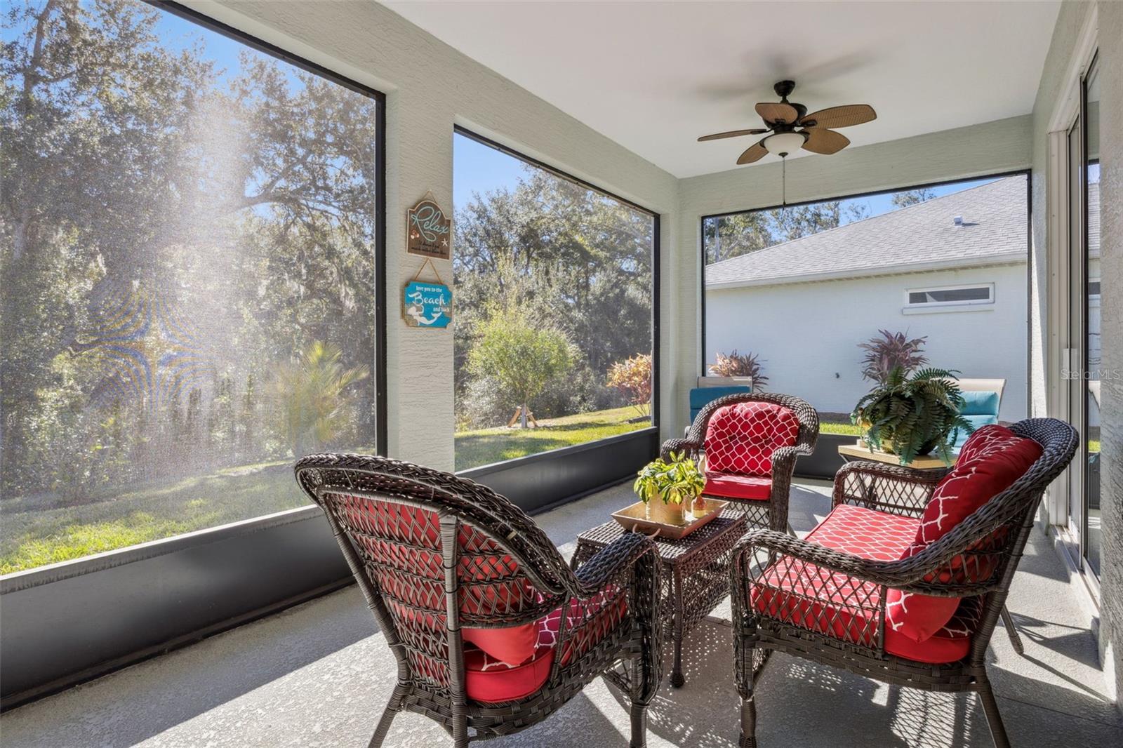 Welcome to one of Arlington Ridge’s most coveted floor plans, the elegant Vanda II. Offering a blend of comfort, efficiency and resort-style living. This beautifully designed home features three bedrooms and two full baths, with an open-concept layout that effortlessly connects the expansive kitchen and great room to the dining area and sunlit dinette. Perfect for both entertaining and everyday enjoyment. An impressive 18’ x 15’ family room extends from the great room providing endless possibilities as a private media lounge, executive home office or stylish retreat. The kitchen is appointed with stainless steel appliances and stone counters with a large central island while the interior laundry room with utility sink adds everyday convenience. Thoughtfully constructed for energy efficiency, the home offers exceptionally low utility costs, featuring spray foam insulation in exterior block walls, radiant barrier roofing, R-38 attic insulation, and double-pane Low-E argon gas windows ensuring year-round comfort and peace of mind. Step onto the 22’ x 10’ screened lanai, a serene outdoor sanctuary ideal for morning coffee, evening relaxation, or simply enjoying Florida’s gentle breezes in privacy. There is also a separate golf cart garage to park your golf cart or it could also be used for additional storage. Set within the award-winning Arlington Ridge Golf Community, highly acclaimed by Where to Retire magazine. Residents enjoy access to an exceptional suite of amenities, including: an 18-hole championship golf course, full-service restaurant and pub, state-of-the-art fitness center, resort-style swimming pool and on-site movie theater. Ideally located in South Leesburg, this residence is moments from grocery shopping, medical facilities, and restaurants. Enjoy the convenience of being less than one hour from Orlando’s international airport and world-renowned attractions, with both the Atlantic and Gulf Coast beaches reachable in under two hours. The low HOA fee includes grass cutting, cable TV and high speed internet. This distinguished home offers the perfect balance of elegance, efficiency, and leisure in one of Central Florida’s most desirable active adult communities. An exceptional opportunity to elevate your Florida lifestyle—schedule your private showing today