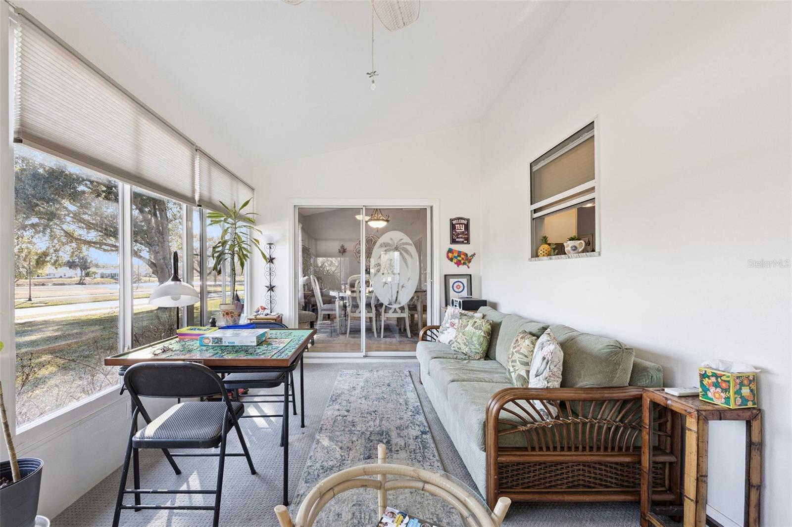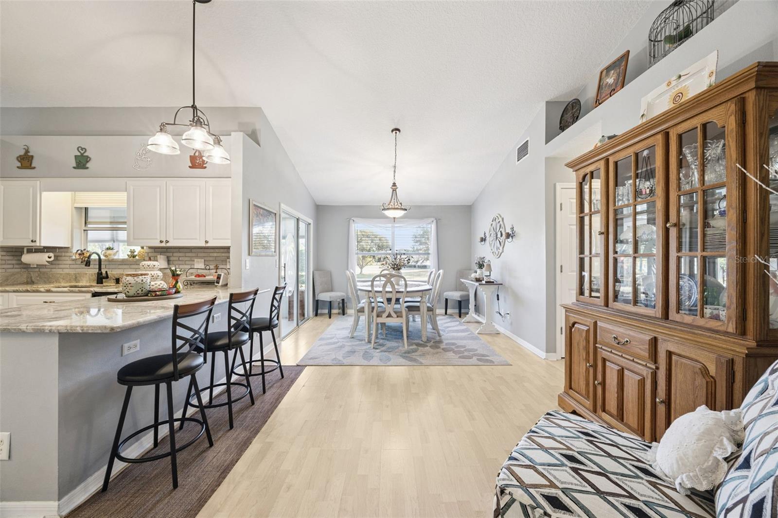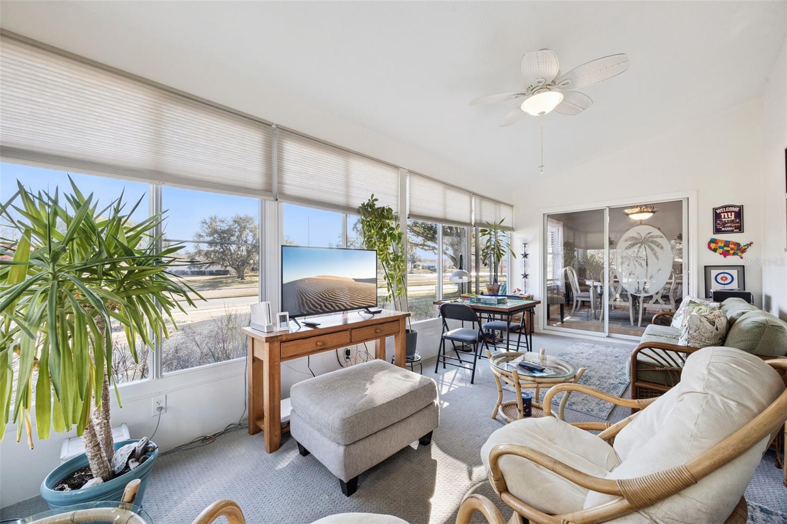Well-maintained 2-bedroom, 2 full bath, single family home with 2 car garage, move-in ready! RENOVATED kitchen boasts stunning MARBLE countertops, refaced cabinets, glass tile backsplash, breakfast bar, natural gas range, new refrigerator (2026) | Luxury Vinyl Plank flooring throughout except for the guest bedroom | Knock-down ceiling texture | wood-look blinds | Anderson windows in guest bedroom and living room | Interior laundry room complete with washer and dryer included | Master Retreat with ensuite bath and tile flooring set on a diagonal, CORIAN countertop, double sink, shower, no tub and private commode | ROOF 2020 | HVAC 2011 | Water heater 2012 | Golf cart may convey | Four-Season Sunroom with MINI-SPLIT | Some furniture may be sold separately from the home sale. Highland Lakes is a gated 55+ community situated in Central Florida just south of Leesburg & offers residents the following amenities: Recreational Clubhouse with two swimming pools; indoor (heated) & outdoor, a softball field complete with concession stand, an indoor arena with a stage for comm. events, complete kitchen, billiard/ping pong rm., 4 tennis courts (2 courts are lighted), 1 indoor tennis court, 8 lighted shuffle board courts, bocce ball courts, 2 outdoor and 4 indoor pickleball courts, 7 horseshoe pits, covered picnic pavilion with picnic tables & grills to barbeque, library, meeting/card room, exercise room/fitness, craft room, golf driving range, RV/boat storage (included in HOA) & has 260 spaces on a secured lot (fenced & lockable), a Craftsmen building/woodworking shop (homeowners can join the club for only $12 annually and use any/all tools available), there's also a Nature Trail within the community & seven lakes scattered throughout Highland Lakes; 4 are used by residents for catch & release fishing! Don't wait............. call now to schedule your private tour!