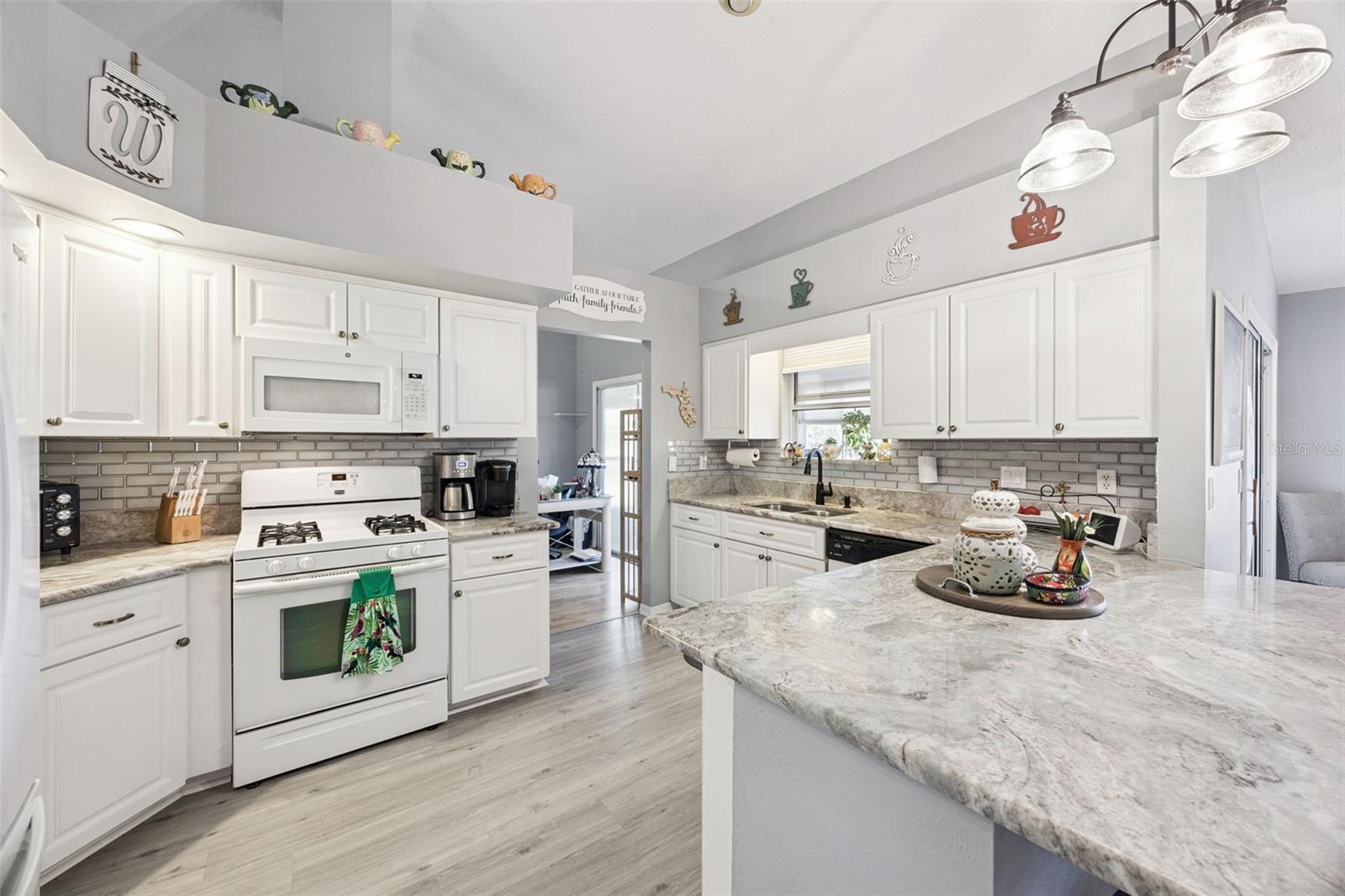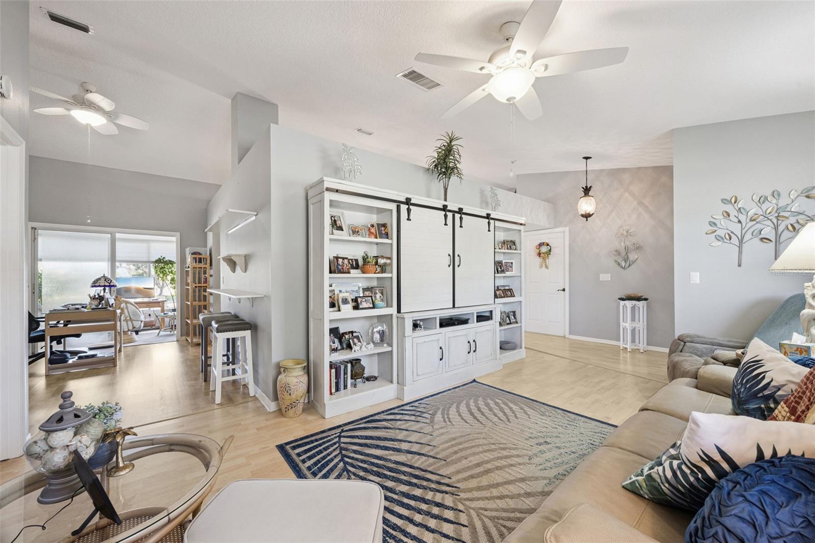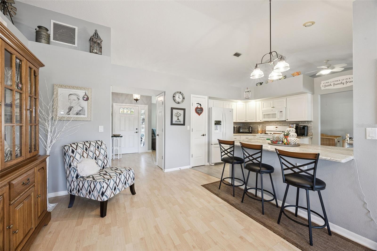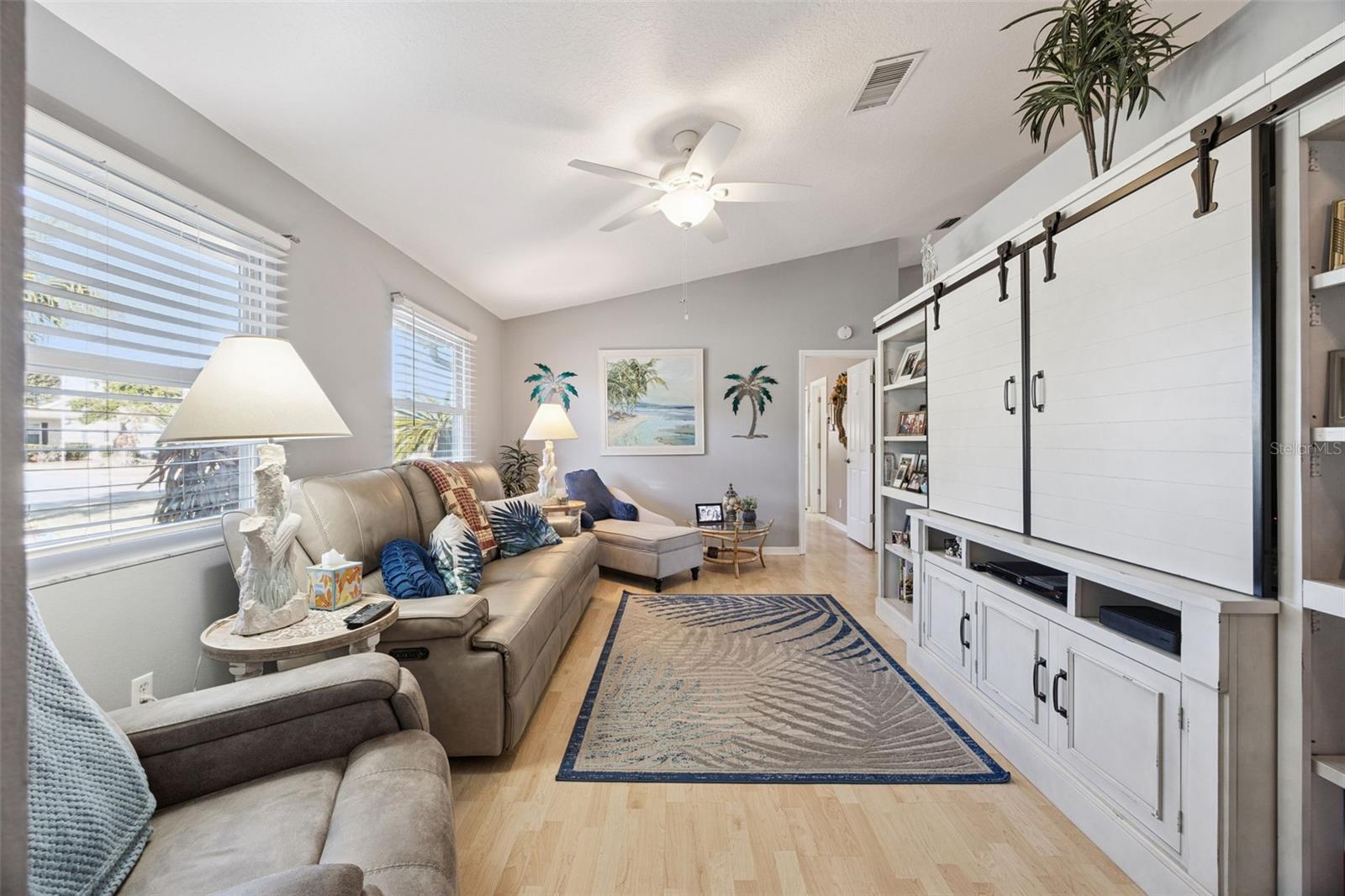 Well-maintained 2-bedroom, 2 full bath, single family home with 2 car garage, move-in ready! RENOVATED kitchen boasts stunning MARBLE countertops, refaced cabinets, glass tile backsplash, breakfast bar, natural gas range, new refrigerator (2026) | Luxury Vinyl Plank flooring throughout except for the guest bedroom | Knock-down ceiling texture | wood-look blinds | Anderson windows in guest bedroom and living room | Interior laundry room complete with washer and dryer included | Master Retreat with ensuite bath and tile flooring set on a diagonal, CORIAN countertop, double sink, shower, no tub and private commode | ROOF 2020 | HVAC 2011 | Water heater 2012 | Golf cart may convey | Four-Season Sunroom with MINI-SPLIT | Some furniture may be sold separately from the home sale. Highland Lakes is a gated 55+ community situated in Central Florida just south of Leesburg & offers residents the following amenities: Recreational Clubhouse with two swimming pools; indoor (heated) & outdoor, a softball field complete with concession stand, an indoor arena with a stage for comm. events, complete kitchen, billiard/ping pong rm., 4 tennis courts (2 courts are lighted), 1 indoor tennis court, 8 lighted shuffle board courts, bocce ball courts, 2 outdoor and 4 indoor pickleball courts, 7 horseshoe pits, covered picnic pavilion with picnic tables & grills to barbeque, library, meeting/card room, exercise room/fitness, craft room, golf driving range, RV/boat storage (included in HOA) & has 260 spaces on a secured lot (fenced & lockable), a Craftsmen building/woodworking shop (homeowners can join the club for only $12 annually and use any/all tools available), there's also a Nature Trail within the community & seven lakes scattered throughout Highland Lakes; 4 are used by residents for catch & release fishing! Don't wait............. call now to schedule your private tour!