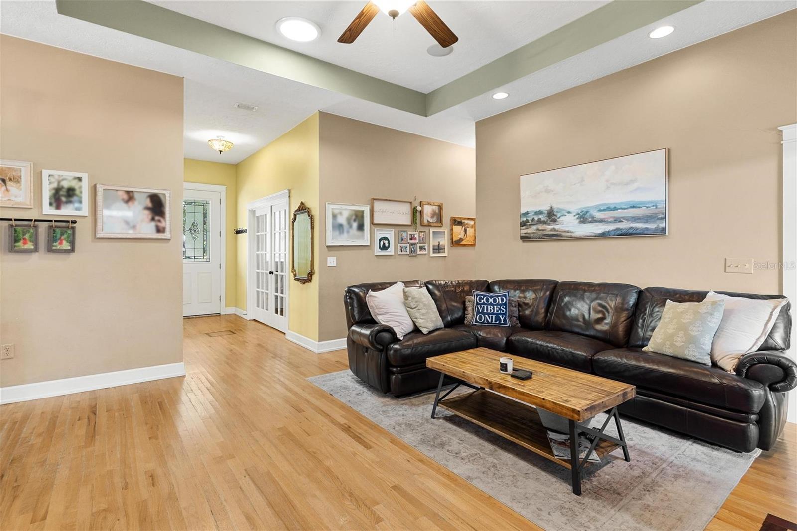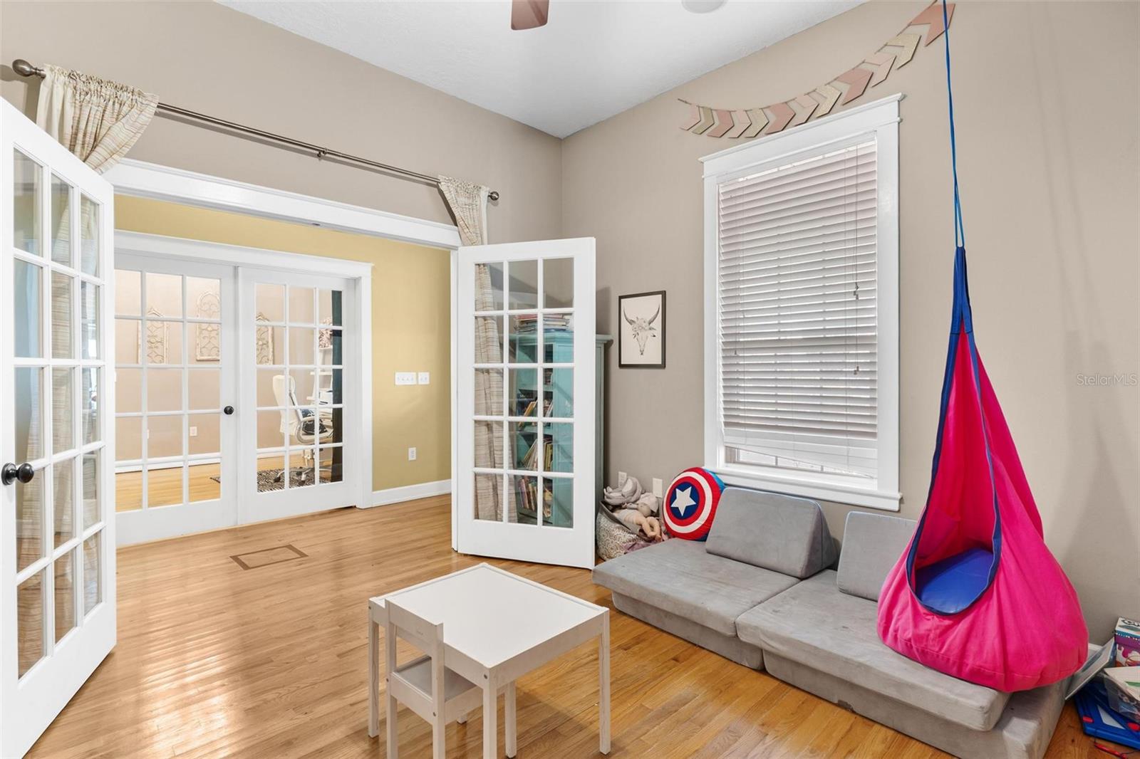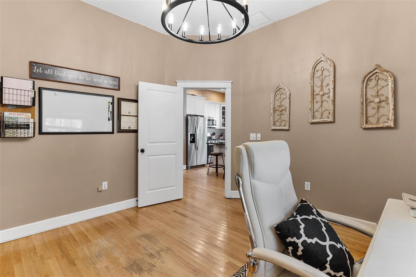 Charming country living with city conveniences! Welcome home to the perfect blend of peaceful country charm and modern day conveniences! This beautifully maintained three bedroom two and a half bath residence offers space, warmth and versatility. Bring your rocking chairs to enjoy the cool breeze while you sip your coffee on your new front porch! As you step inside, you are immediately greeted by rich wood floors throughout which creates a timeless and welcoming feel. Cozy up with a blanket on your couch to watch movies in your large living room with built in entertainment center which can fit an oversized big screen TV and flows effortlessly right into the kitchen! The heart of the home is in the inviting kitchen with a massive center island which provides plenty of room for meal prep, casual dining and entertaining plus additional dining area that can accommodate a large dining table. The inside laundry room adds everyday functionality being right off of the garage area. The thoughtfully designed floor plan includes a private office which is perfect for remote work or quiet studying plus an additional play room with french doors. The oversized primary suite with double closets and walk in shower overlooks the backyard. Large bedrooms #2 and #3 provide ample room. The clawfoot tub with shower in the guest bathroom is definitely an eye catcher! Outside you can enjoy your own large fenced in backyard which is ideal for pets and play! If you have dreamed of weekends barbecues, a firepit or a pool, there is room to make it your own here! An additional highlight of this charming home is the durable metal roof! NO HOA! If you are looking for a setting that offers a serene country atmosphere yet remains close to shopping, schools and restaurants then look no further! Come picture your future here!