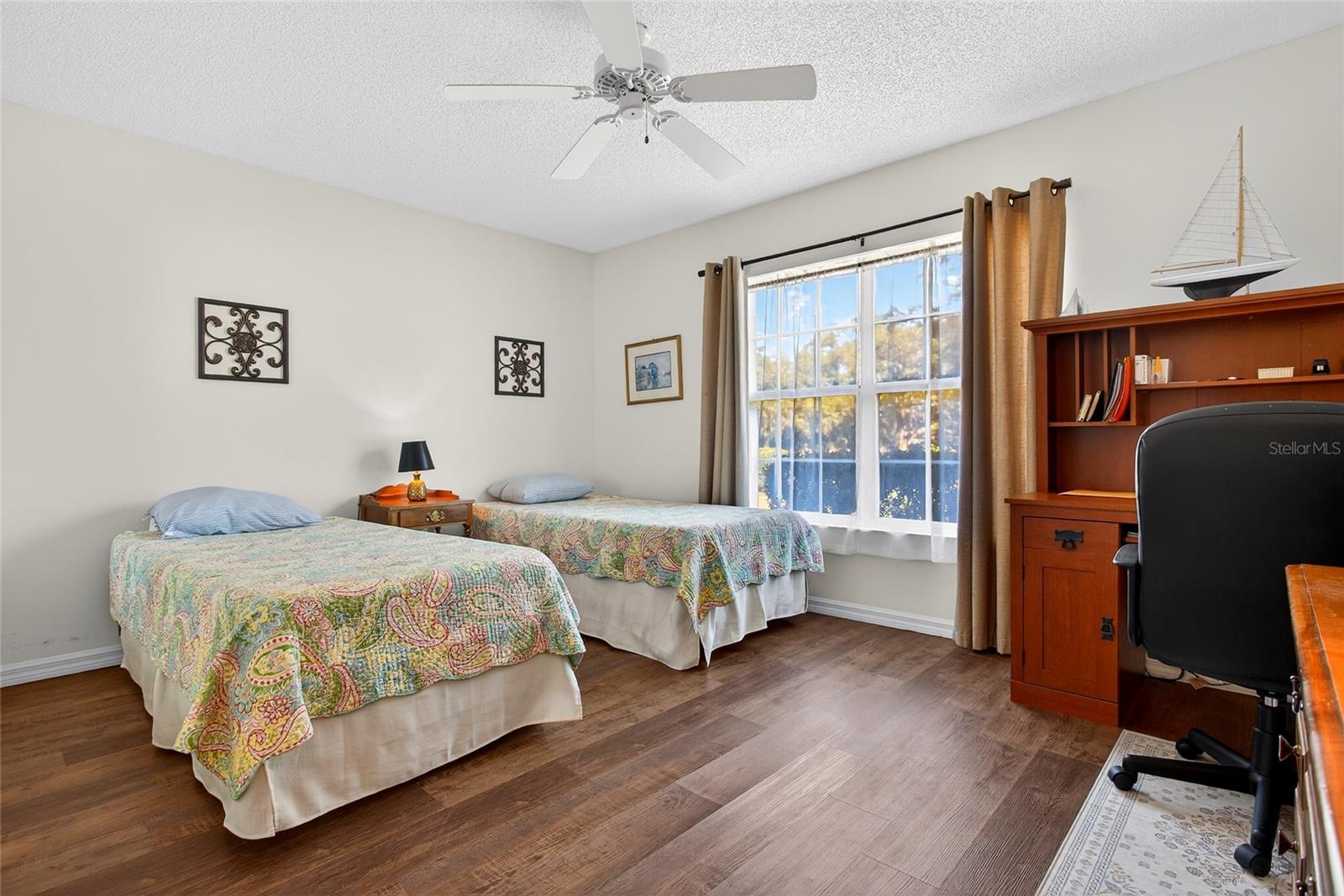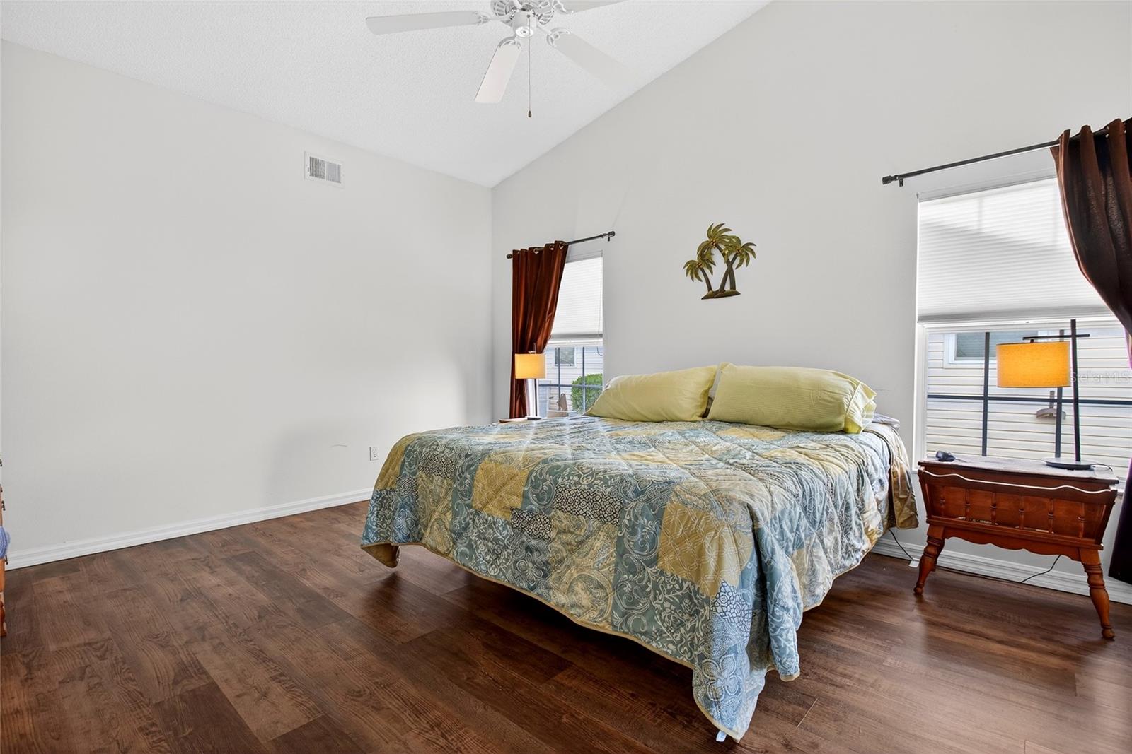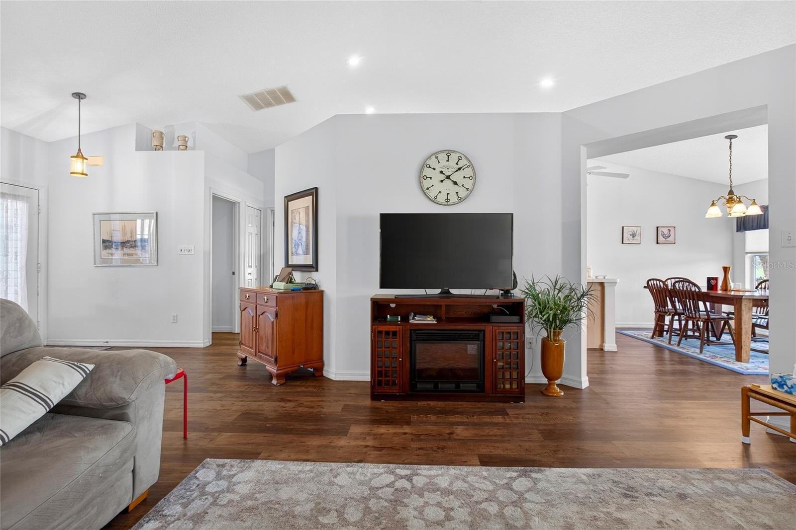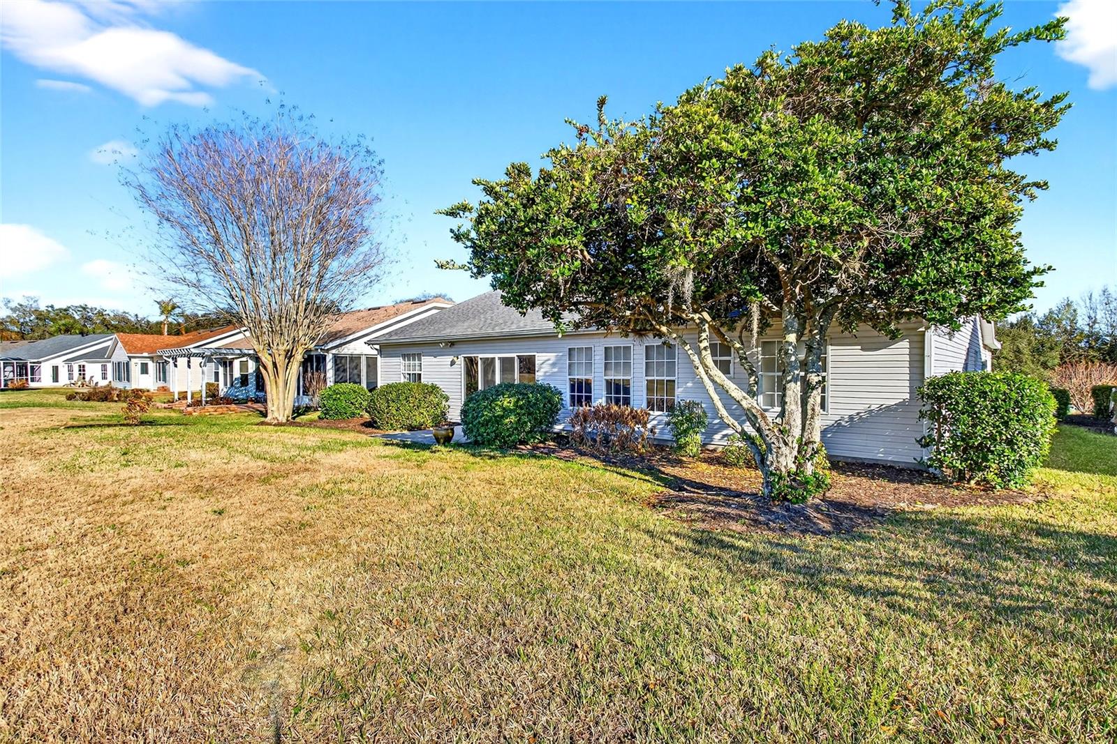 This immaculate 3-bedroom, 2-bathroom home sits right on the 18th green of Otters Creek Golf Course in Plantation at Leesburg. Its split floor plan ensures privacy for both owners and guests, while the spacious open living and dining area, highlighted by a cathedral ceiling, creates a warm and inviting atmosphere. There's also a Florida room offering beautiful golf course views and easy access to the back patio through sliding glass doors. The layout provides a welcoming spot for gatherings with friends and family. Laminate flooring throughout except the bathrooms and indoor laundry. The kitchen features plentiful cabinets, a pantry, a new stainless-steel stove and refrigerator, and a large breakfast area nearby. The primary suite includes his and hers walk-in closets, dual vanities, a walk-in shower, and a garden tub. Combined with the extensive amenities available at Plantation at Leesburg, this home represents a fantastic opportunity that is sure to go quickly. Schedule a viewing today to experience this charming property firsthand. This 55+ gated community has amenities galore with 36 holes of golf, 3 recreation centers and pools, a softball field, tennis courts, numerous clubs and activities and a restaurant and pub. This home comes with a 13 MONTH HOME WARRANTY. The roof is 2016 and the A/C is 2021.