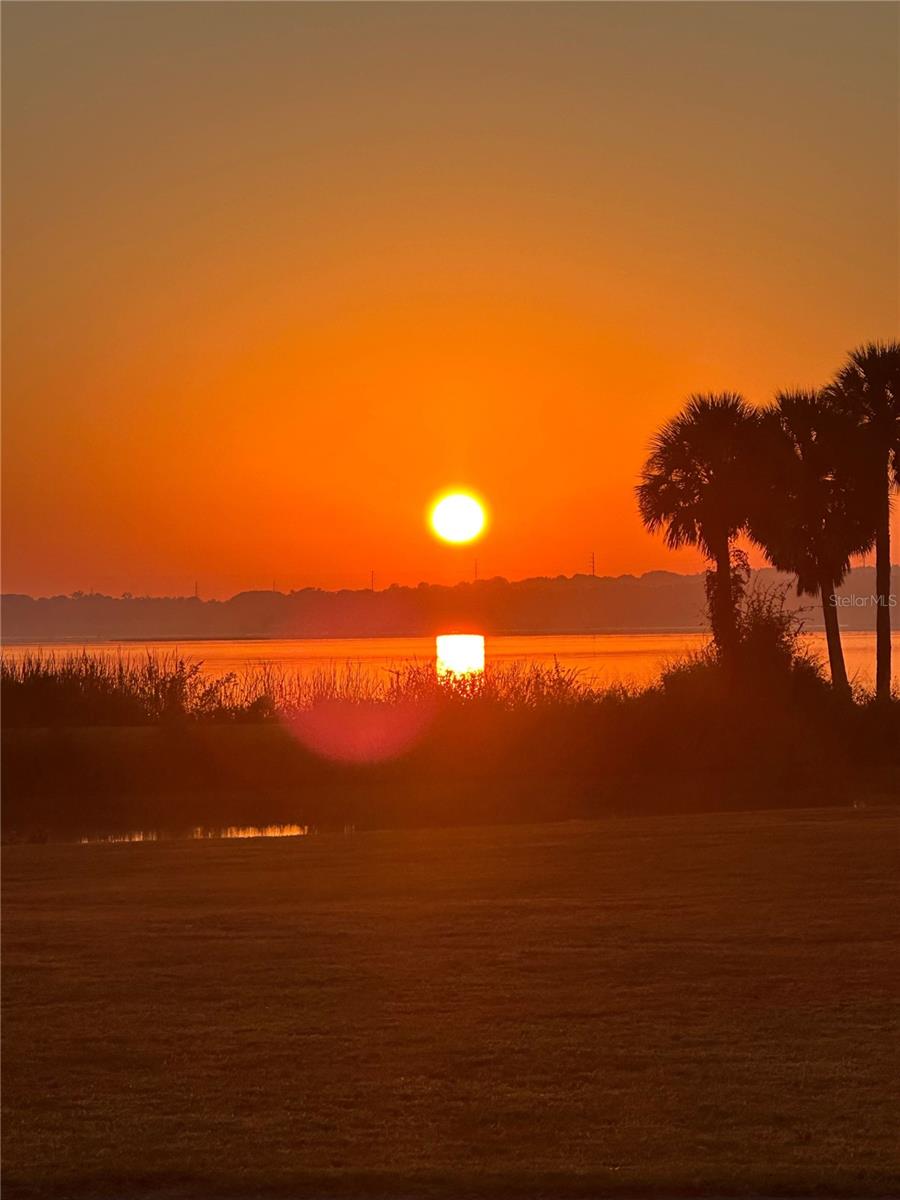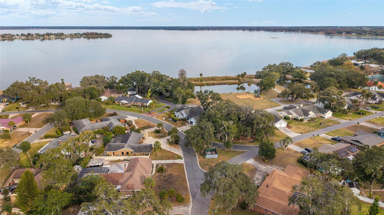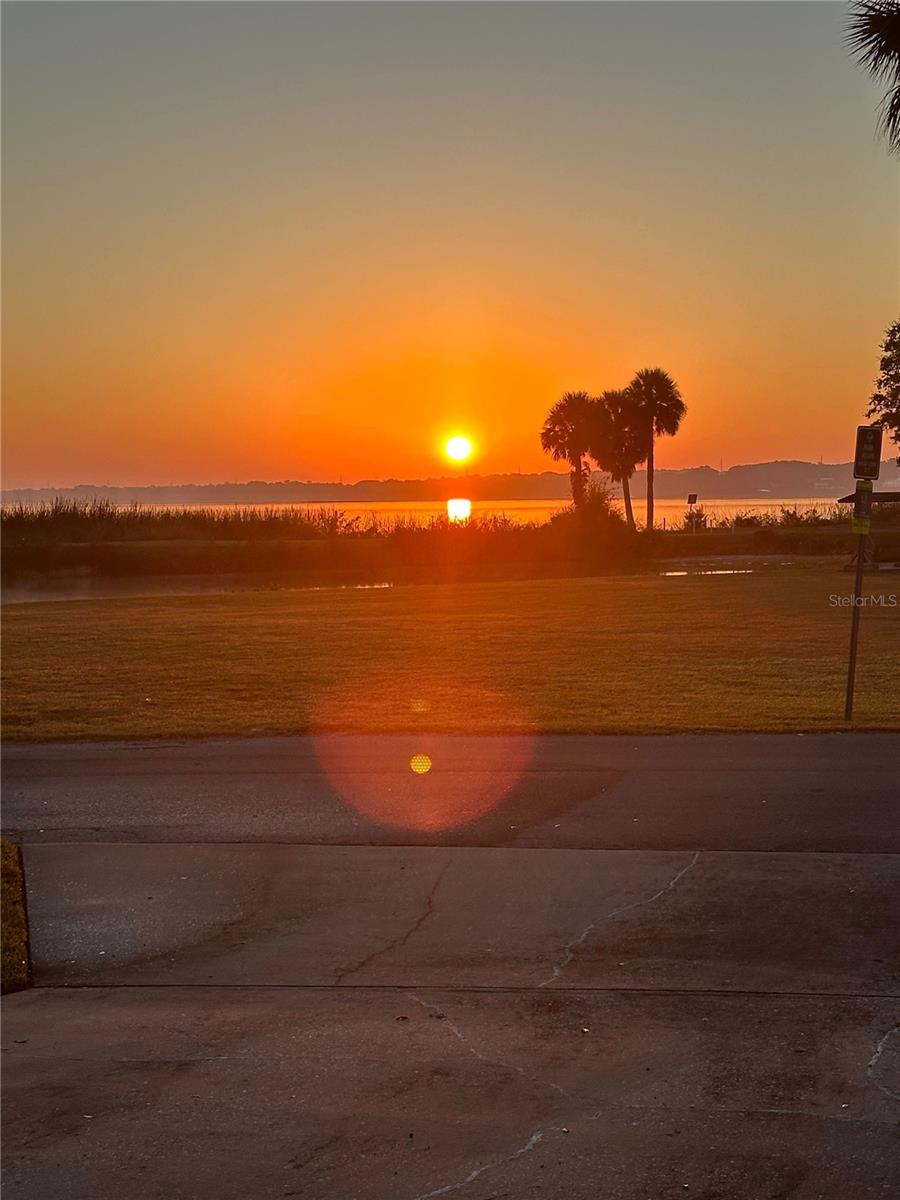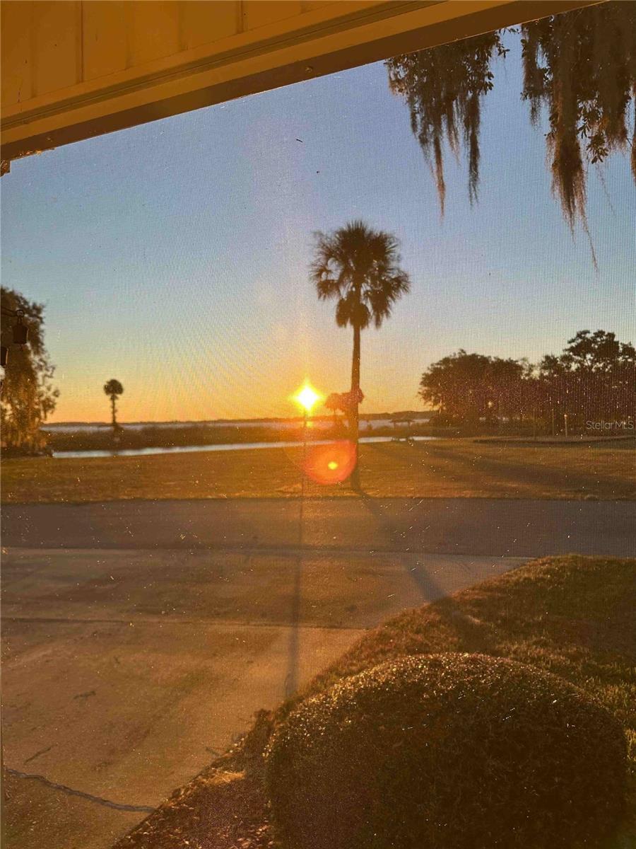 Wake up every morning to breathtaking views and sunrises over Lake Griffin from your screened front porch and from many rooms throughout the home. This move-in ready residence offers the perfect blend of comfort, style, and low-maintenance living. The driveway leads you to this unique single-family duplex-style home with the rare bonus of an oversized two-car garage with laundry area. Inside, the home feels light and open with a cathedral ceiling great room featuring a gas fireplace with quartz surround, perfect for cozy evenings. The updated kitchen is designed for both everyday living and entertaining, featuring quartz counter tops, shaker-style cabinetry, stainless steel appliances, a WiFi-enabled range and refrigerator, in-cabinet microwave drawer, and abundant storage. LED recessed and under-cabinet lighting brighten the space beautifully. The private master suite features a vaulted ceiling, oversized walk-in closet, and a fully updated spa-style bath with dual walk-in showers, double sinks, and granite countertops. The split-bedroom floor plan provides privacy, with two additional spacious bedrooms filled with natural light and sharing a guest bath with double vanity and granite counters. Simply relax on your porch, enjoy the panoramic lake views, and let someone else handle the maintenance. Low-stress living, incredible views, and a beautifully updated home — all in one perfect package.