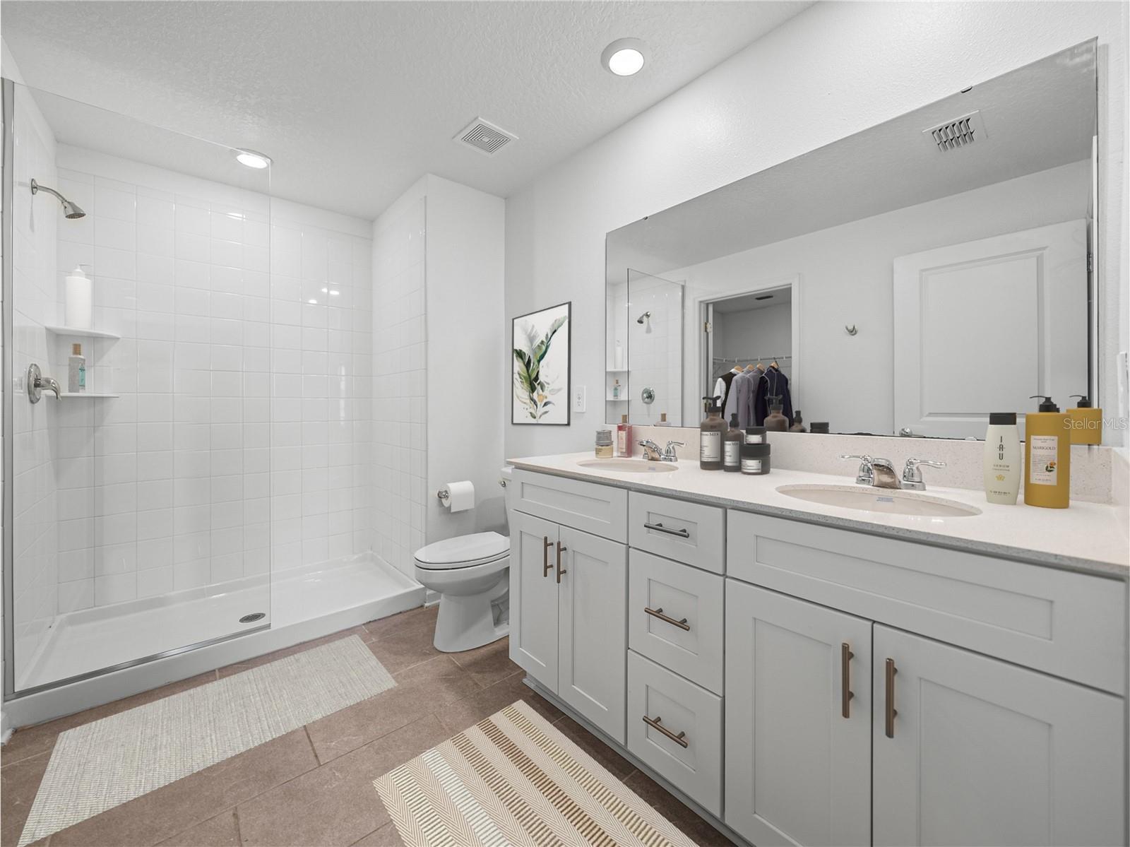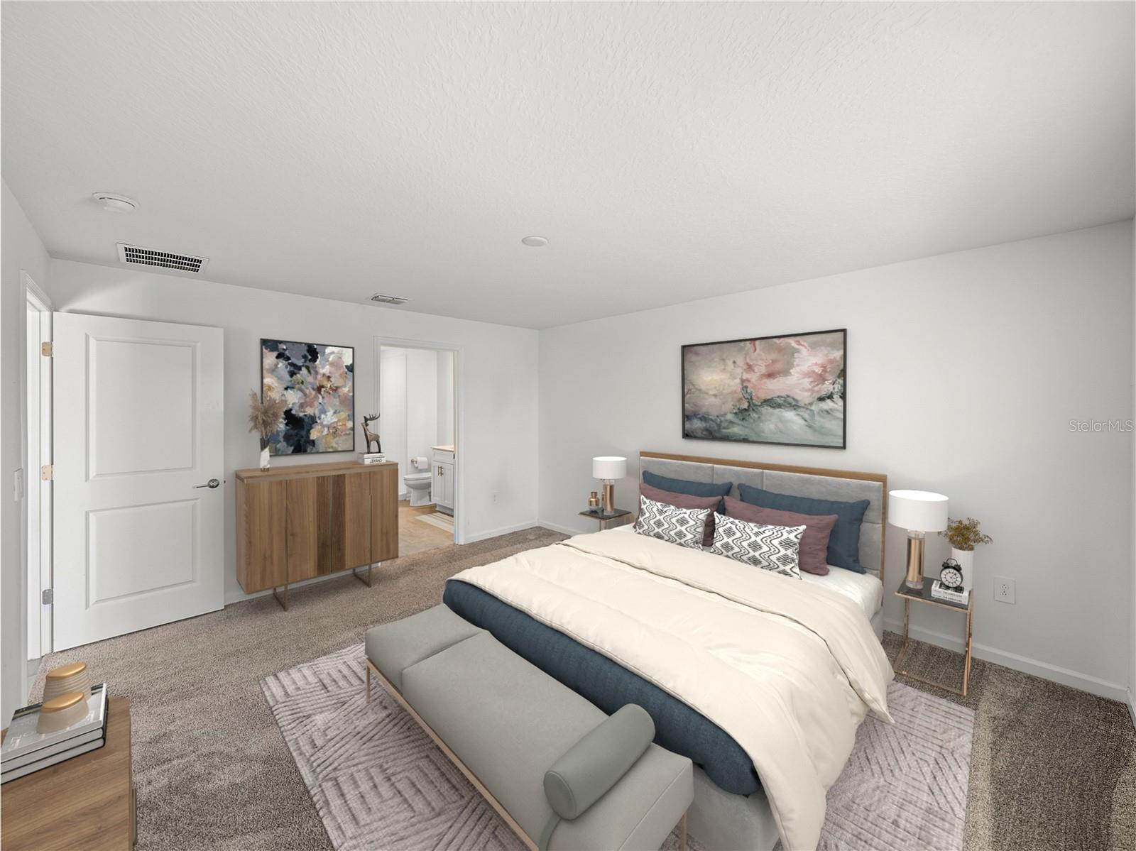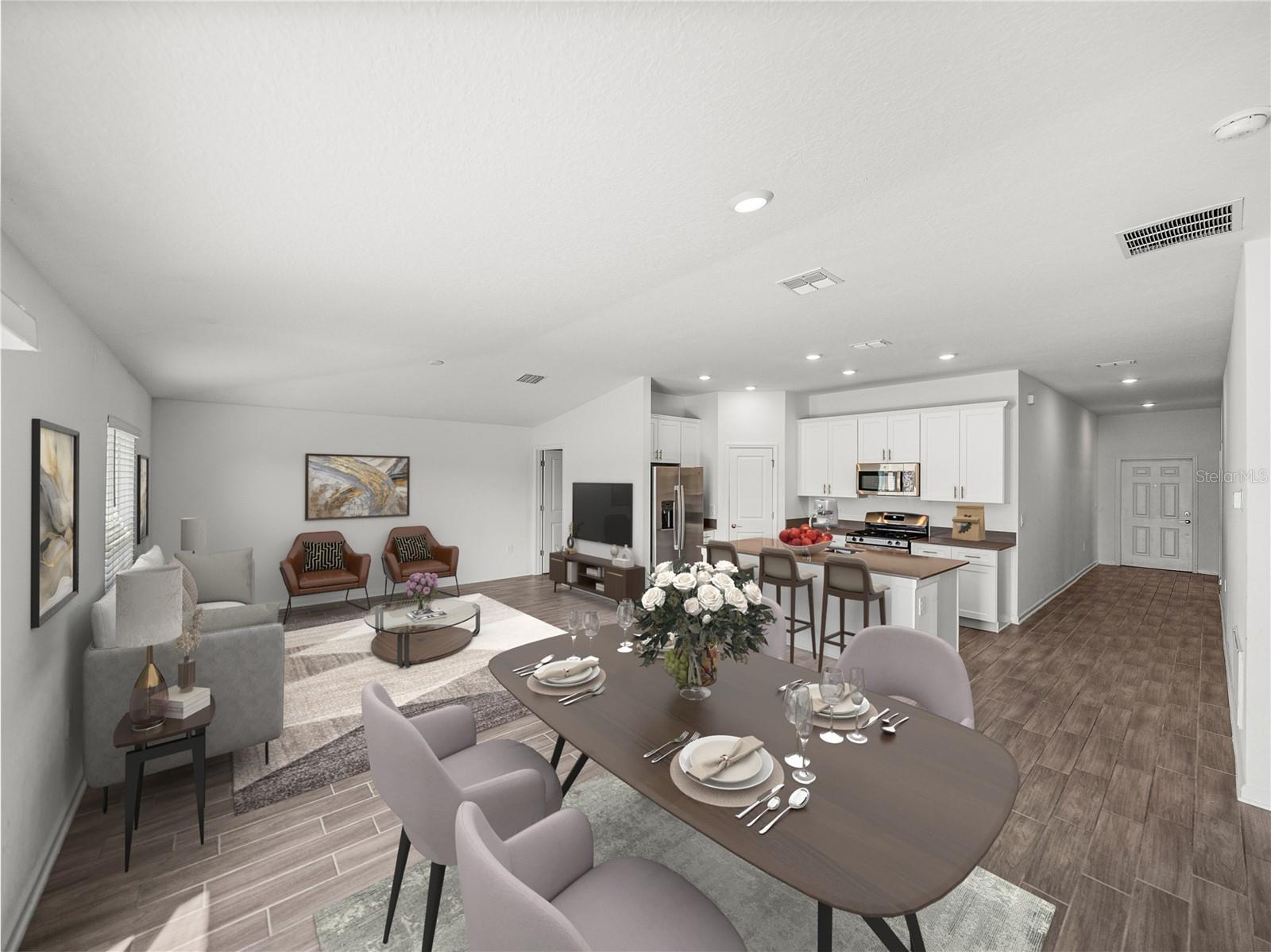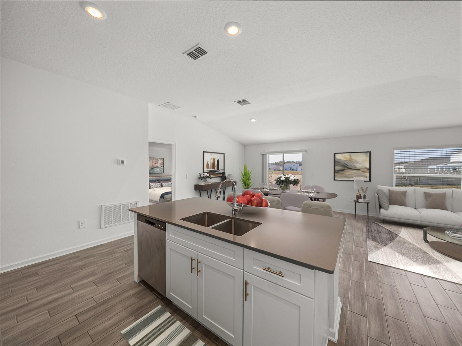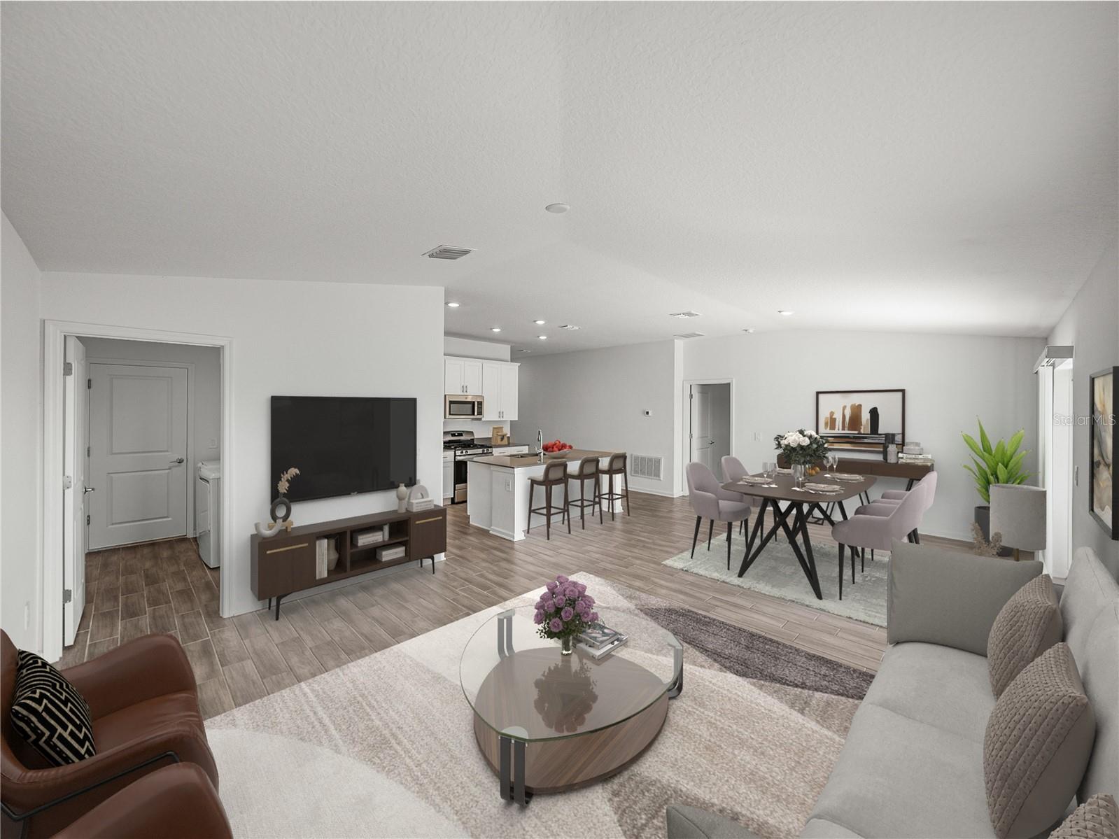 One or more photo(s) has been virtually staged. This beautiful home offers 3 bedrooms and 2 bathrooms with an open floor plan designed for comfort and convenience. The heart of the home features a spacious kitchen island overlooking the family room, perfect for entertaining. The kitchen boasts ample cabinet space, sleek quartz countertops, and stainless steel appliances. The primary suite includes a fabulous walk-in closet and an en-suite bathroom for a private retreat. Carpeted bedrooms provide coziness, while tile flooring in common areas adds durability and style. The indoor laundry room is separate and spacious. Enjoy a spacious two-car garage for additional storage and ample parking. The home is located in a welcoming community with sidewalks, a playground, and plenty of outdoor space to play and relax. Situated near HWY 44 and HWY 441, you’ll have quick access to shopping, restaurants, entertainment, and top-rated schools. Plus, it’s close to UF Health Leesburg Hospital and Leesburg International Airport. Check out what this home has to offer today!