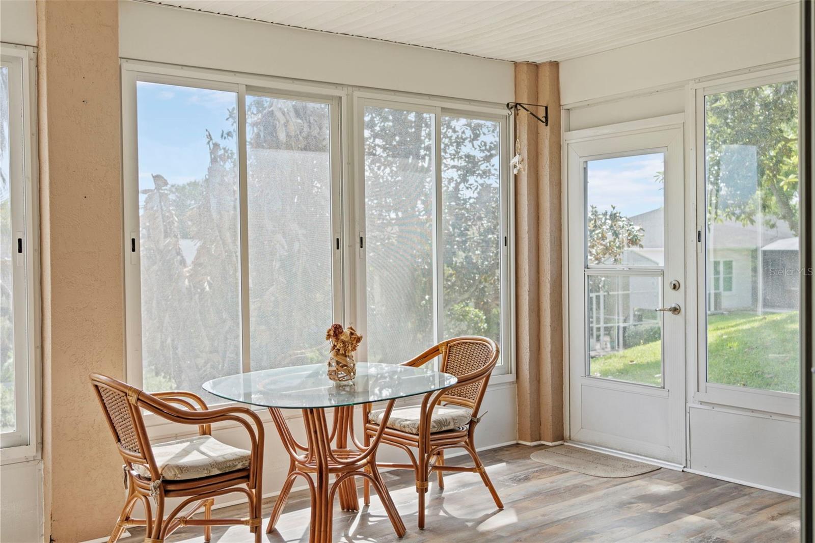 One or more photo(s) has been virtually staged. Cul-de-sac living meets golf cart lifestyle in The Plantation at Leesburg. This updated 3 bedroom, 2 bath home offers 1,790 sq ft and a rare 3-car garage with dedicated golf cart access. Situated on an elevated lot at the end of a dead-end street, enjoy added privacy with minimal traffic. Inside features luxury vinyl plank flooring throughout, granite countertops, and updated fixtures. The primary suite stands out with a fully renovated shower--dual heads, wall wand, porcelain tile, and recessed shelf. Additional highlights include indoor laundry and an enclosed lanai with wood-look LVP. Major updates include newer Carrier A/C, newer water heater, and new disposal with countertop push-button. Located in a guard-gated community with 3 pools, spa, 2 championship golf courses, 3 clubhouses, pickleball, tennis, archery, and a private restaurant for residents. Easy, elevated living, this one is worth seeing.