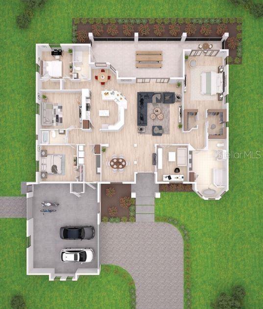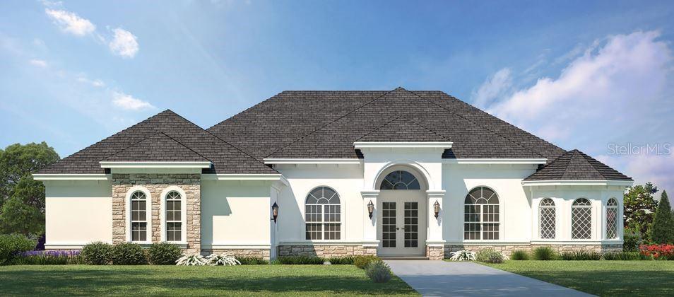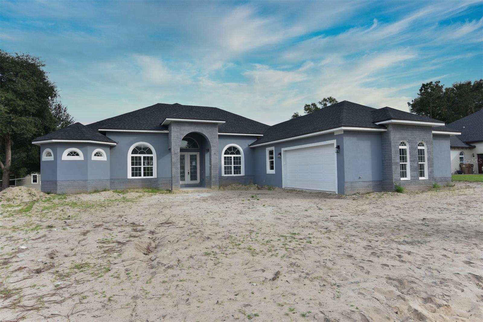 Under Construction. Welcome to Florida living! This brand-new, custom build, is tailor-made for indulging in all this area has to offer! Situated on a cul-de-sac, this single-story home was architecturally designed to maximize all the benefits of the land, including a grand sense of arrival from the paver driveway and backyard entertainment area. This elegant home, complemented with modern accents, vies for your attention as soon as you enter through the double doors and into the grand, central living area. The gorgeous floors and designer-selected hardware and fixtures leaves little left to desire. Ideal for gatherings and entertaining, enjoy your company in the beautiful kitchen with top-of-the-line appliances and quartz countertops, allowing ample room for cooking and generous seating at the bar. Florida’s climate facilitates countless hours spent outdoors, in either the covered or open outdoor living space. The master suite, featuring a grand bathroom with garden tub and separate shower, private water closet, complete with double master closets with built-in storage. Two additional bedrooms, are just across the central living area. Form meets function with the oversized laundry room, complete with additional storage for all your household needs. Solid block construction, energy efficient windows and doors, 2-car garage plus golf cart space with separate entrance complete the first-class construction and finishings of this home. Call today to schedule your private showing! Model home can be viewed, MLS O6090020.