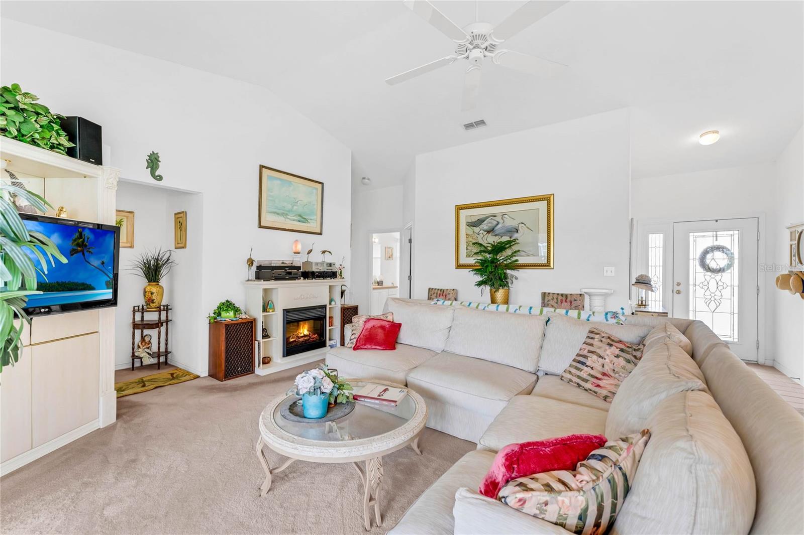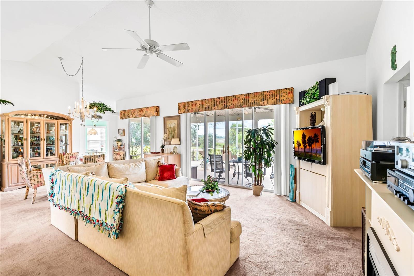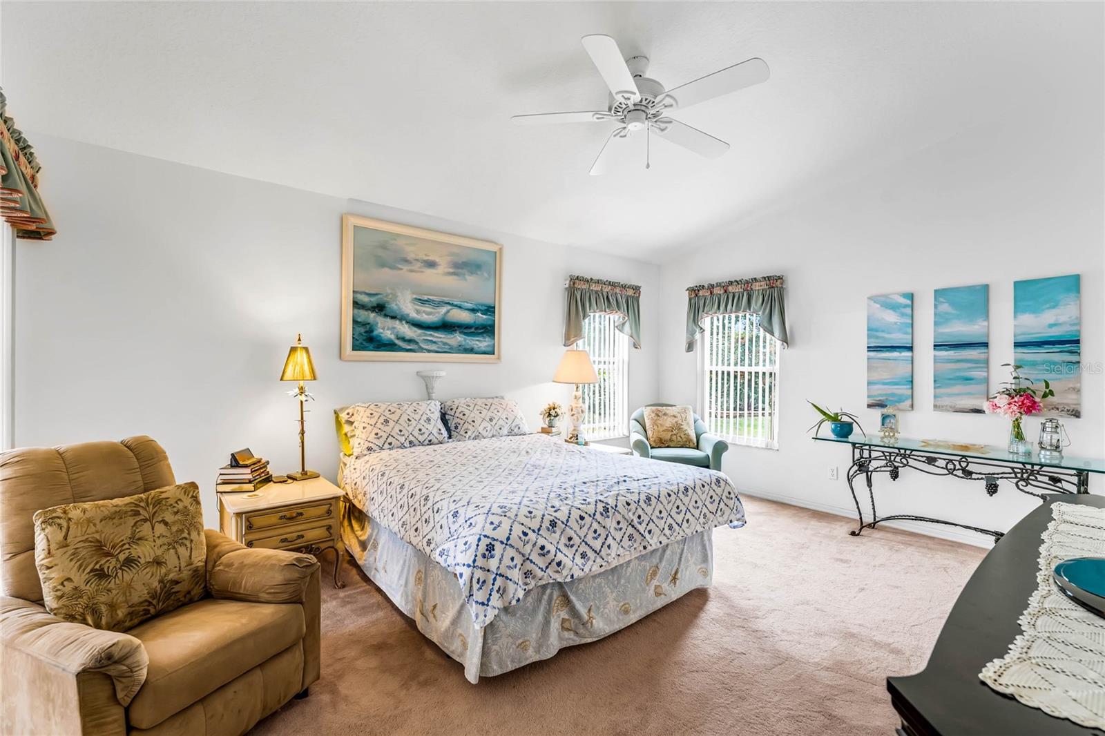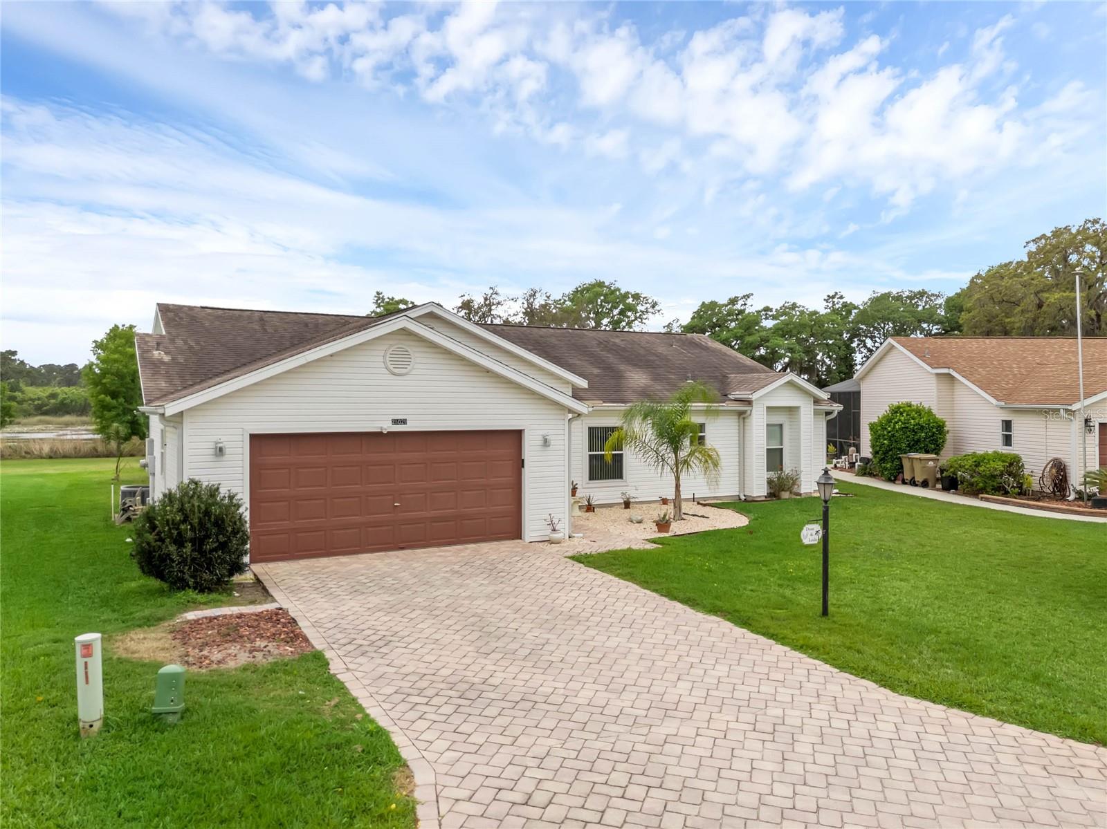 One or more photo(s) has been virtually staged. Welcome to your serene sanctuary at 25029 Riverwalk Dr, nestled in the heart of a vibrant 55+ gated community in Leesburg, FL. This beautifully maintained residence not only offers an idyllic view of the lake from the tranquility of your backyard but also opens the door to a lifestyle rich in comfort and convenience. Step inside to discover a spacious living area bathed in natural light, thanks to the high ceilings and carefully positioned windows. The open floor plan effortlessly marries the living spaces, making it perfect for hosting family and friends or simply enjoying a quiet, cozy evening at home. The kitchen, a heartwarming blend of functionality and charm, boasts ample counter and cabinet space, complemented by a quaint breakfast nook with a bay window that invites the morning sun. The home features three generously sized bedrooms, each creating an inviting space for guests or serving as versatile rooms to meet your changing needs—whether as a home office, craft room, or quiet retreat. The master bedroom is a true oasis, providing substantial space for a comfortable seating area or your very own dressing space, enhancing the ease of daily routines and leisure moments alike. Exterior maintenance worries are kept at bay with a water heater only two years old and an AC system updated within the last 4 to 5 years. Beyond the doorstep of this remarkable home, the community unfolds as a haven of active lifestyle opportunities. From tennis and pickle-ball courts to a refreshing pool, fitness center, clubhouse, and even golf—the amenities are designed to enrich your life with joy, relaxation, and social engagement. Location is key, and living here places you within easy reach of shops, dining options, recreation, and convenient transportation options, blending daily convenience with the tranquility of lakeside living. Embrace a life of comfort, and activity, where every day feels like a retreat.