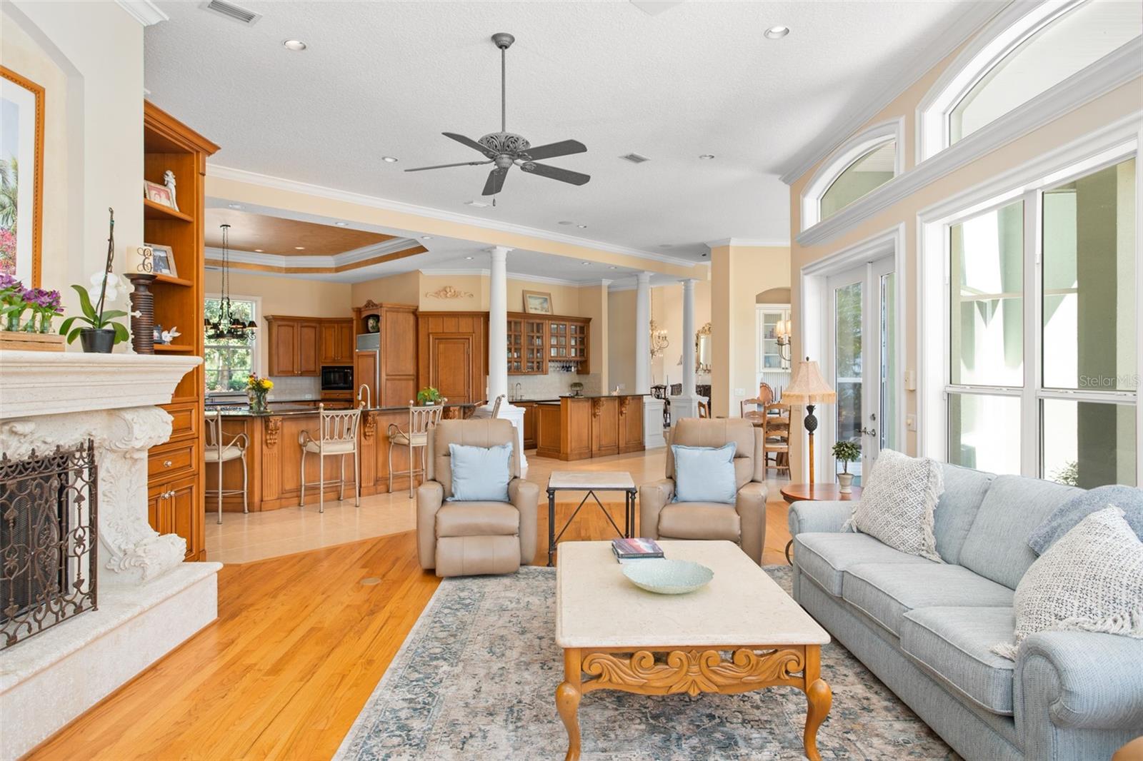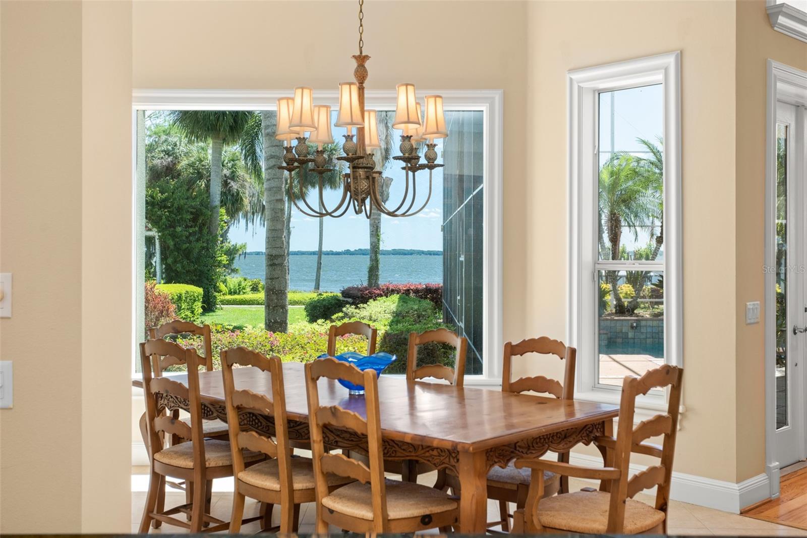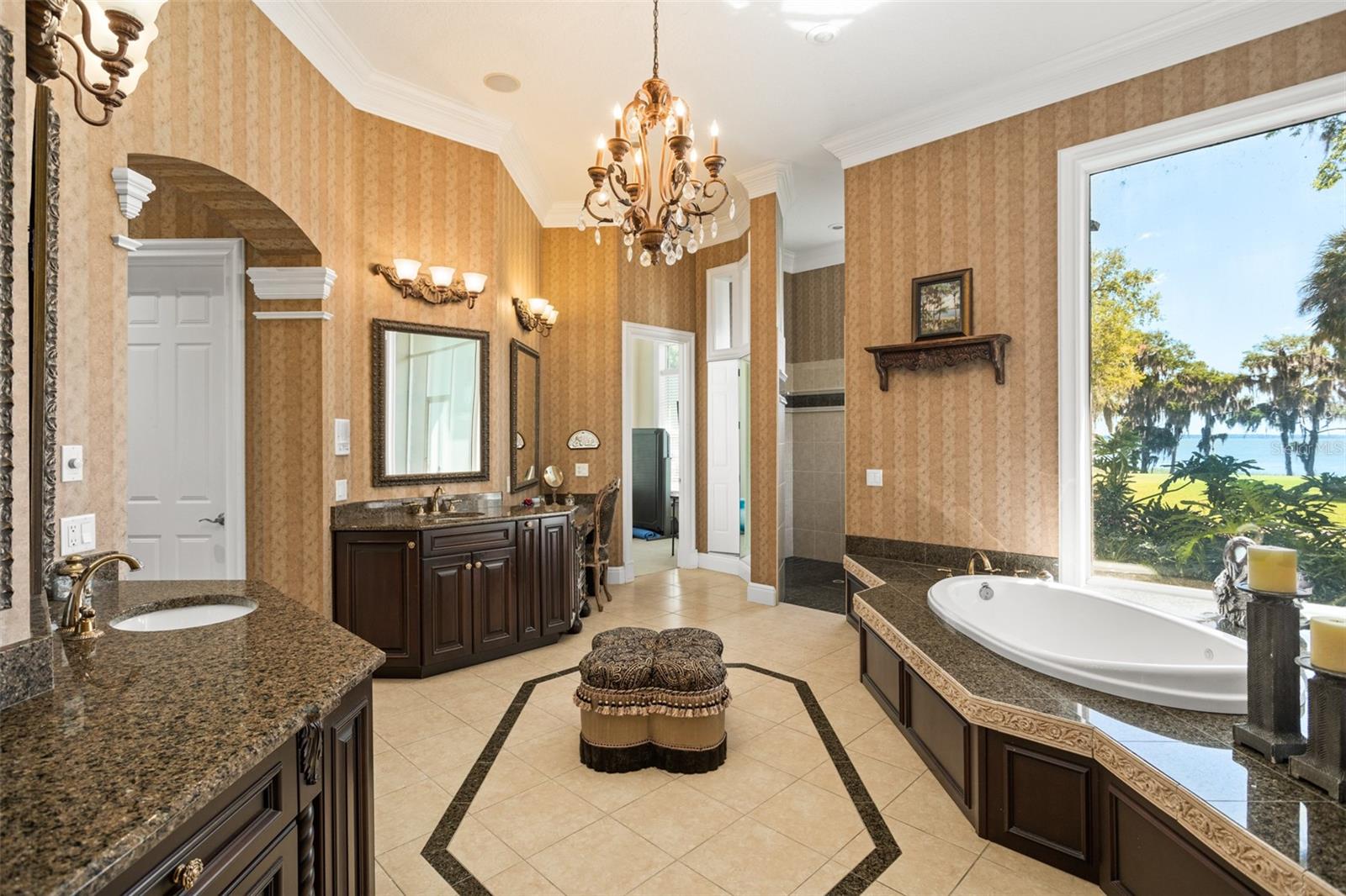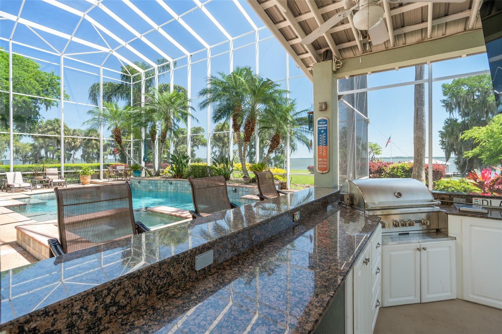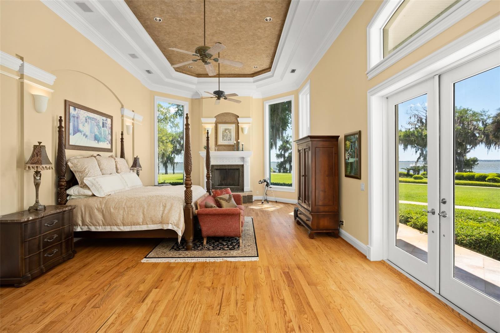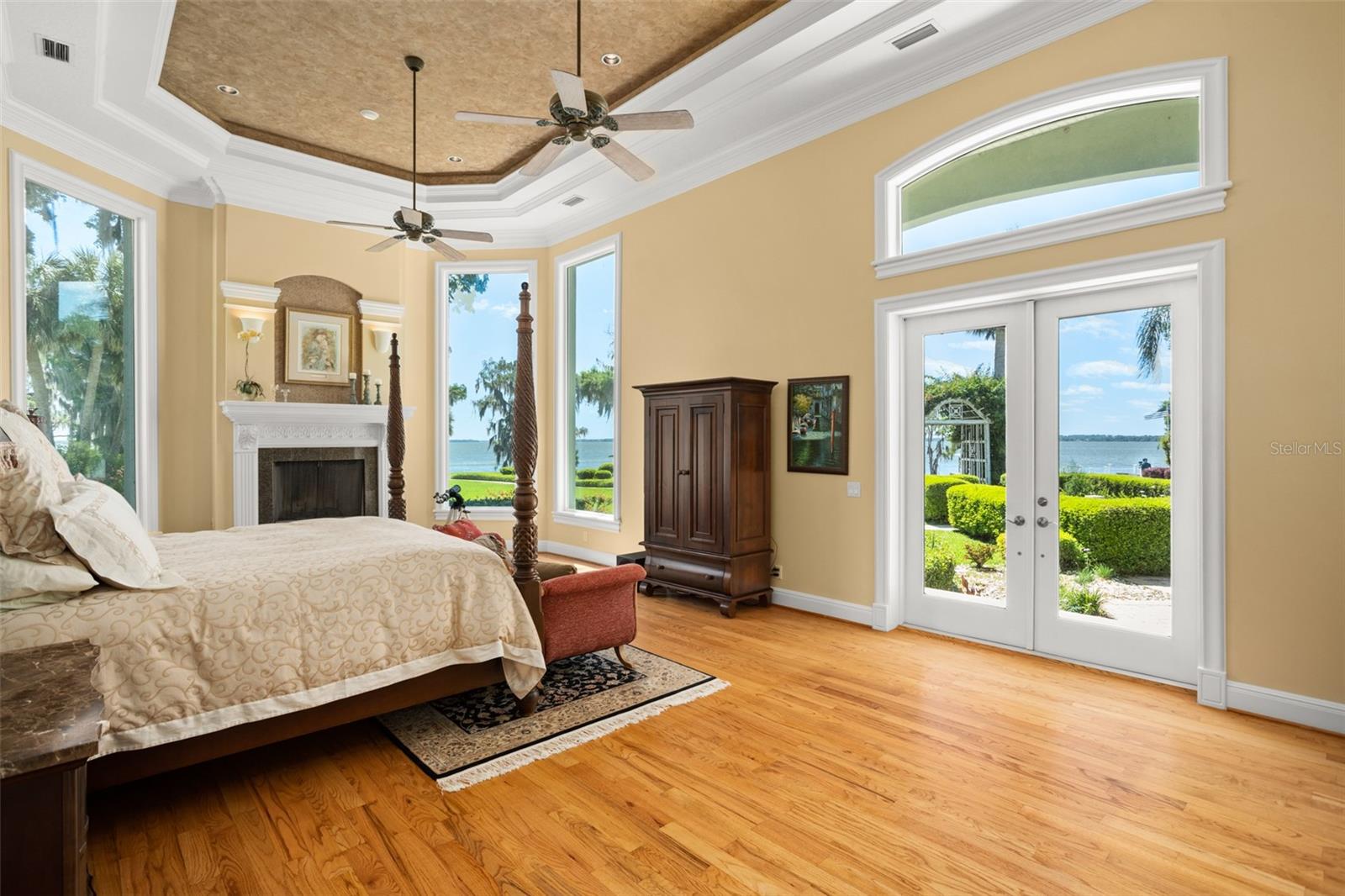 Discover an unrivaled waterfront paradise nestled directly on the shores of Lake Harris, part of the esteemed Harris Chain of Lakes. This expansive estate, accessible through a private gated driveway, offers a unique fusion of privacy, luxury, and leisure. The immediate homesite consists of 3.06 acres, while enjoying private ownership of an adjacent 46+/- conservation acres for additional privacy. Step into the custom-built 8,542 square foot sanctuary, masterfully designed to showcase breathtaking lake views from virtually every room. Marvel at the exquisite craftsmanship and attention to detail, from the elegantly laid diagonal hardwood floors and porcelain tiles to the intricate ceilings showcasing tongue & groove, barrel, coffered, and tray designs. Delight in the custom millwork, leaded glass entry door, granite countertops, multiple fireplaces, and designer finishes that grace every corner. Oversized windows throughout invite an abundance of natural light, framing the tranquil water vistas. Embrace the epitome of outdoor living that caters to both relaxation as well as formal entertaining. Your private backyard oasis awaits, complete with a serene walking path leading down to your personal firepit area and composite dock and boathouse, equipped with two lifts. Indoors, the thoughtfully designed floorplan offers a myriad of living spaces for everyone to enjoy. The open chef’s kitchen and dining areas provide the perfect setting for hosting unforgettable gatherings, seamlessly flowing into the massive pool area. Discover additional living spaces, including a dedicated homework station, a first-floor game room, and an office boasting custom wood details. Each bedroom hosts its own luxurious ensuite, while the versatile room above the garage can be transformed from a movie theater to guest quarters, home gym, or any flex space desired. Nestled within the renowned Harris Chain of Lakes in Central Florida, this exclusive retreat offers an unparalleled sense of seclusion while remaining mere minutes from a wealth of amenities including access to a public dock and boat ramp for additional ease. Explore the charming downtowns of Leesburg and nearby Mount Dora. Immerse yourself in the vibrant atmosphere of The Villages, and enjoy convenient access to UF Health & Advent Health, golf courses, and sports complexes. A myriad of shopping and dining options along US Hwy 441 await, and Leesburg International Airport is just a short drive away. Disney and Orlando International Airport are both within an hour's reach, making this estate the epitome of tranquility and convenience.