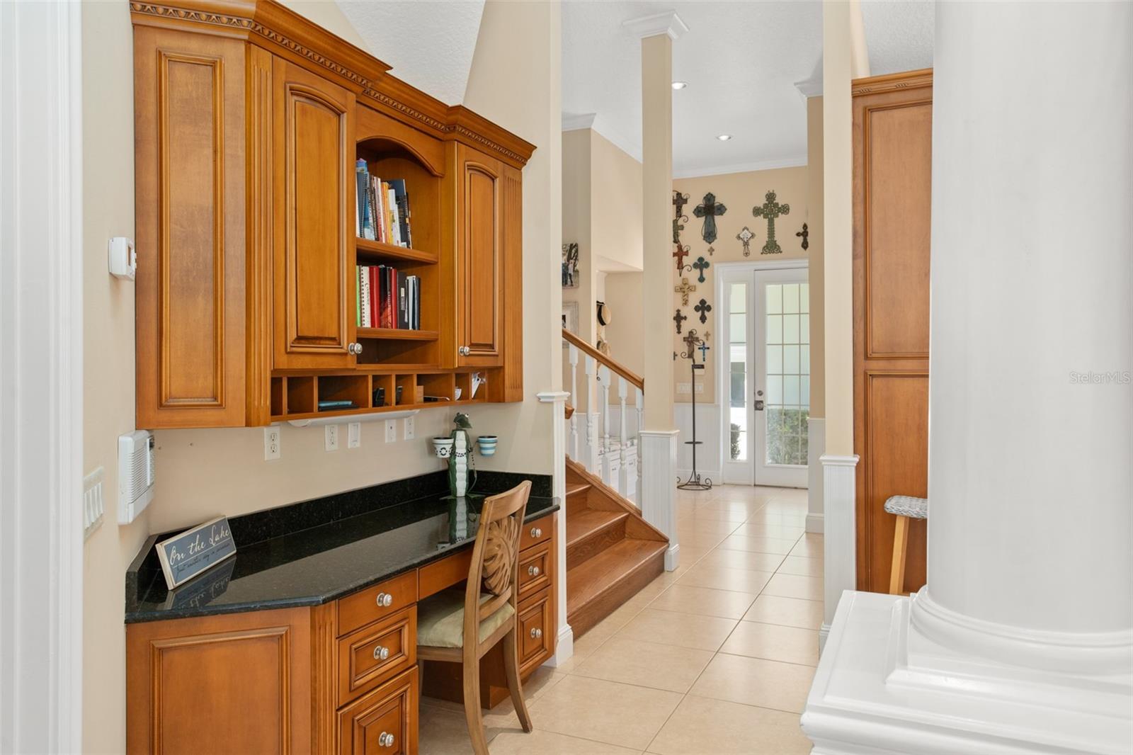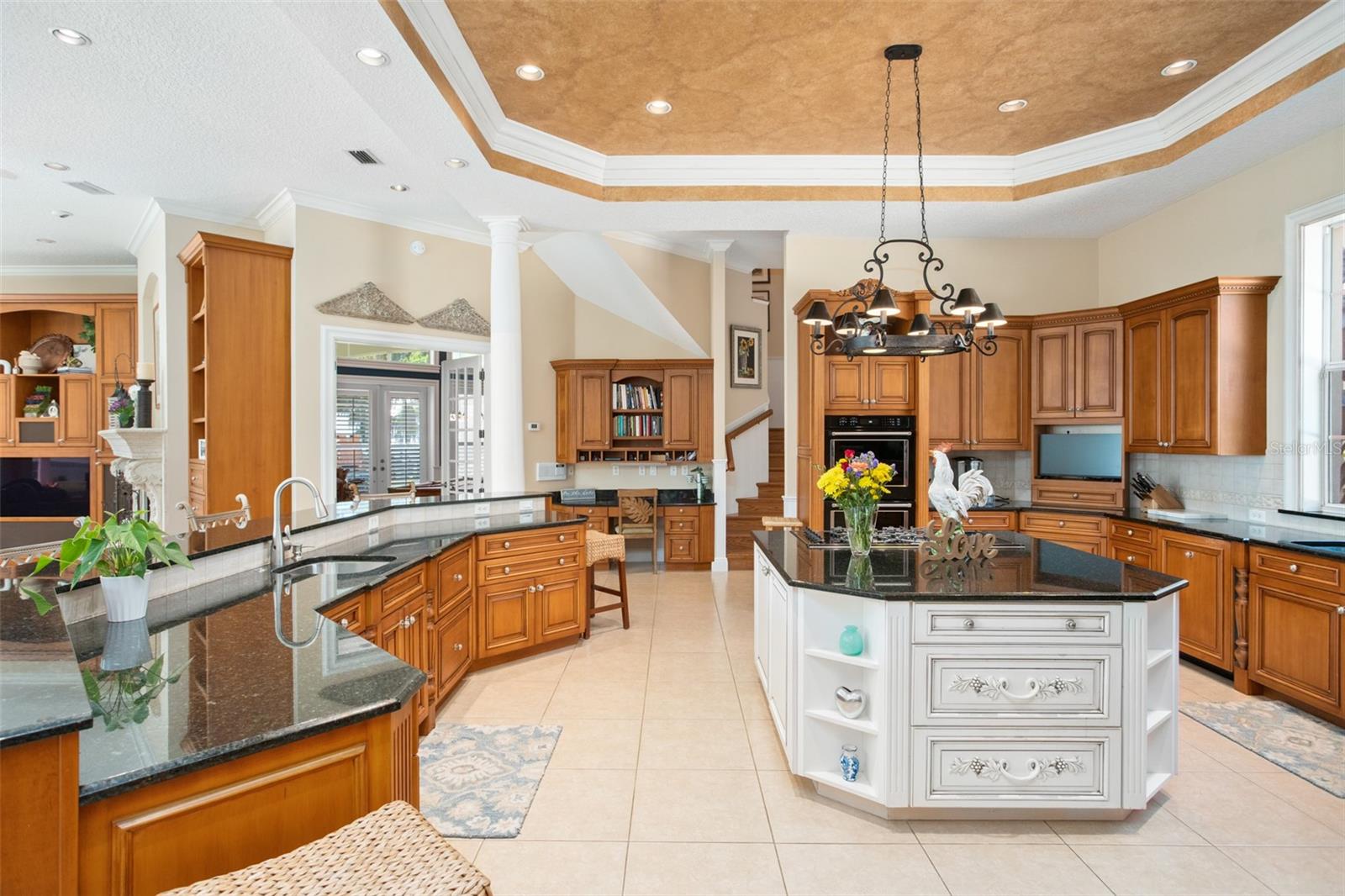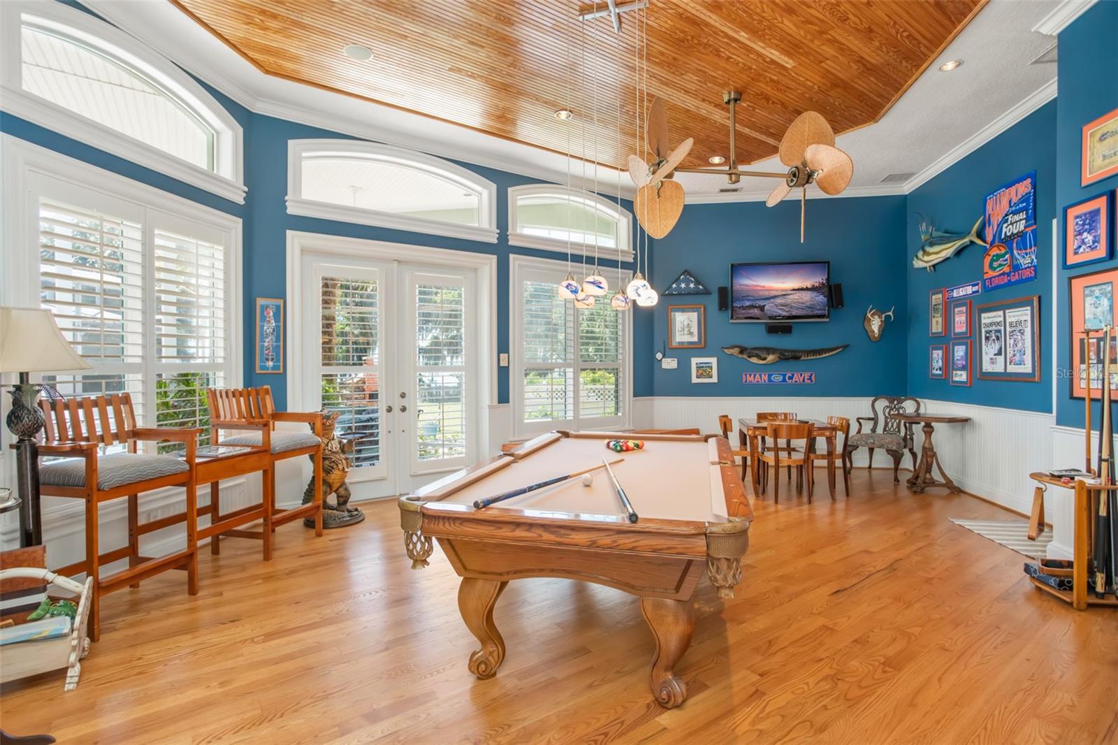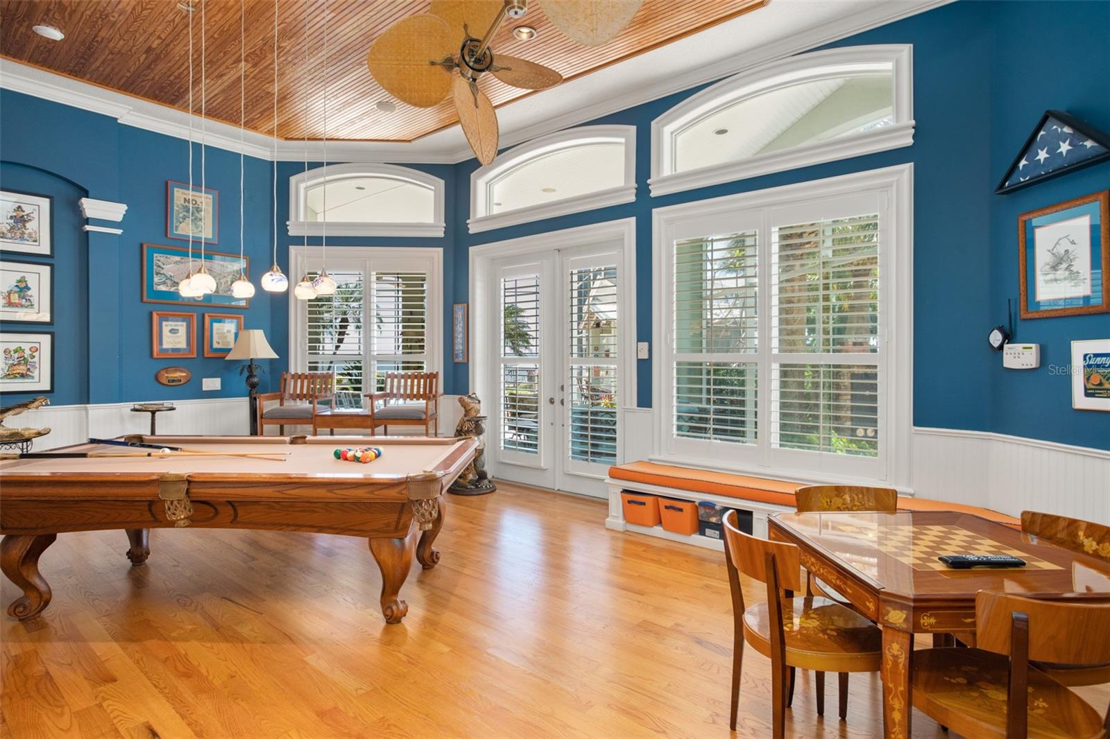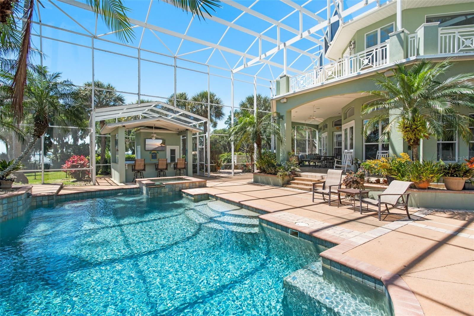 Discover an unrivaled waterfront paradise nestled directly on the shores of Lake Harris, part of the esteemed Harris Chain of Lakes. This expansive estate, accessible through a private gated driveway, offers a unique fusion of privacy, luxury, and leisure. The immediate homesite consists of 3.06 acres, while enjoying private ownership of an adjacent 46+/- conservation acres for additional privacy. Step into the custom-built 8,542 square foot sanctuary, masterfully designed to showcase breathtaking lake views from virtually every room. Marvel at the exquisite craftsmanship and attention to detail, from the elegantly laid diagonal hardwood floors and porcelain tiles to the intricate ceilings showcasing tongue & groove, barrel, coffered, and tray designs. Delight in the custom millwork, leaded glass entry door, granite countertops, multiple fireplaces, and designer finishes that grace every corner. Oversized windows throughout invite an abundance of natural light, framing the tranquil water vistas. Embrace the epitome of outdoor living that caters to both relaxation as well as formal entertaining. Your private backyard oasis awaits, complete with a serene walking path leading down to your personal firepit area and composite dock and boathouse, equipped with two lifts. Indoors, the thoughtfully designed floorplan offers a myriad of living spaces for everyone to enjoy. The open chef’s kitchen and dining areas provide the perfect setting for hosting unforgettable gatherings, seamlessly flowing into the massive pool area. Discover additional living spaces, including a dedicated homework station, a first-floor game room, and an office boasting custom wood details. Each bedroom hosts its own luxurious ensuite, while the versatile room above the garage can be transformed from a movie theater to guest quarters, home gym, or any flex space desired. Nestled within the renowned Harris Chain of Lakes in Central Florida, this exclusive retreat offers an unparalleled sense of seclusion while remaining mere minutes from a wealth of amenities including access to a public dock and boat ramp for additional ease. Explore the charming downtowns of Leesburg and nearby Mount Dora. Immerse yourself in the vibrant atmosphere of The Villages, and enjoy convenient access to UF Health & Advent Health, golf courses, and sports complexes. A myriad of shopping and dining options along US Hwy 441 await, and Leesburg International Airport is just a short drive away. Disney and Orlando International Airport are both within an hour's reach, making this estate the epitome of tranquility and convenience.