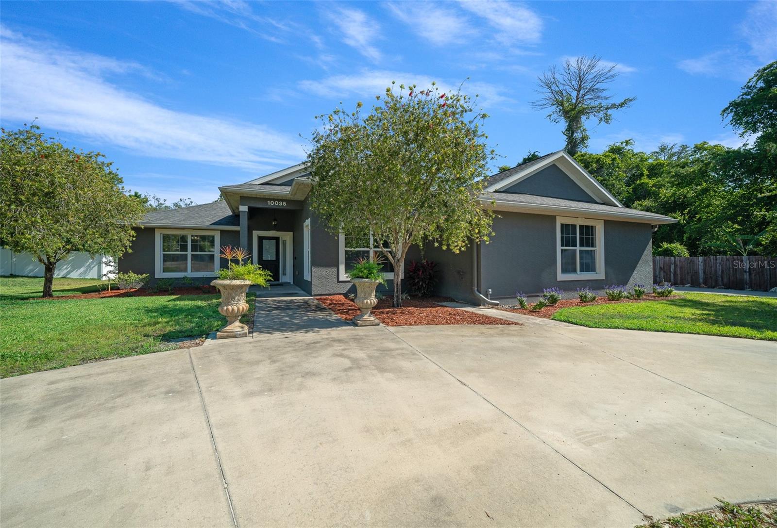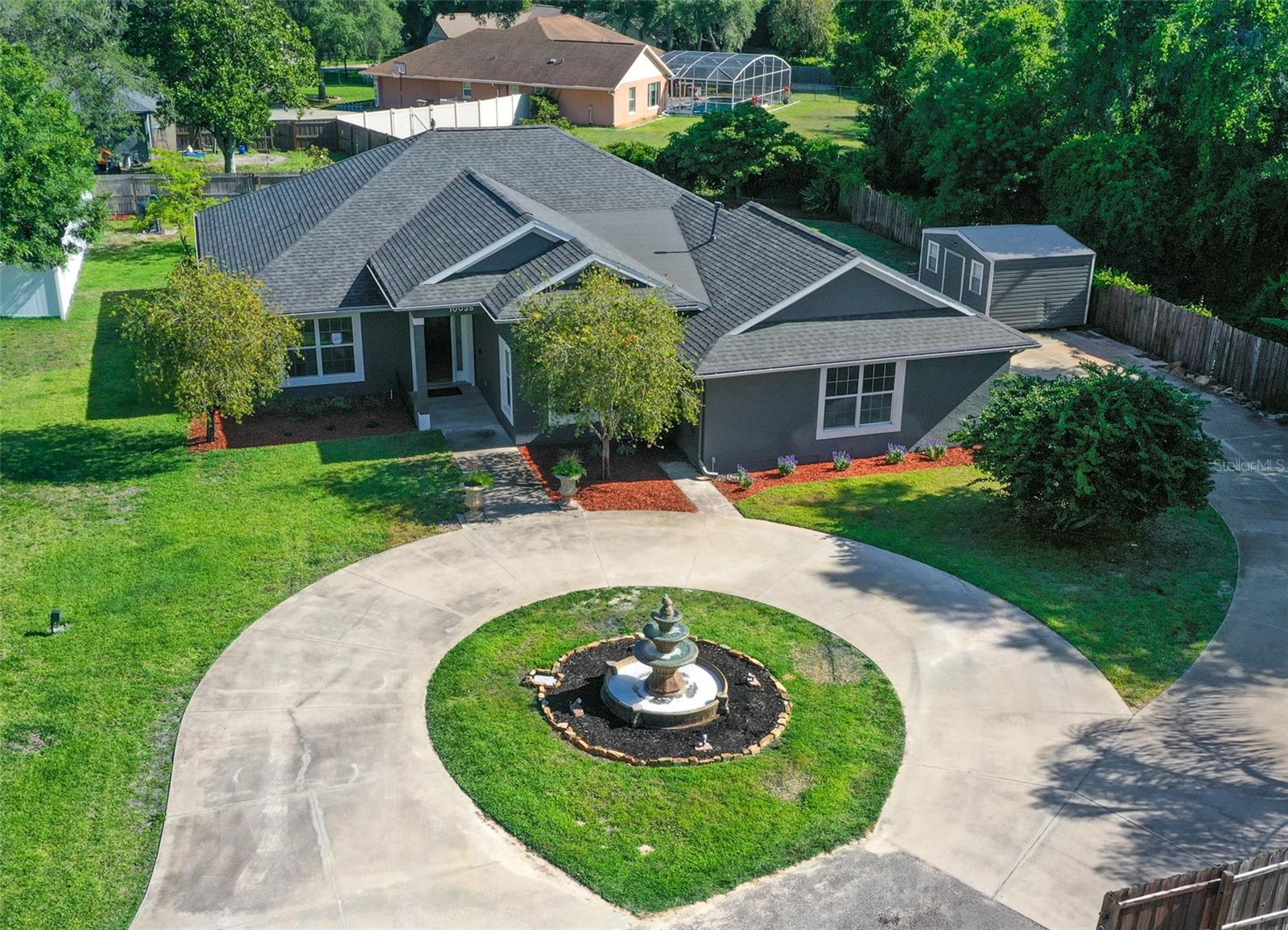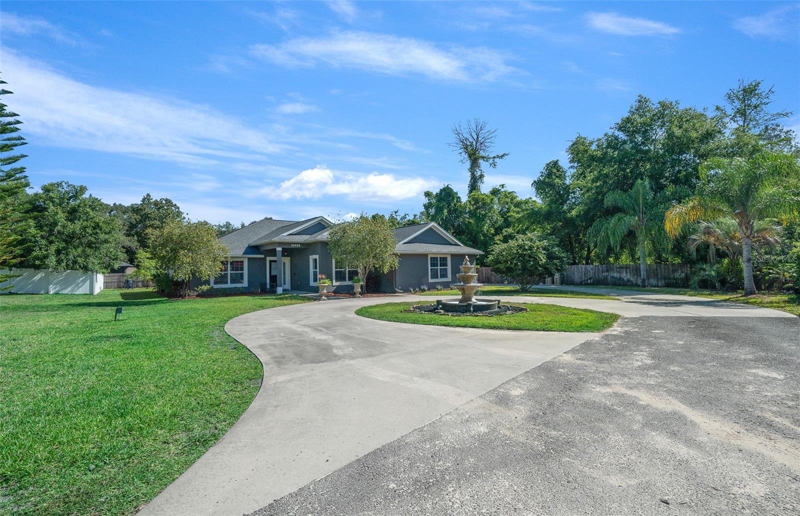 Welcome to this Enchanting super quiet and peaceful 4 bedroom, 2 bath SMART home nestled on the almost a 1/2-acre lot. As you step through the front door, you are greeted by a warm, open and inviting living space that flows seamlessly into the gourmet kitchen. The kitchen is a Chef's Delight and Bakers Dream, complete with high-end stainless-steel appliances, triple ovens and double stoves (Gas, Electric and Convection), Spacious with plenty of cabinetry and storage, deep sink w/touchless faucet and food pantry. The Master suite is a serene retreat boasting tray ceilings, a large walk-in closet and en-suite bathroom w/soaking tub, separate shower, dual vanities and private water closet. This split floor plan home features 3 additional bedrooms offering ample space for family or guests as well as a 2nd full bathroom. Premium tile throughout main living areas and new high quality stain guard carpet and padding in all the bedrooms. HVAC serviced and new allergen UV light added to system. Bonus room- All Weather Florida room w/ A/C can be used as 2nd living space, home office or for more entertaining space. Inside laundry with shop sink and storage cabinets, Oversized 2 car garage with side entry door. Large Circular driveway w/beautiful water fountain feature. Additional side driveway gives you plenty space for parking and for all your toys. NO HOA!!! So you can park an RV, boat or work truck with no issues. WHOLE HOUSE GENERATOR!! This home also features a fantastic large open aired back patio/entertainment area with custom pavers, perfect for outdoor gatherings or simply enjoying a quiet moment surrounded by nature. The almost 1/2 acre lot offers plenty of room to customize and create the outdoor space of your dreams, whether it be adding a pool, garden, or outdoor kitchen. Nice sized shed on the side of the home for additional storage. Home is located at the end of a dead-end street which is a nice benefit of no traffic and increased privacy. Freshly landscaped. Home has well and septic which is great for lower utility bills. Centrally located in unincorporated Leesburg where residents enjoy a peaceful setting with easy access to shopping, dining, boating, fishing and all things Lake County w/o the higher taxes of surrounding cities. This home offers the perfect combination of modern amenities and peaceful surroundings, making it ideal place to call home. Don't miss the opportunity to make this stunning property your own and start living the Florida lifestyle you've always dreamed of. BRAND NEW ROOF, NO HOA, NO LEASE RESTRICTIONS, WHOLE HOUSE GENERATOR, WELL/SEPTIC, CHEF/BAKERS KITCHEN!!