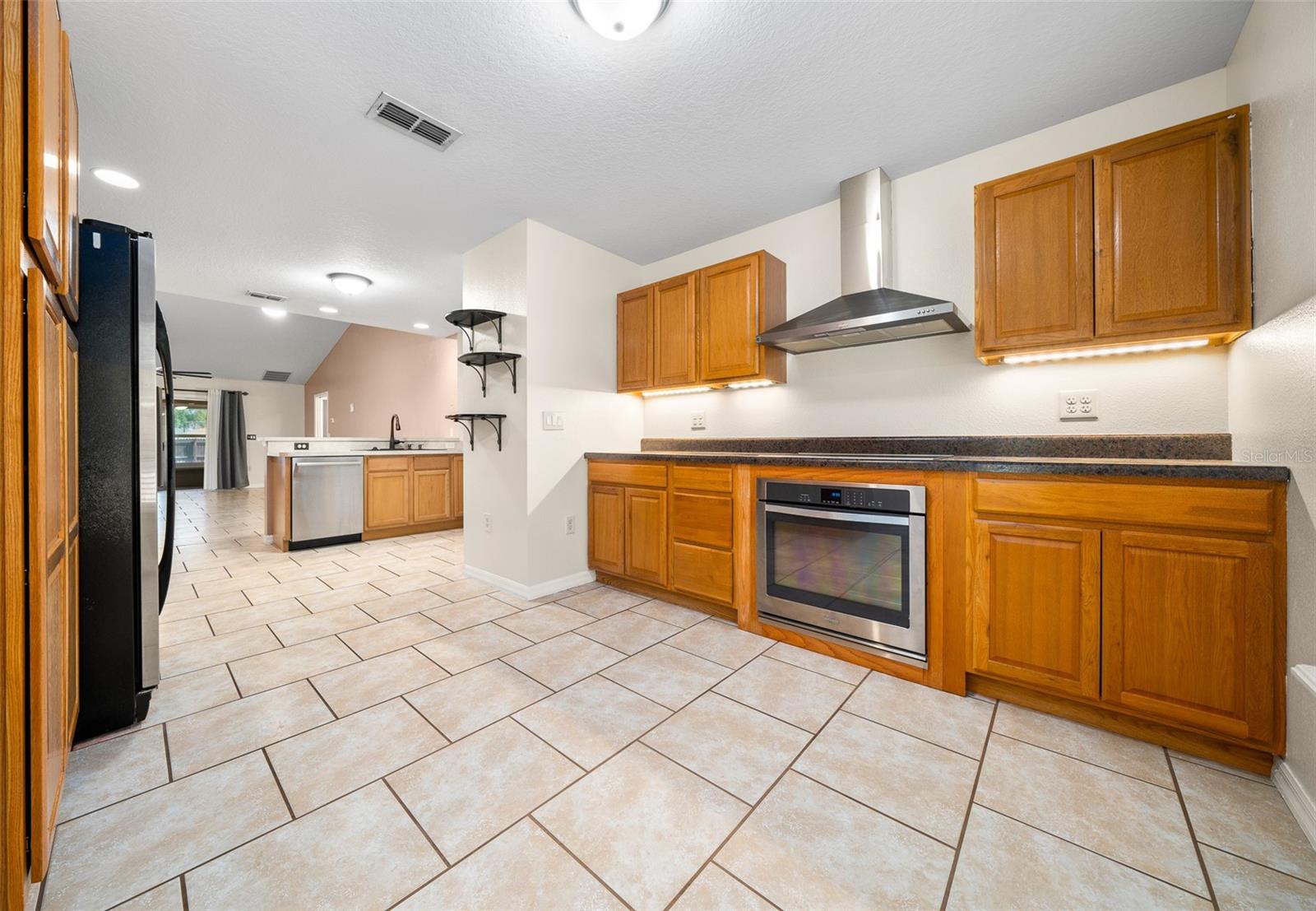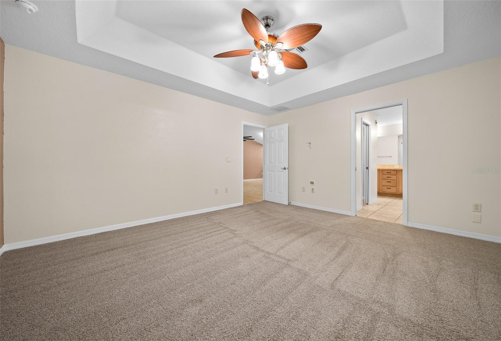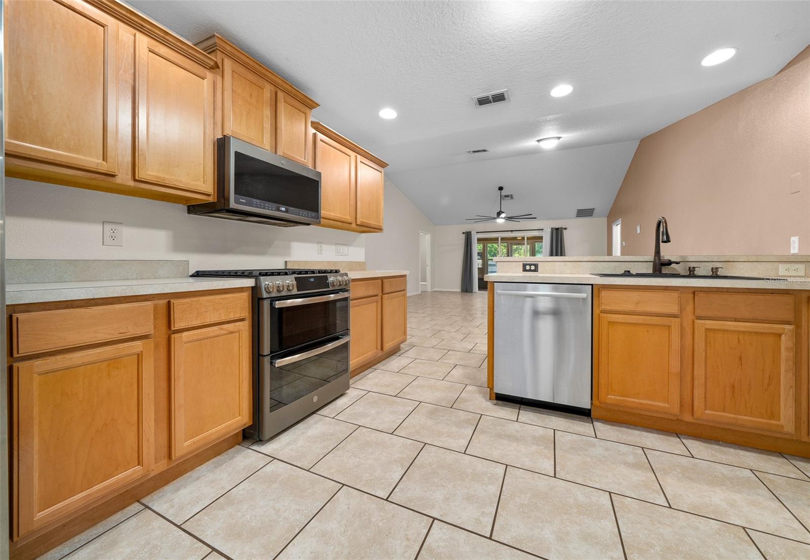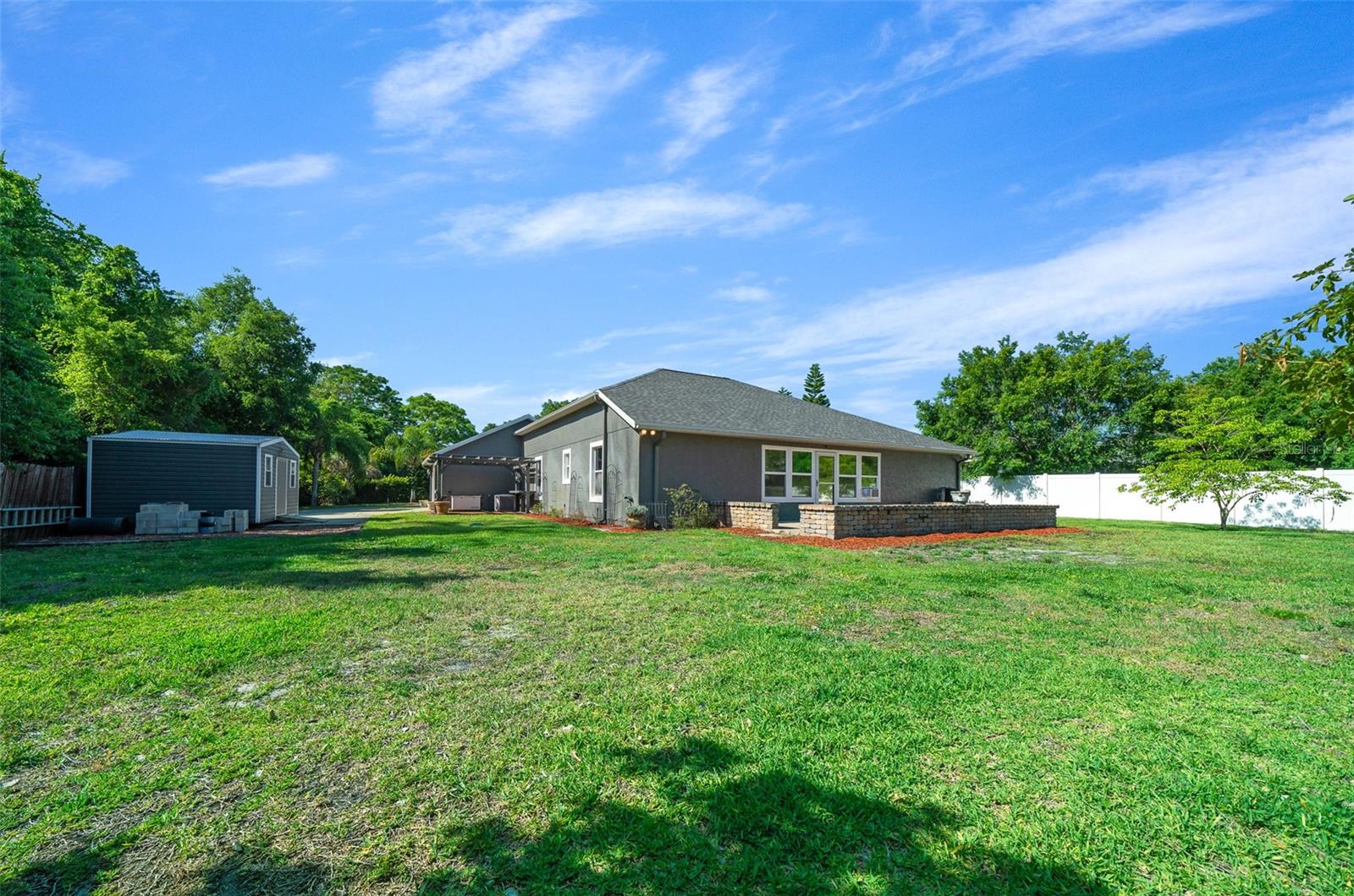 Welcome to this Enchanting super quiet and peaceful 4 bedroom, 2 bath SMART home nestled on the almost a 1/2-acre lot. As you step through the front door, you are greeted by a warm, open and inviting living space that flows seamlessly into the gourmet kitchen. The kitchen is a Chef's Delight and Bakers Dream, complete with high-end stainless-steel appliances, triple ovens and double stoves (Gas, Electric and Convection), Spacious with plenty of cabinetry and storage, deep sink w/touchless faucet and food pantry. The Master suite is a serene retreat boasting tray ceilings, a large walk-in closet and en-suite bathroom w/soaking tub, separate shower, dual vanities and private water closet. This split floor plan home features 3 additional bedrooms offering ample space for family or guests as well as a 2nd full bathroom. Premium tile throughout main living areas and new high quality stain guard carpet and padding in all the bedrooms. HVAC serviced and new allergen UV light added to system. Bonus room- All Weather Florida room w/ A/C can be used as 2nd living space, home office or for more entertaining space. Inside laundry with shop sink and storage cabinets, Oversized 2 car garage with side entry door. Large Circular driveway w/beautiful water fountain feature. Additional side driveway gives you plenty space for parking and for all your toys. NO HOA!!! So you can park an RV, boat or work truck with no issues. WHOLE HOUSE GENERATOR!! This home also features a fantastic large open aired back patio/entertainment area with custom pavers, perfect for outdoor gatherings or simply enjoying a quiet moment surrounded by nature. The almost 1/2 acre lot offers plenty of room to customize and create the outdoor space of your dreams, whether it be adding a pool, garden, or outdoor kitchen. Nice sized shed on the side of the home for additional storage. Home is located at the end of a dead-end street which is a nice benefit of no traffic and increased privacy. Freshly landscaped. Home has well and septic which is great for lower utility bills. Centrally located in unincorporated Leesburg where residents enjoy a peaceful setting with easy access to shopping, dining, boating, fishing and all things Lake County w/o the higher taxes of surrounding cities. This home offers the perfect combination of modern amenities and peaceful surroundings, making it ideal place to call home. Don't miss the opportunity to make this stunning property your own and start living the Florida lifestyle you've always dreamed of. BRAND NEW ROOF, NO HOA, NO LEASE RESTRICTIONS, WHOLE HOUSE GENERATOR, WELL/SEPTIC, CHEF/BAKERS KITCHEN!!