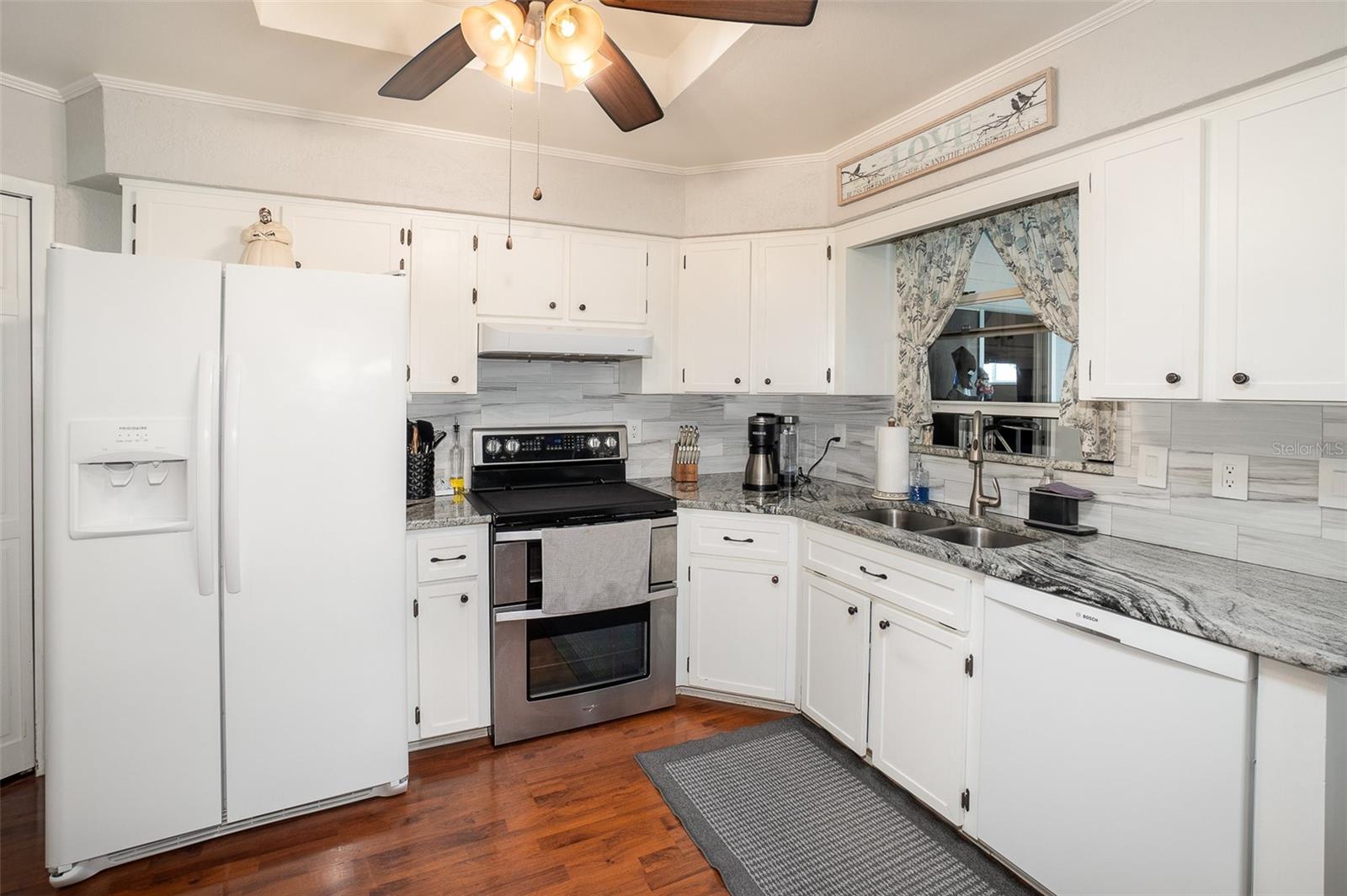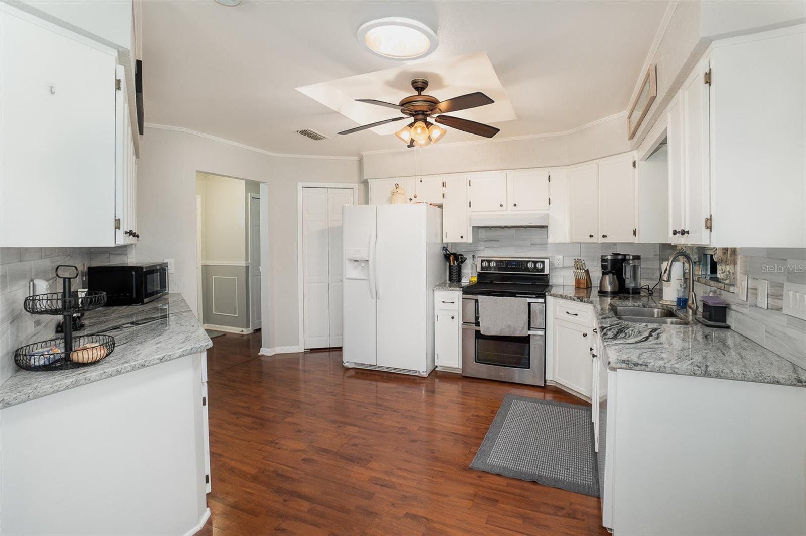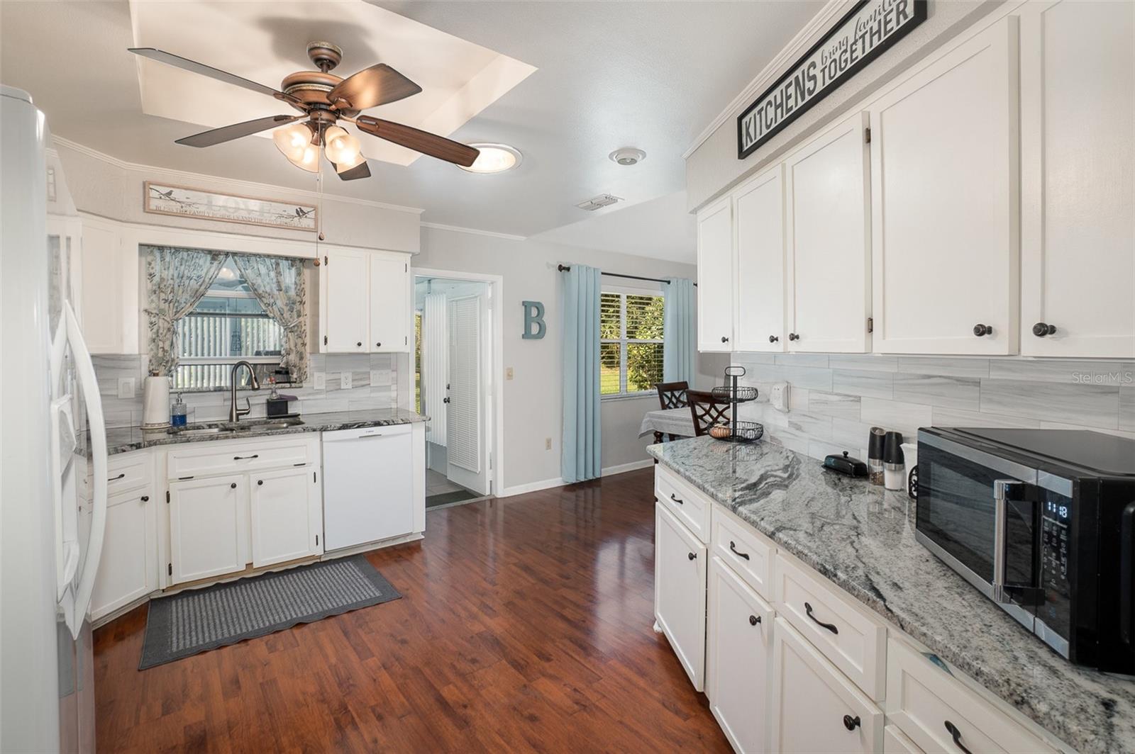 SELLER MOTIVATED! Welcome to your warm, new home at 506 Galloway Ct, Leesburg, 55+ community! This stunning, inviting property offers the perfect blend of cul-de-sac for privacy and comfortability. This well-kept single-family home features a spacious living area which leads towards an enclosed porch with a peaceful view to enjoy your morning coffee and evening relaxation. The heart of the home is the kitchen, which is complimented by granite countertops and a beautiful backsplash. As you leave the porch, the kitchen is located conveniently for entertaining guests. Your new home offers three bedrooms, two bathrooms, one with a walk-in shower and another with a soaking tub. Enjoy resort style living with access to community pools, club house, tennis court, shuffleboard, and basic cable. Leesburg allows quick access to highways like 441 and 429, leading to cities like Mt. Dora and Sanford. The home offers three bedrooms, including a luxurious master suite with a walk-in closet and a spa-like ensuite bathroom featuring a soaking tub, separate shower, and dual vanities. The remaining bedrooms are generously sized and share a well-appointed full bathroom.