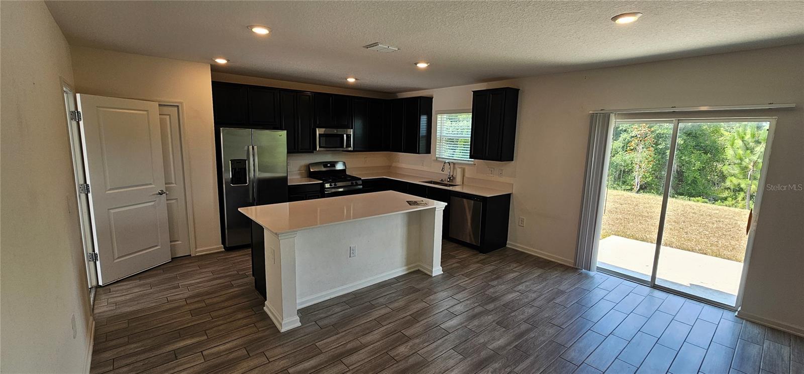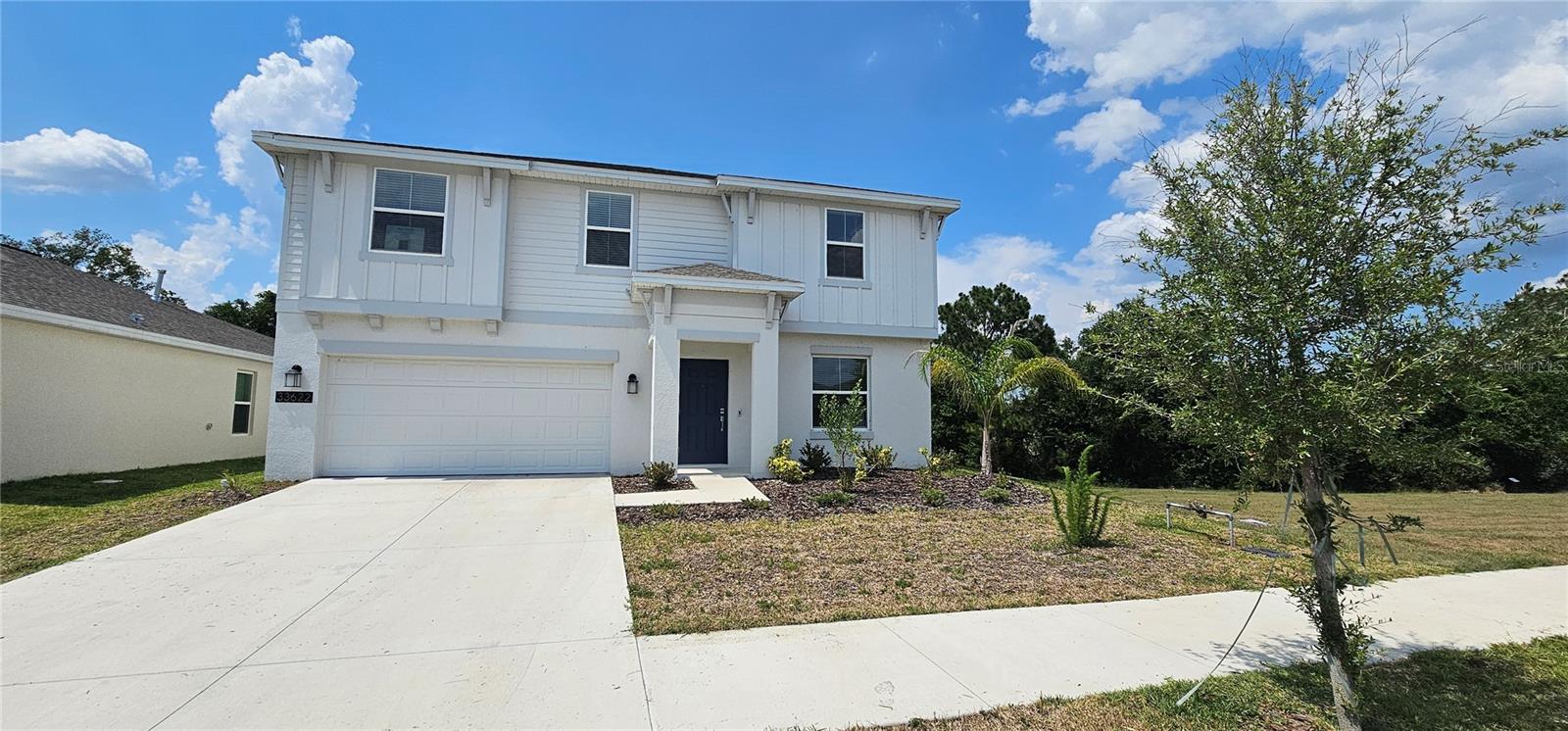 Welcome to your dream home! This elegant two-story house features four spacious bedrooms and two and a half baths. Nestled in a serene setting with no rear and side neighbors, it offers unmatched privacy. You'll find an open floor plan that seamlessly connects the living spaces. The stunning espresso kitchen, with wood plank tile floors, stainless steel appliances, and solid surface countertops, includes a central island perfect for gatherings. The kitchen opens to the large dining and family rooms, ideal for hosting friends and family. A versatile flex room adjacent to the main living area can be tailored to your needs, whether as a library, home office, or extra storage space. Upstairs, discover four generously sized bedrooms, including a spacious owner’s suite with a walk-in closet and separate sinks. A loft area offers a perfect spot for reading or family game nights. The convenience of an upstairs laundry room makes chores easy. This home features large tile flooring in bathrooms and other wet areas for durability and easy maintenance. Located in the family-friendly Liberty Preserve neighborhood, you'll enjoy nearby parks, gardens, and the Leesburg Premium Outlets. Conveniently situated between HWY 44 and HWY 441, commuting and daily errands are a breeze. This is more than just a Beautiful house; it’s a place to create lasting memories and build a future filled with joy and comfort.