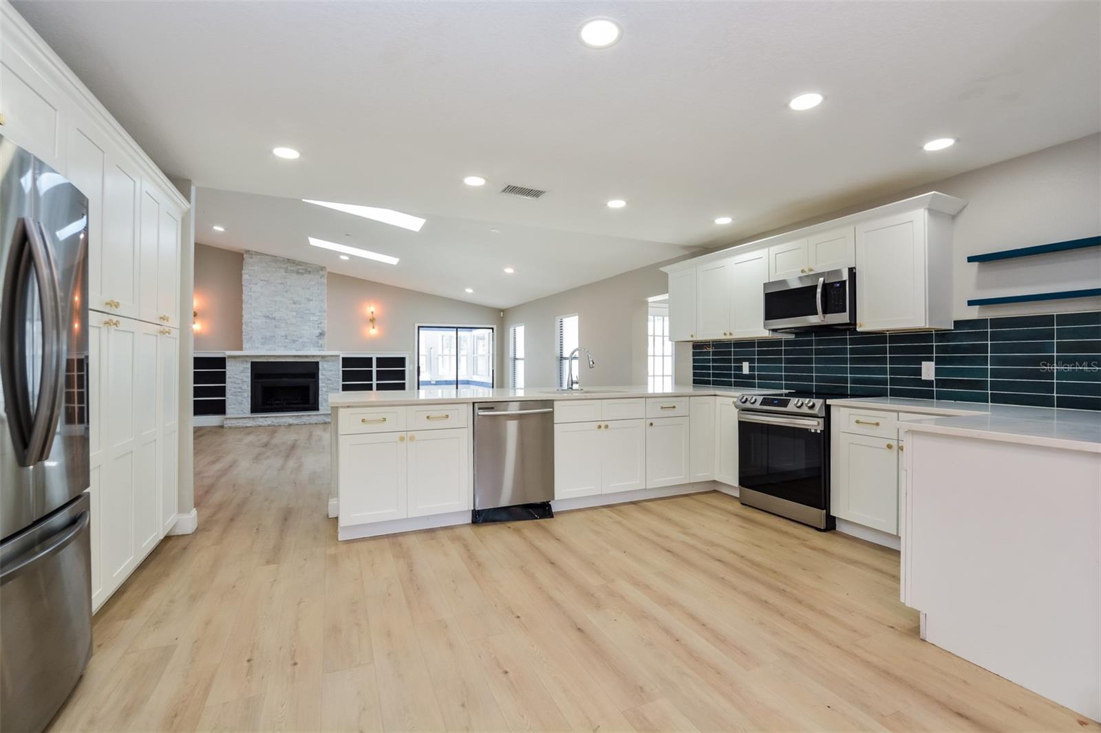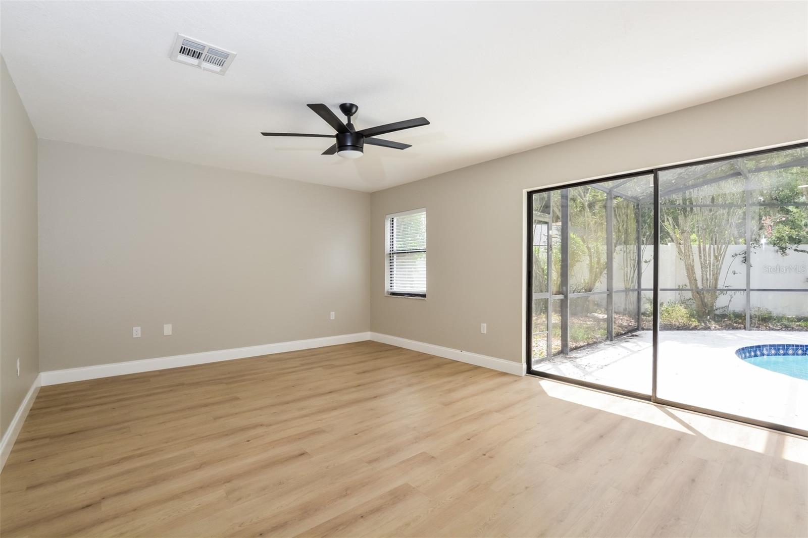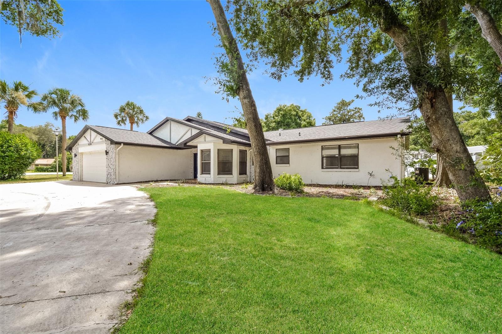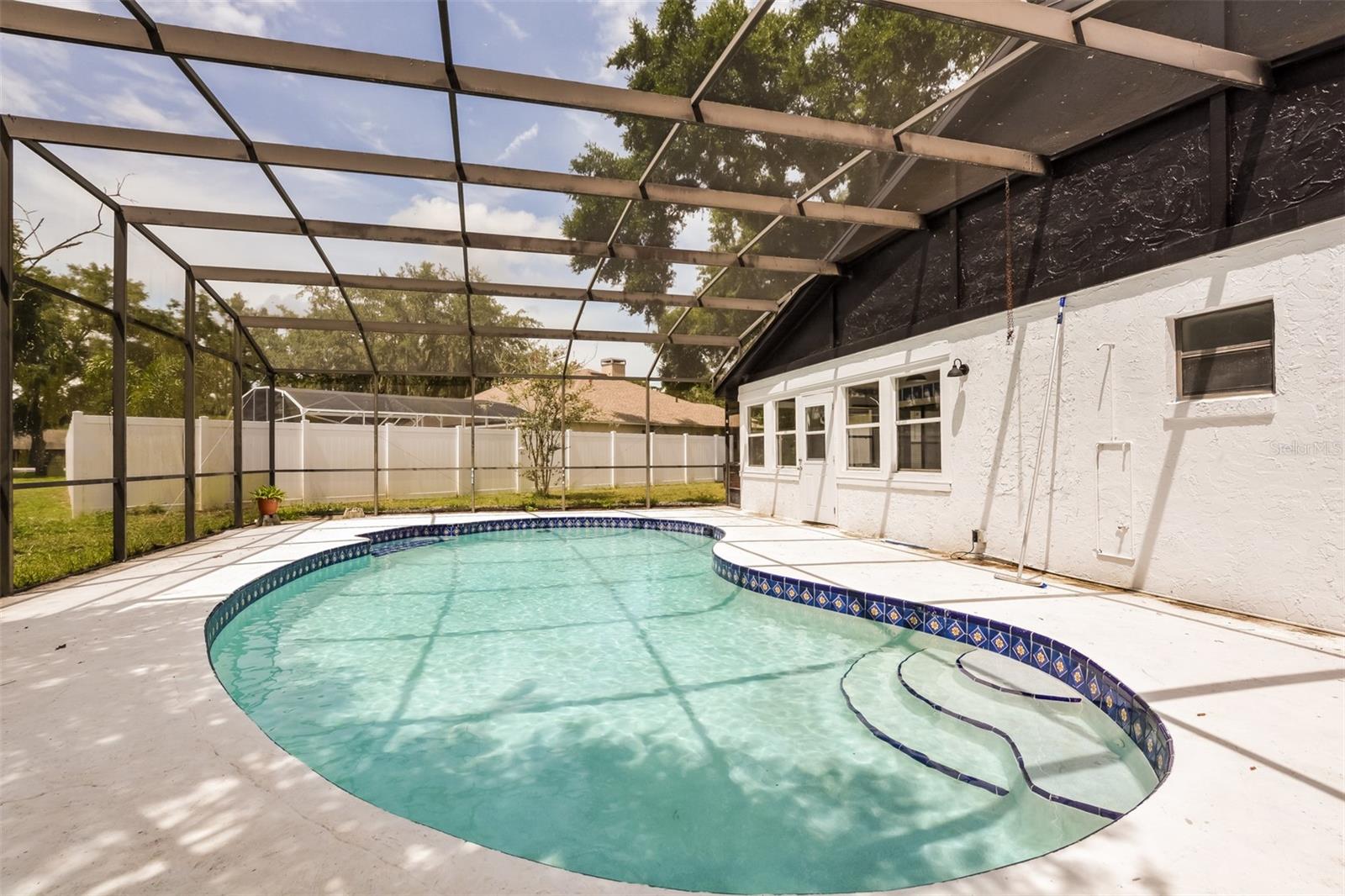 Come check out this stunning 5 bedroom, 3.5 bathroom POOL home located in a serene neighborhood in Leesburg. This home is situated on an oversized corner lot plus there is No HOA. As you walk through the foyer you are welcomed into the massive open living area with multiple skylights which bring in an abundance of natural light on top of recessed lighting. It’s the perfect home for a large family or entertaining guests with a total of 2,983 square feet of living space. There is a lovely stone fireplace along with built in shelving. The living room opens up from the updated glamorous kitchen. Flawless marble countertops flow through the kitchen along with a trendy backsplash and gold accents making it feel elegant. The kitchen is equipped with an abundant amount of cabinet space for all of your culinary needs and even has a spacious eat in area. This home has a split floor plan which includes two bedrooms and a bathroom on one side and the remaining two and master on the other. All bedrooms are generously sized. Vinyl flooring has been placed throughout the entire home for easy cleaning. The home has updated lighting and matching hardware throughout. All bathrooms are custom and updated with stylish countertops and vanities. Step out the sliding glass doors into the sunroom with AC while you look out onto your screened in pool deck. Soak the Florida sunshine in while floating around in your crystal clear pool in privacy. There are also sliding glass doors that head into the master from the pool deck. There is matured landscaping around the home. The roof, HVAC, and water heater were all replaced in 2022. There is an indoor laundry room for convenience. This golf cart friendly neighborhood is nestled between Lake Harris and Lake Eustis with easy access to US Hwy 441, shopping, dining, boating, fishing and all Leesburg has to offer. Schedule your private showing today!