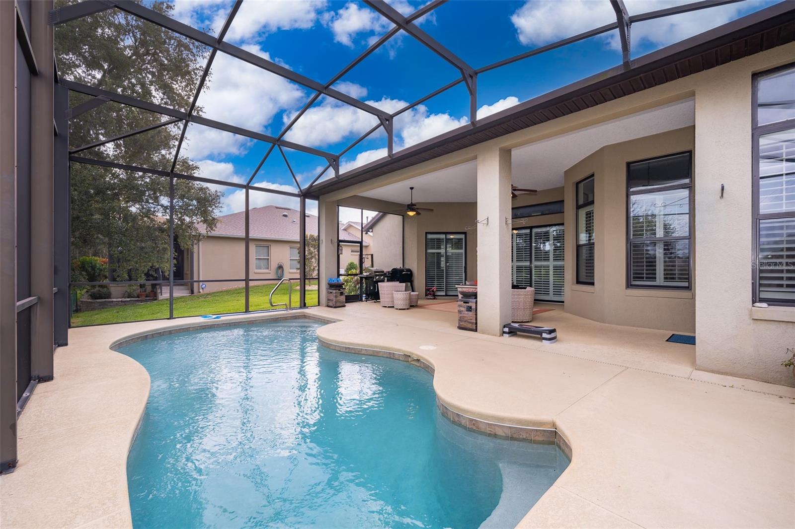AS YOU ENTER YOUR HOME, STUNNING VIEWS FROM YOUR LIVING ROOM OF YOUR SOLAR HEATED SALT WATER POOL AND CONSERVATION AREA, WHAT YOU'VE WORKED YOUR WHOLE LIFE FOR IS WAITING FOR YOU IN SUNNY FLORIDA SURROUNDED BY OVER 75,000 ACRES OF CHAIN OF LAKES IN LAKE COUNTY. THIS IS THE LARGE BEAUTIFUL DREAM HOME SHOWCASED ON A PREMIUM LOT YOU HAVE BEEN WAITING FOR AND WHERE YOU WILL SPEND ALL YOUR FREE TIME!!! ENJOY EVENING SUNSETS RELAXING WITH YOUR FAVORITE BEVERAGE! YOU WILL LOVE THIS GORGEOUS SPLIT FLOOR PLAN 3-BEDROOM, 2-BATH HOME WITH WITH HIGH CEILINGS, PLANTATION SHUTTERS, WATER SOFTENER AND TANKLESS WATER HEATER. LARGE LIVING AREAS IDEAL FOR ENTERTAINING, A BEAUTIFUL KITCHEN WITH GRANITE COUNTERTOPS, ISLAND BAR AND WOOD CABINETS. SUPERIOR PRIVACY VIA YOUR FULLY SCREENED EXTENDED PATIO AND LANAI OVERLOOKING A BIRD SANCTUARY CONSERVATION AREA AND WALKING TRAIL. THIS IS THE "NATURE COMMUNITY" A GOLF CART PRISTINE COMMUNITY WITH OVER 4 MILES OF TRAILS. ENJOY TOURING THE GREENSPACE OF LEGACY WITH PLENTY OF OUTSIDE ACTIVITIES SUCH AS PICKLEBALL, SOFTBALL, SHUFFLEBOARD, TENNIS, BOCCE AND WATER AEROBICS; WATER LIVING HERE IS WONDERFUL! INSIDE ACTIVITIES INCLUDE DANCE CLASSES, ZUMBA, LEGACY CHORALE, BOGGY BEARS, THEATER AND CHORUS, BILLIARDS, CARD CLUBS AND A LARGE EXERCISE ROOM. GATED BOAT AND RV STORAGE. THIS ENCLOSED PRIVATE SOLAR HEATED POOL REPLACEMENT COST WILL TOP 150k AND WAITING PERIOD OF UP TO 2 YEARS+ HOA FEE INCLUDES GRASS CUTTING, HIGH SPEED INTERNET AND CABLE!