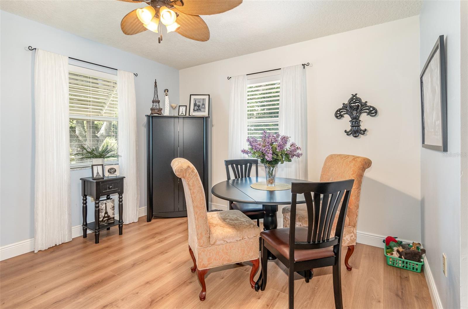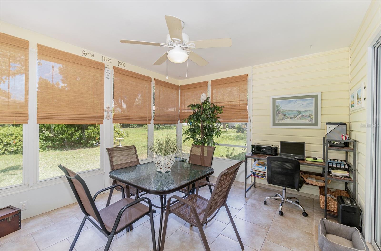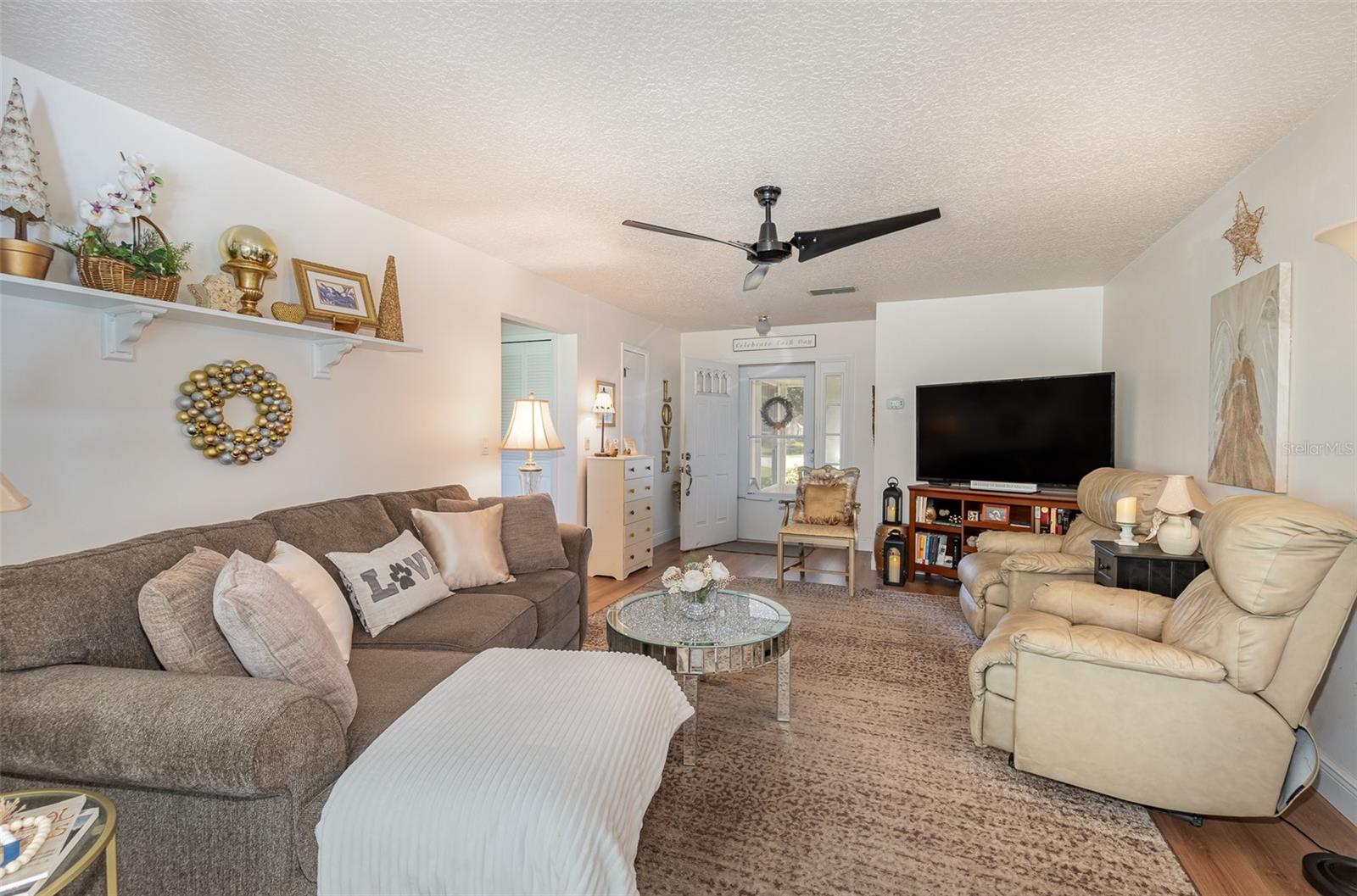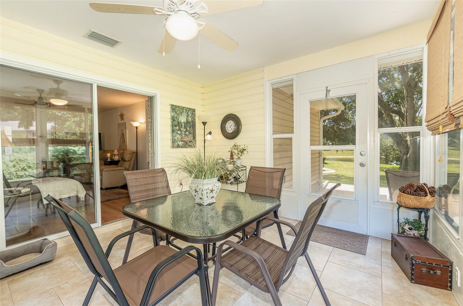 Welcome to 1314 Noble Ct, a pristine residence perfectly situated on a serene cul-de-sac in the sought-after 55+ active community of Scottish Highlands. This immaculate home is truly move-in ready—just bring your toothbrush! Boasting great curb appeal, this beautifully maintained 2-bedroom, 2-bathroom gem offers a spacious layout with a recently updated kitchen featuring refinished cabinets and elegant granite countertops. The bathrooms have also been upgraded with granite surfaces, adding a touch of luxury throughout. Step into the glass-enclosed Florida room, where you can enjoy year-round comfort with its heating capabilities. This versatile space overlooks a picturesque backyard with a tranquil water view, ideal for relaxing or entertaining. The home features newer laminate flooring throughout, with stylish tile accents in the Florida room, kitchen, and bathrooms. Neutral colors and meticulous cleanliness create a welcoming ambiance ready for you to make it your own. The oversized garage is a standout feature ample space for a golf cart, and plenty of storage options. Outside, a well for irrigation ensures the lush, vibrant landscaping is always well-maintained, enhancing your outdoor living experience. The home boast a newer roof and A/C System in 2022. Scottish Highlands offers a wealth of amenities to enrich your lifestyle, including a clubhouse, exercise facilities, an indoor heated pool and spa, and tennis courts. Embrace the Florida lifestyle and all the activities this vibrant community has to offer. Don't miss this opportunity to own a stunning home in one of Leesburg's most desirable neighborhoods. Move in and start enjoying the best of Florida living today!