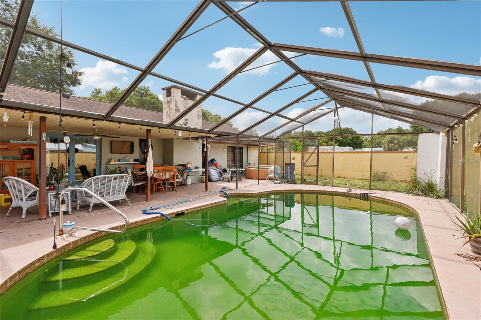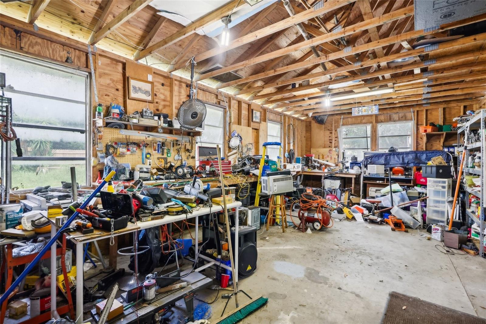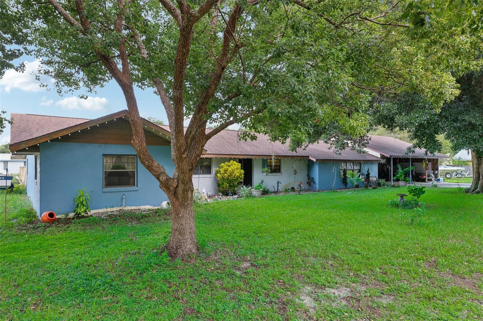 This spacious 4-bedroom, 2.5-bath pool home offers the perfect blend of comfort and functionality, set on a large lot with a fireplace, oversized workshop, and 3-car carport. With no HOA or deed restrictions, there’s ample space to park your RV, jet skis, boat, or trailer right at home—no need for offsite storage. The spacious workshop is ideal for housing your toys, small business equipment, or hobbies. Designed for hosting family and friends, the home provides plenty of room for everyone. The fourth bedroom, with its own private entrance, offers versatile possibilities as a 23’x22’ family room, home office, study, or other flex spaces. Nestled on a private road, the property offers both privacy and convenience, with quick access to Tavares and Leesburg, and it’s less than an hour from Orlando or The Villages. Recent upgrades include two brand new water heaters (2022), a new pool pump and filter (2023), an upgraded breaker panel (2022), and a reverse osmosis water system installed on the well, serviced annually. The septic system is also serviced annually, with a new drain field installed in 2021. Additional updates include a new AC (2018), new toilets in all bathrooms, refinished kitchen cabinets (2023), and a 4-zone lawn irrigation system.