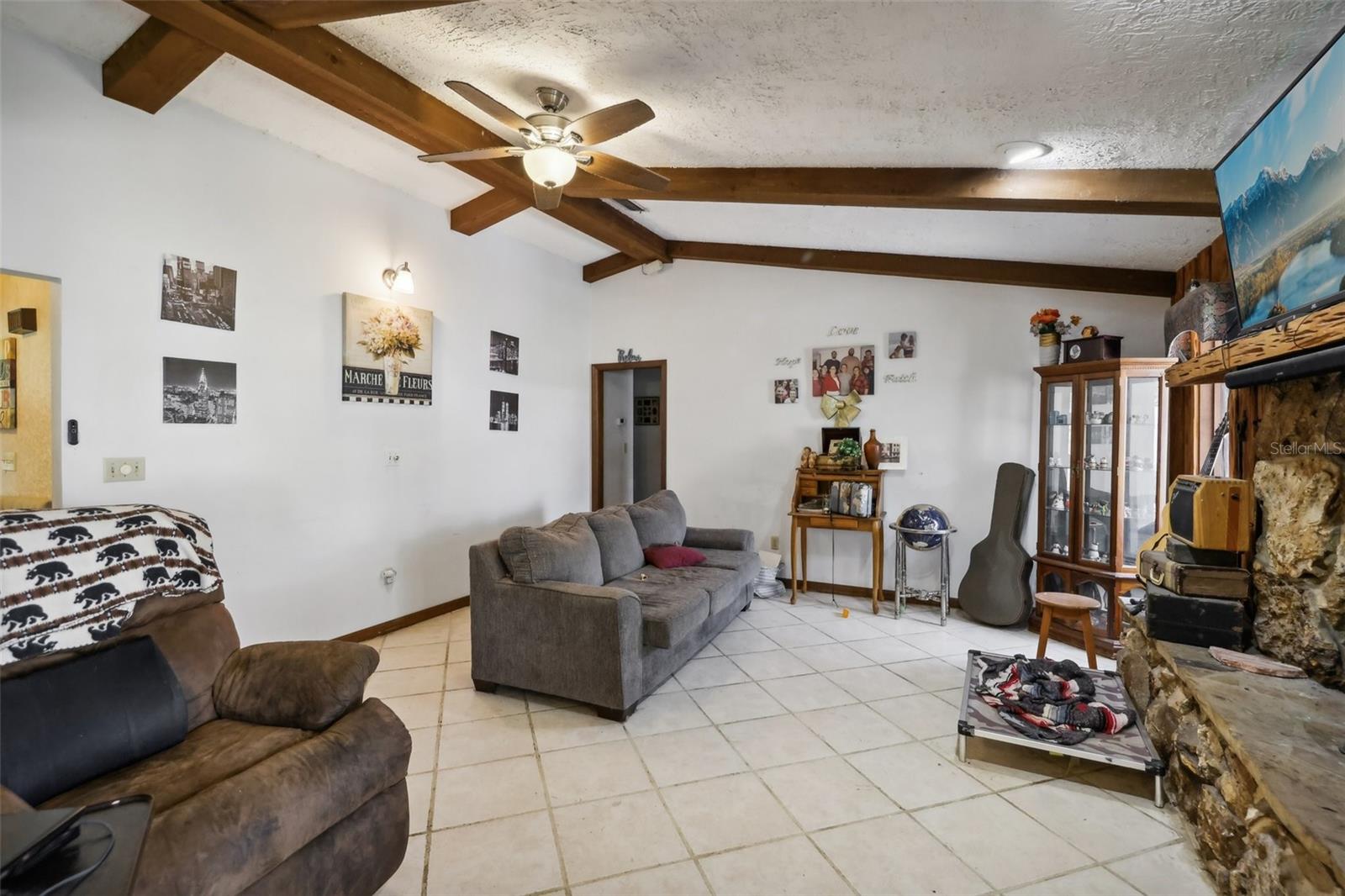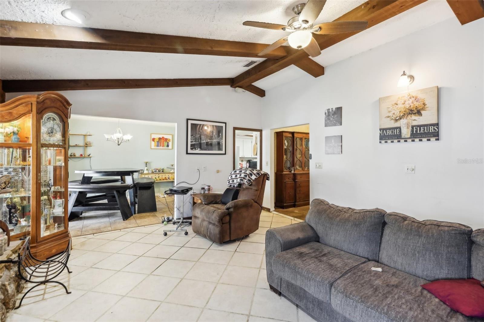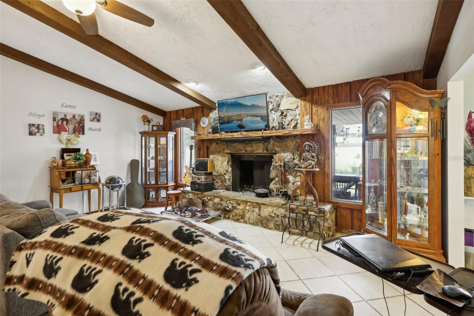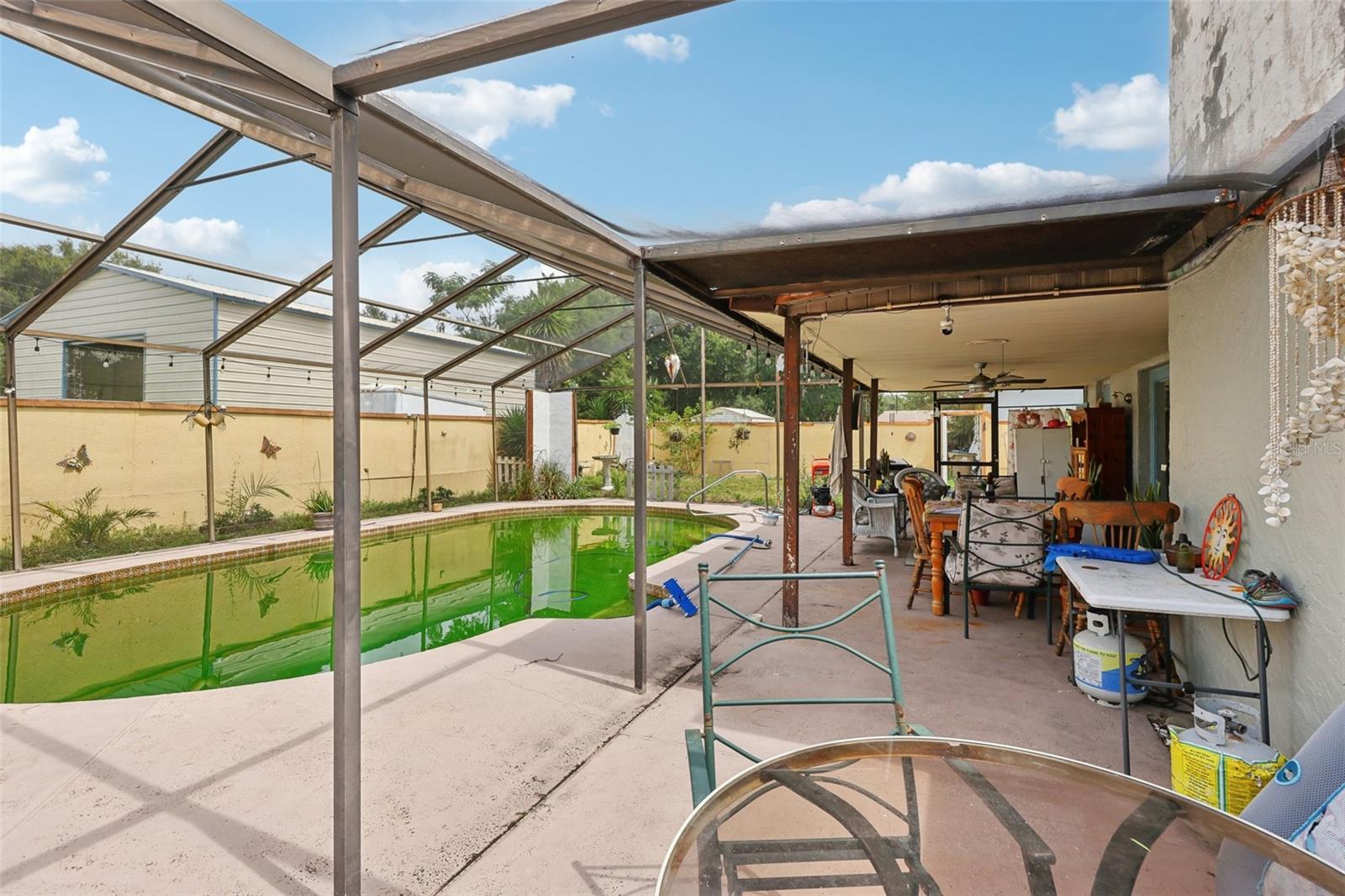 This spacious 4-bedroom, 2.5-bath pool home offers the perfect blend of comfort and functionality, set on a large lot with a fireplace, oversized workshop, and 3-car carport. With no HOA or deed restrictions, there’s ample space to park your RV, jet skis, boat, or trailer right at home—no need for offsite storage. The spacious workshop is ideal for housing your toys, small business equipment, or hobbies. Designed for hosting family and friends, the home provides plenty of room for everyone. The fourth bedroom, with its own private entrance, offers versatile possibilities as a 23’x22’ family room, home office, study, or other flex spaces. Nestled on a private road, the property offers both privacy and convenience, with quick access to Tavares and Leesburg, and it’s less than an hour from Orlando or The Villages. Recent upgrades include two brand new water heaters (2022), a new pool pump and filter (2023), an upgraded breaker panel (2022), and a reverse osmosis water system installed on the well, serviced annually. The septic system is also serviced annually, with a new drain field installed in 2021. Additional updates include a new AC (2018), new toilets in all bathrooms, refinished kitchen cabinets (2023), and a 4-zone lawn irrigation system.