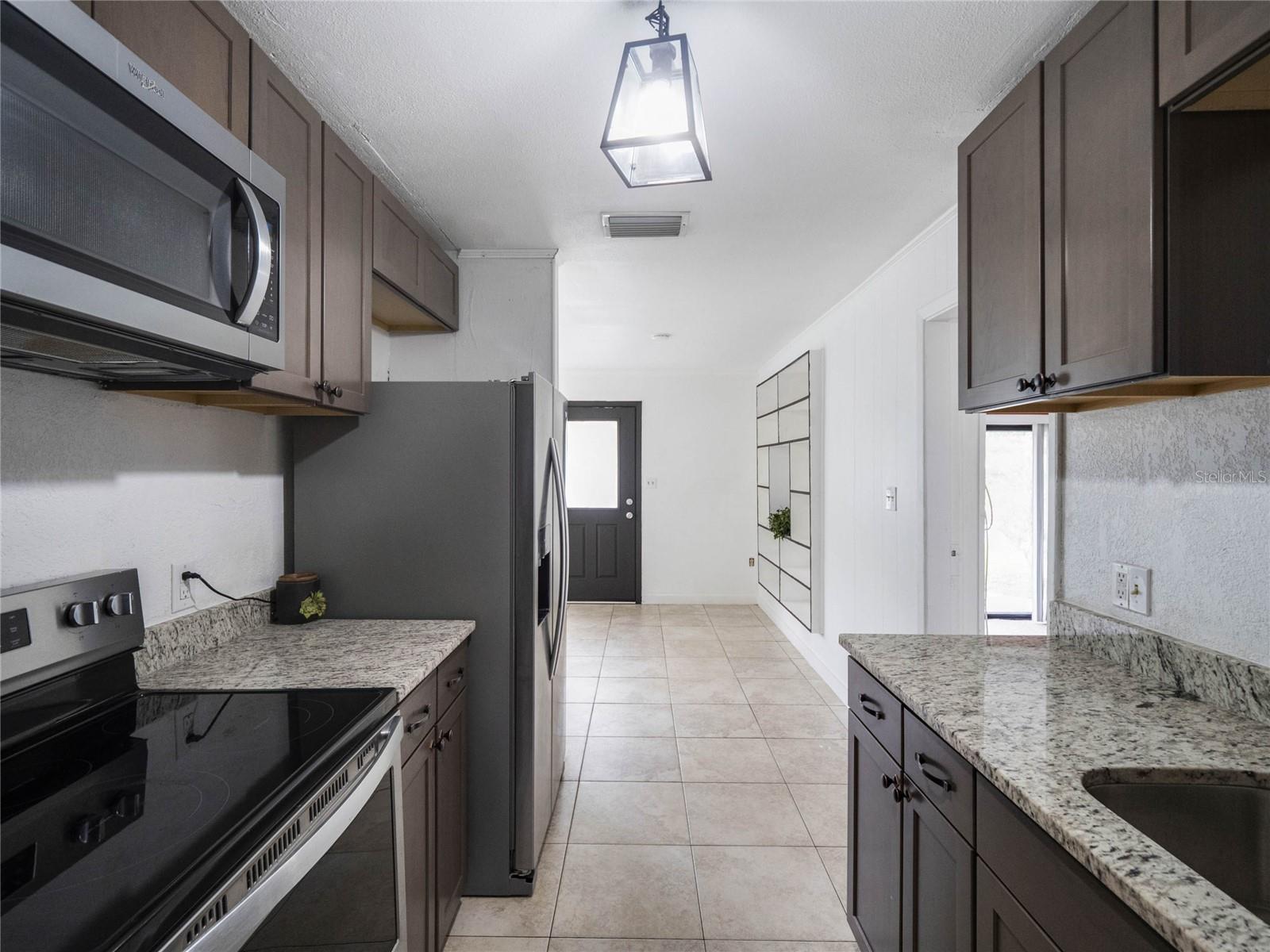 Welcome Home! This charming 3-bedroom, 1-bath residence in Leesburg is a must-see! Situated on an oversized, fenced corner lot, this home is move-in ready and perfect for a quick sale. Recently renovated, it boasts a modern kitchen with stunning granite countertops and sleek stainless steel appliances (updated in 2021). The elegant tile floors, also installed in 2021, seamlessly flow through the home, and a brand-new roof was added in 2020 for added peace of mind. The layout is thoughtfully designed with a galley kitchen leading to a covered, screened lanai—perfect for enjoying the Florida weather. The spacious backyard is complete with a wood fence and a convenient shed for all your storage needs. The oversized living room, adjacent to the kitchen, offers a comfortable space to relax or entertain, while the large laundry room provides additional storage. The dining room, located at the front of the home, features beautiful tile flooring and a stylish, modern light fixture. With easy access to The Florida Turnpike and major highways 44, 441, and 27, and surrounded by scenic lakes with public access, you’ll enjoy the best of Florida living. Don’t miss this opportunity—schedule your private showing today!