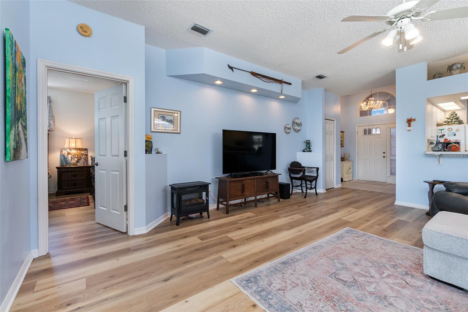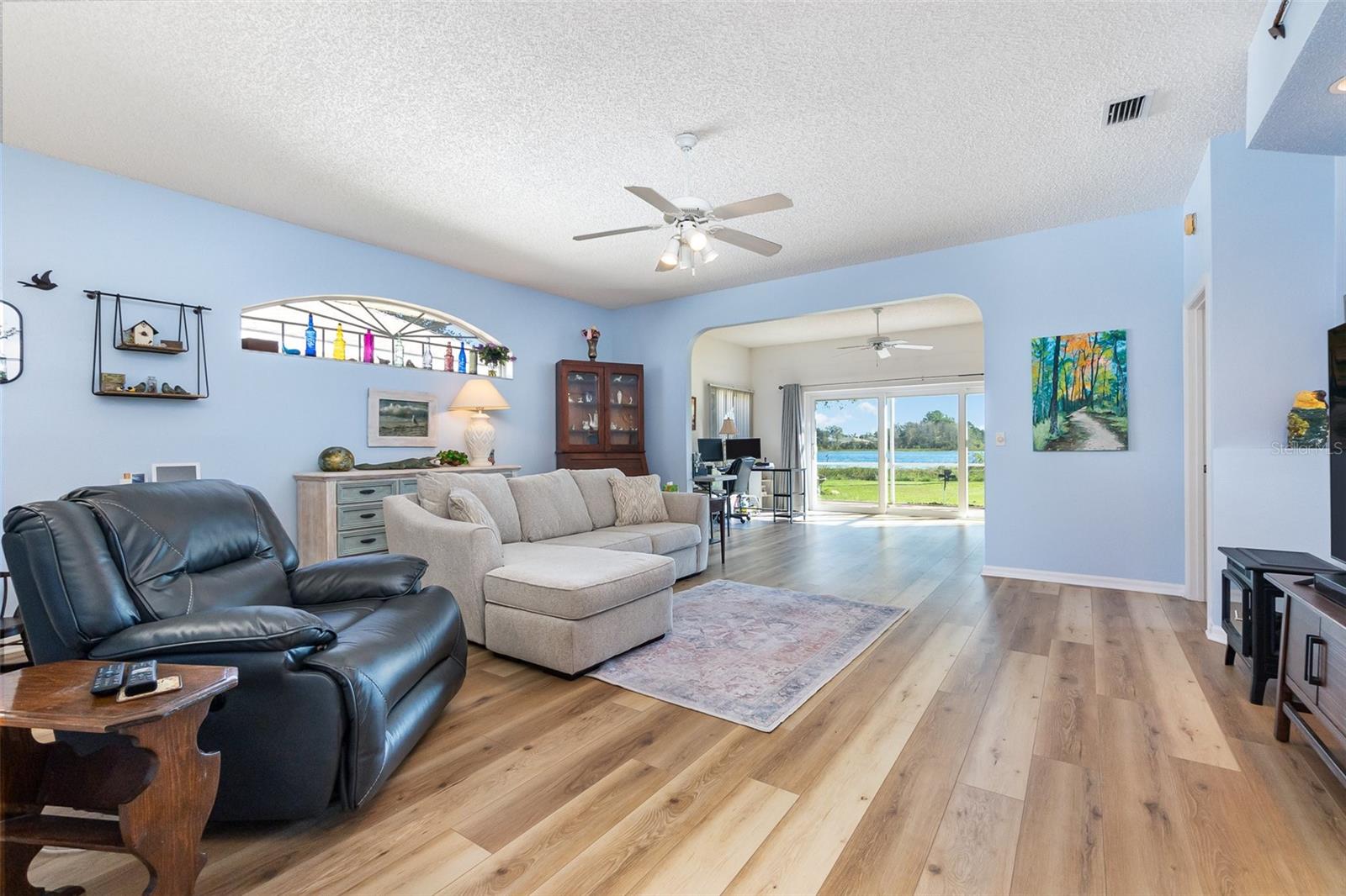 Welcome to your dream home in a serene 55+ community! This spacious 2-bedroom, 2-bathroom residence offers 1,714 sqft of comfortable living space, perfectly situated on a large lot with stunning views of the tranquil lake. Step inside to discover beautiful new flooring that flows seamlessly throughout the home, creating an inviting atmosphere. The open layout is ideal for entertaining, while the well-appointed kitchen features modern amenities for all your culinary adventures. Enjoy the convenience of a newly installed water filtration and softener system, ensuring that you have access to clean, refreshing water year-round. The generous bedrooms provide ample space for relaxation, and the bathrooms are designed for comfort and convenience. Outside, the large lot offers plenty of room for gardening or outdoor activities, all while you soak in the breathtaking lake views. This home combines peaceful living with a vibrant community atmosphere, making it the perfect place!! Offering the option of partially furnished if buyer would like. Located in the highly sought after Royal Highlands resident owned community. With amenities such as two pools. One indoor and one outdoor. Tennis courts, golf courses, restaurants, and so much more. The HOA covers Xfinity cable and internet. Storage for RV and/or boats. And very close to the turnpike, airport and all the Orlando theme park attractions.