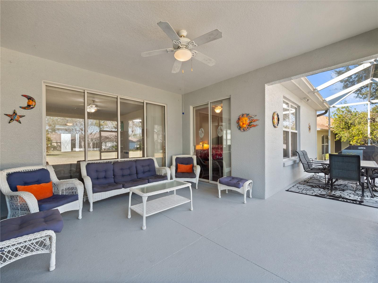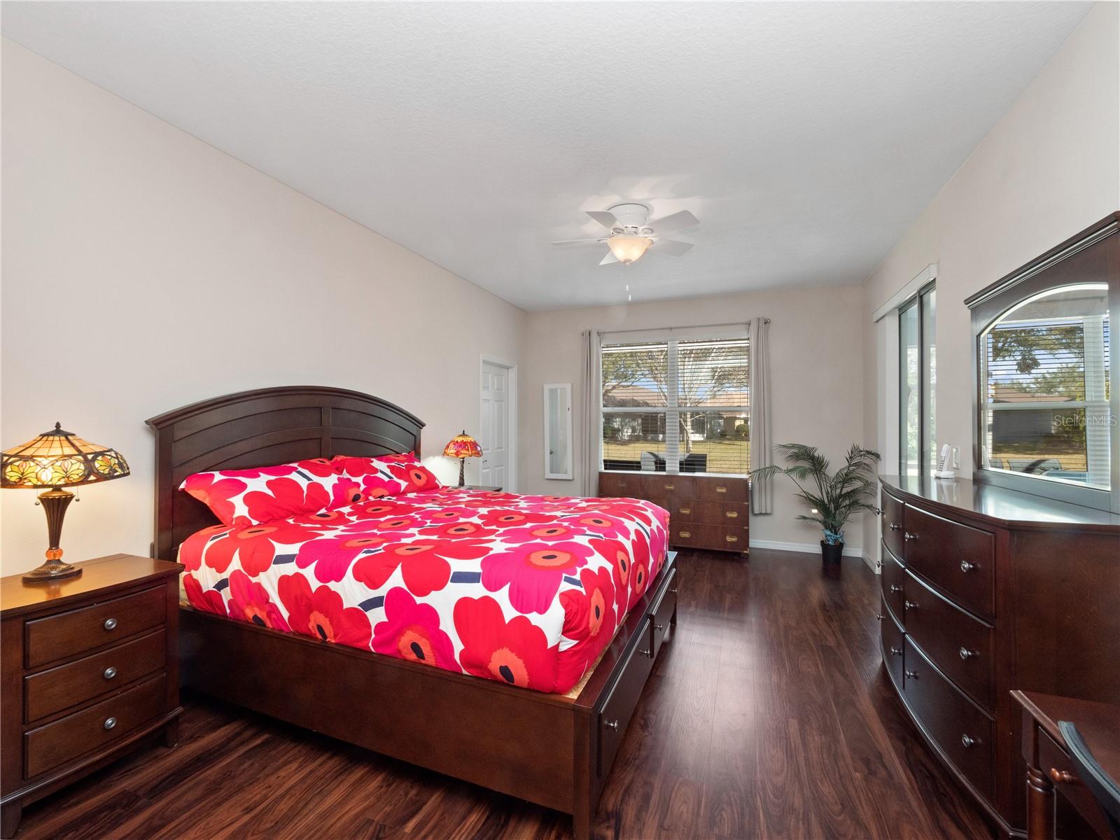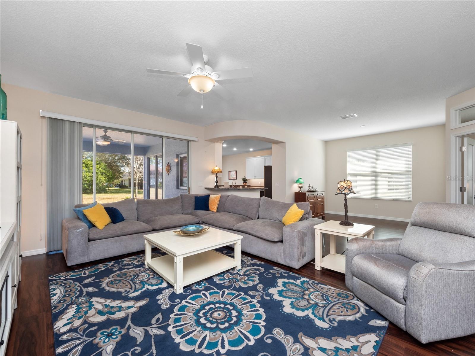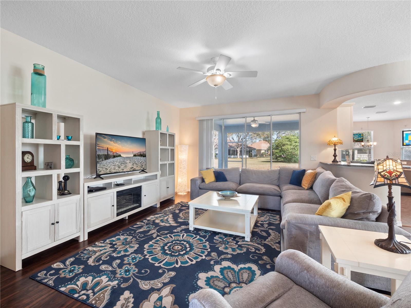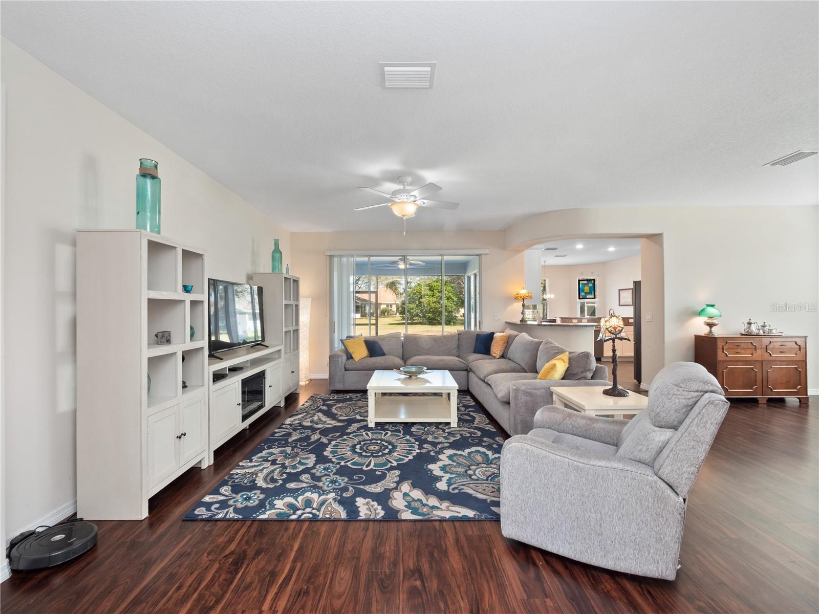 This gorgeous 3-bedroom home with a Den/Office sits on a large 9,426 Sq Ft lot and includes many upgrades including: Whole house axillary Generac generator, Kitchen has Granite Countertops, Tall Cabinets, Bay Window and a Workspace. All Appliances are included, Newer Cook Top, Refrigerator, Dishwasher, Washer and Dryer. Enjoy your morning coffee in the Large Screened and Covered Lanai Space overlooking the beautiful large backyard. This house features a combination of tastefully installed Ceramic Tile & Laminate Flooring for Easy Maintenance. Two Car Garage with a separate Golf Cart door and space. Meticulously and Beautifully Landscaped. This home is **MOVE IN READY** and waiting for a New caring Owner! Are You Ready for A Great Social Life? Located on a quiet Circle in the Premier 55+ MASTER PLANNED Resident Owned Golf Community of Arlington Ridge that features an 18-Hole Championship Course, Restaurant, Pub, Movie Theater, Two Swimming Pools & Hot Tub, Sauna's and MUCH MORE!!! SCHEDULE YOUR PRIVATE TOUR TODAY! https://youtu.be/TAUAEQ2nK7A