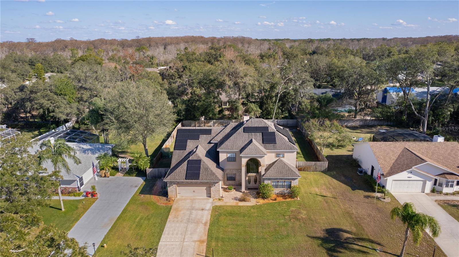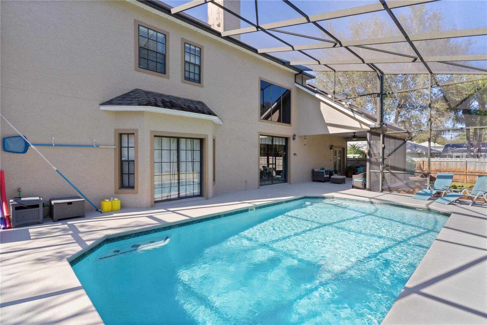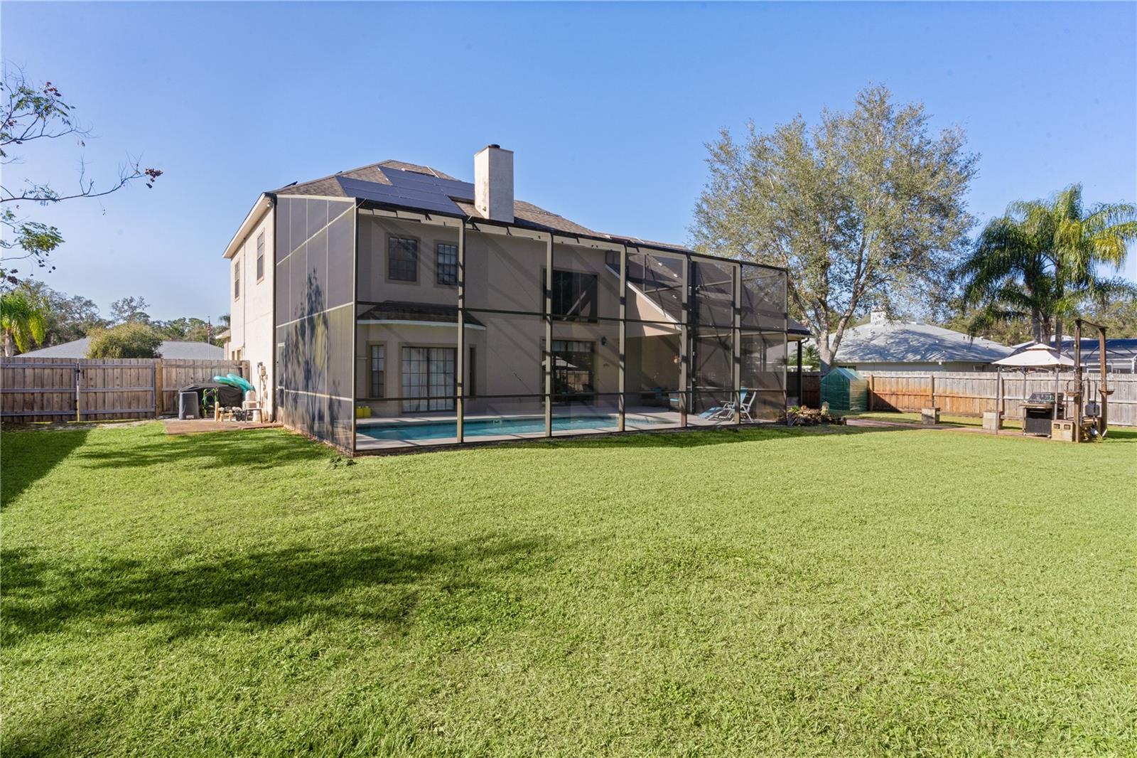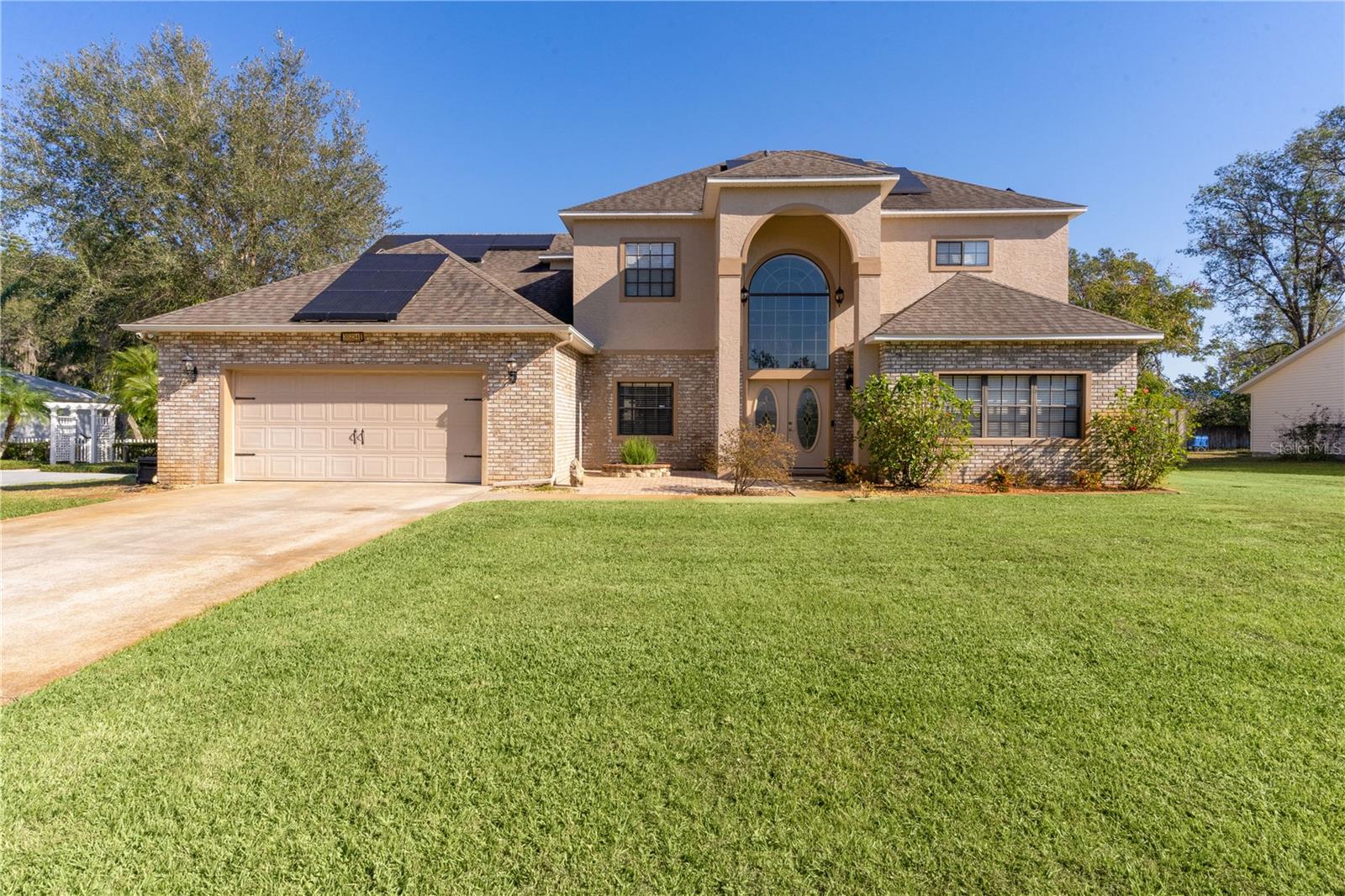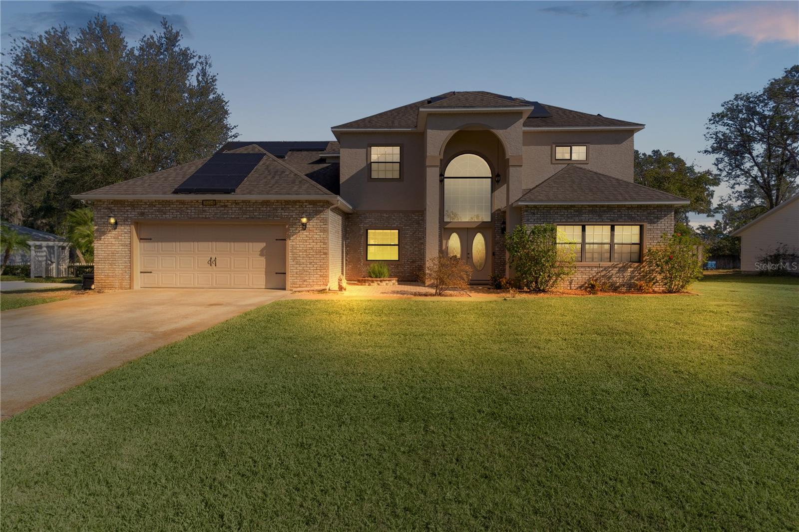 Your Dream Home Awaits! A captivating treasure located in Leesburg Florida, this stunning, fully remodeled 4-bedroom, 3-bathroom oasis offers Chain of Lakes access, a boat slip and recreational storage options. Surrounded by a lush landscape complete with full irrigation, privacy-fenced backyard and energy efficient Solar panels, this meticulously maintained two-story residence offers impeccable curb appeal and strikes a perfect balance that compliments the quaintness of the neighborhood while also providing modern luxury. Step through elegant stained glass double doors into a spacious foyer adorned with a new wrought iron baluster and a dazzling chandelier. The interior further unveils an open floor plan that invites you into a fabulous kitchen that offers the increased functionality of a convenient center island, a versatile convection oven and stainless steel appliances, including a state-of-the-art smart refrigerator. The kitchen is enhanced by a walk-in pantry, ample cabinetry, and generous countertop space with Corian countertops and updated glass backsplash. A sizable bar overlooking a cozy family room with cathedral ceilings and a charming wood-burning fireplace, further elevates the space, adding to the home’s mix of style, comfort and functionality. The primary bedroom, located on the first level, offers serene views of the pool that transform the master bathroom into a private oasis complete with a fully updated smart jetted tub, glass-enclosed, granite-surrounded shower, marble flooring, and a spacious walk-in closet. In addition, the first level provides an additional room that can be used as an office, study or 5th bedroom. Three more generously sized bedrooms are located on the second level along with a newly remodeled bathroom. Also featured upstairs is a chic loft that provides additional living space and looks out over the picture-perfect living room and outside to the pool below. Classic French doors open onto an expansive lanai and screened-in pool area. This attractive space features a saltwater pool equipped with a variable speed smart pump and is perfect for entertaining or simply enjoying leisurely afternoons. Conveniently located near prime shopping, parks, recreation, Leesburg's Lake Square Mall and historic downtown Mt. Dora, this custom luxury home offers unparalleled comfort, sophistication, and convenience. Located about an hour to Orlando for Disney World, Seaworld, Universal and the parks, an hour from Ocala for World Equestrian, the Villages are a 30 min drive and the Beaches are about 1 hour and 30 minutes. This exceptional property is sure to impress and won’t last long. Schedule your appointment today for the opportunity to step over the threshold of your Dream home! Whole-house Remodel(2020) that includes: Energy- efficient solar panels, State of the art smart refrigerator, Complete updated flooring with extra noise minimizing padding upstairs, Full master bath, Renovated downstairs bath, Renovated kitchen, Rebuilt widened stairs, Complete interior paint refresh, including modernized trim, crown moldings and doors, Roof(2016) Resurfaced, tiled pool, replaced pool pump, Rescreened pool and patio (2022), and Installed double gate for backyard access. Home Warranty on All appliances including HVAC included.